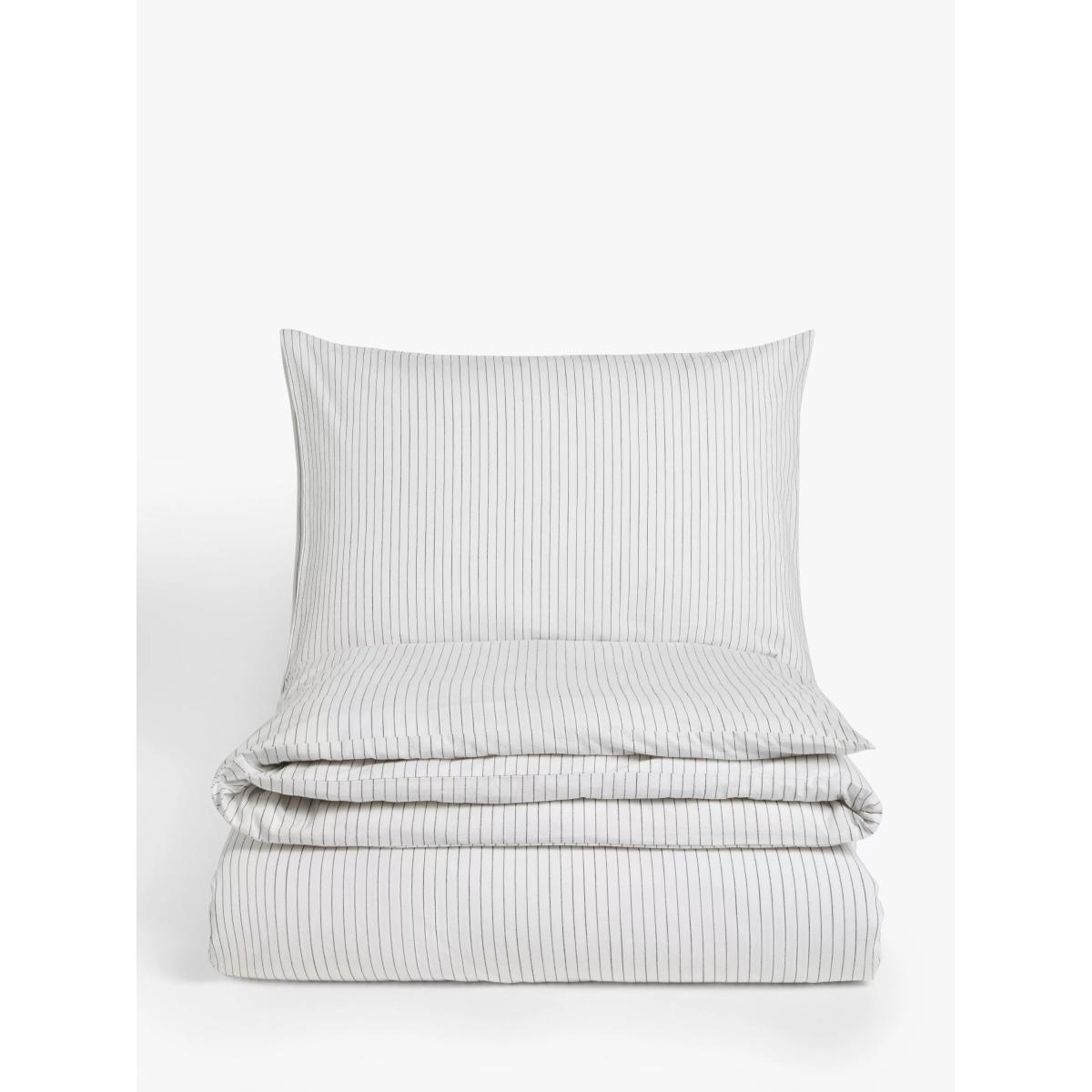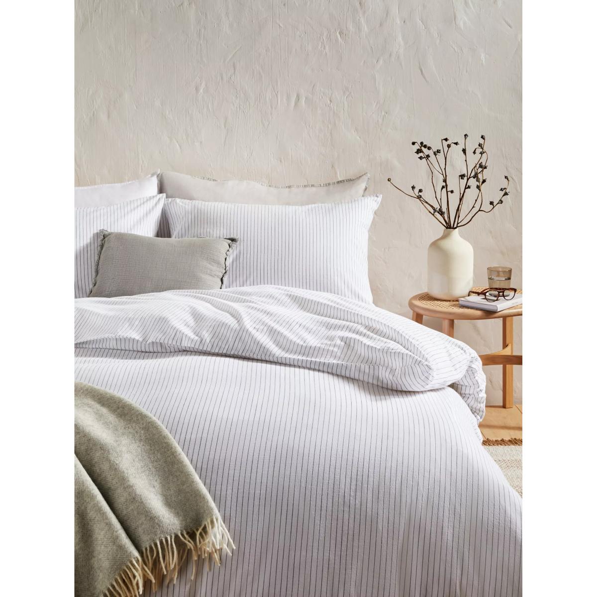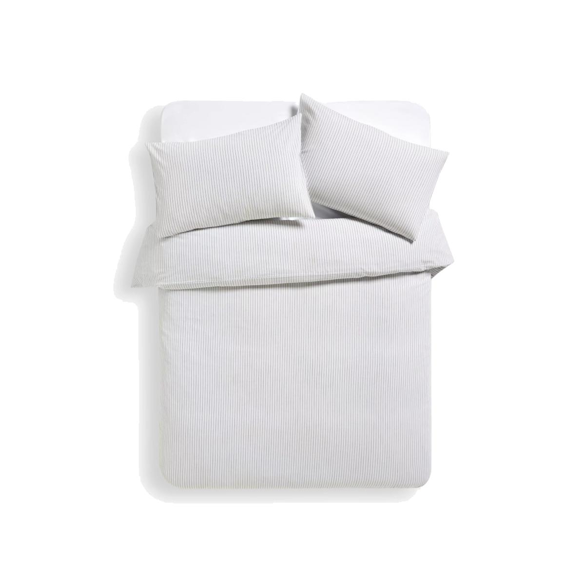 Woven, striped slubby bedding made from cooling cotton for a comfortable night's sleep. The single set comes with one standard pillowcase, all other sizes come with two standard pillowcases. Bedding sizes To fit duvet/pillow size (cm) Standard pillowcase, L75 x W50cm Single duvet cover, L200 x W135cm Double duvet cover, L200 x W200cm King duvet cover, L220 x W225cm Super king duvet cover, L220 x W260cm Better Cotton By choosing our cotton products, you’re supporting our investment in Better Cotton’s mission to help cotton communities survive and thrive while protecting and restoring the environment. Better Cotton Farmers are farmers who care for the environment and respect workers’ rights and wellbeing. This product is sourced via a system of mass balance and therefore may not contain Better Cotton. bettercotton.org/massbalance