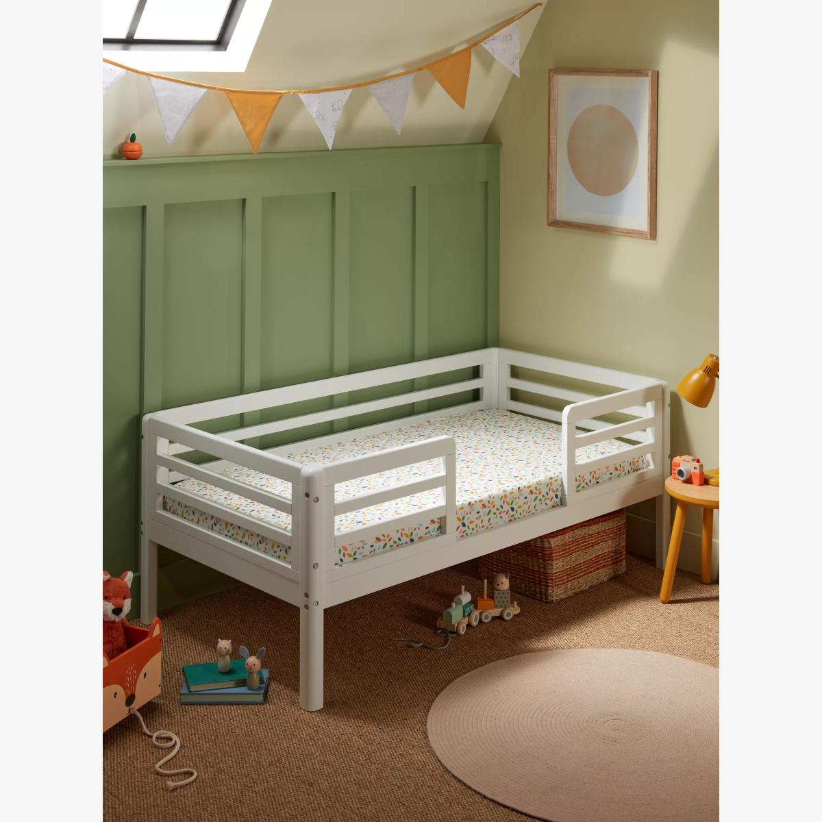Made with traditional slats, this toddler bed makes a great addition to any bedroom. Thoughtfully designed with little rollers in mind, the bed has elevated sides to ensure there are no accidental falls out of bed. With a neutral-painted finish, it will make a great addition to any room decor. Suitable from 18 months, this toddler bed requires a standard 140 x 70cm mattress (sold separately). The bed complies with safety standards EN 8509:2008+A1:2011.