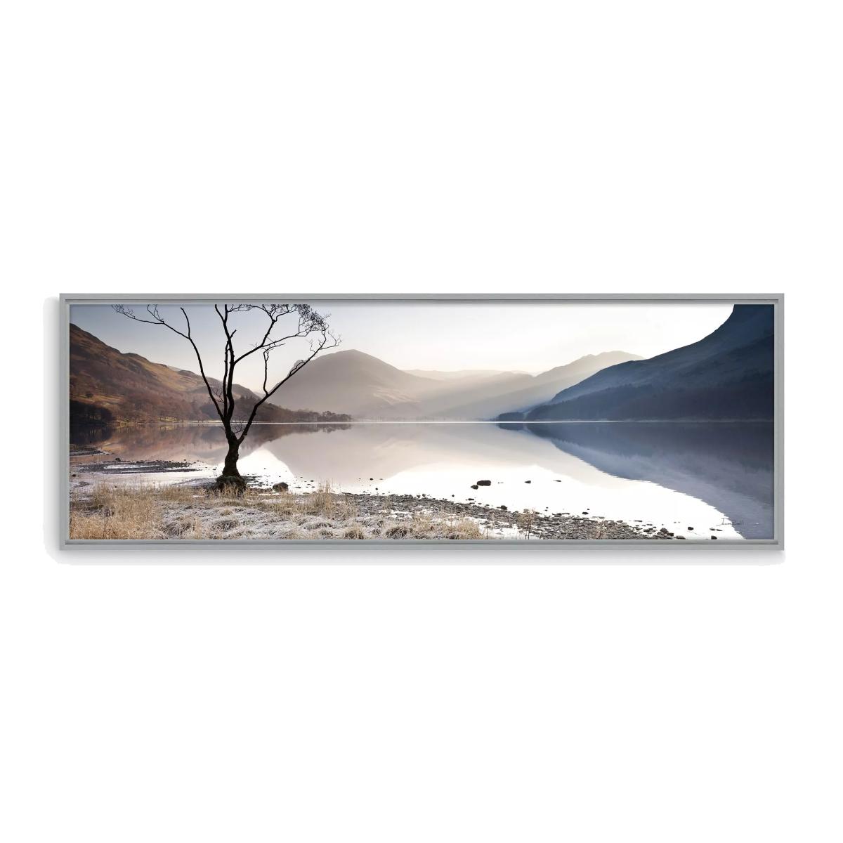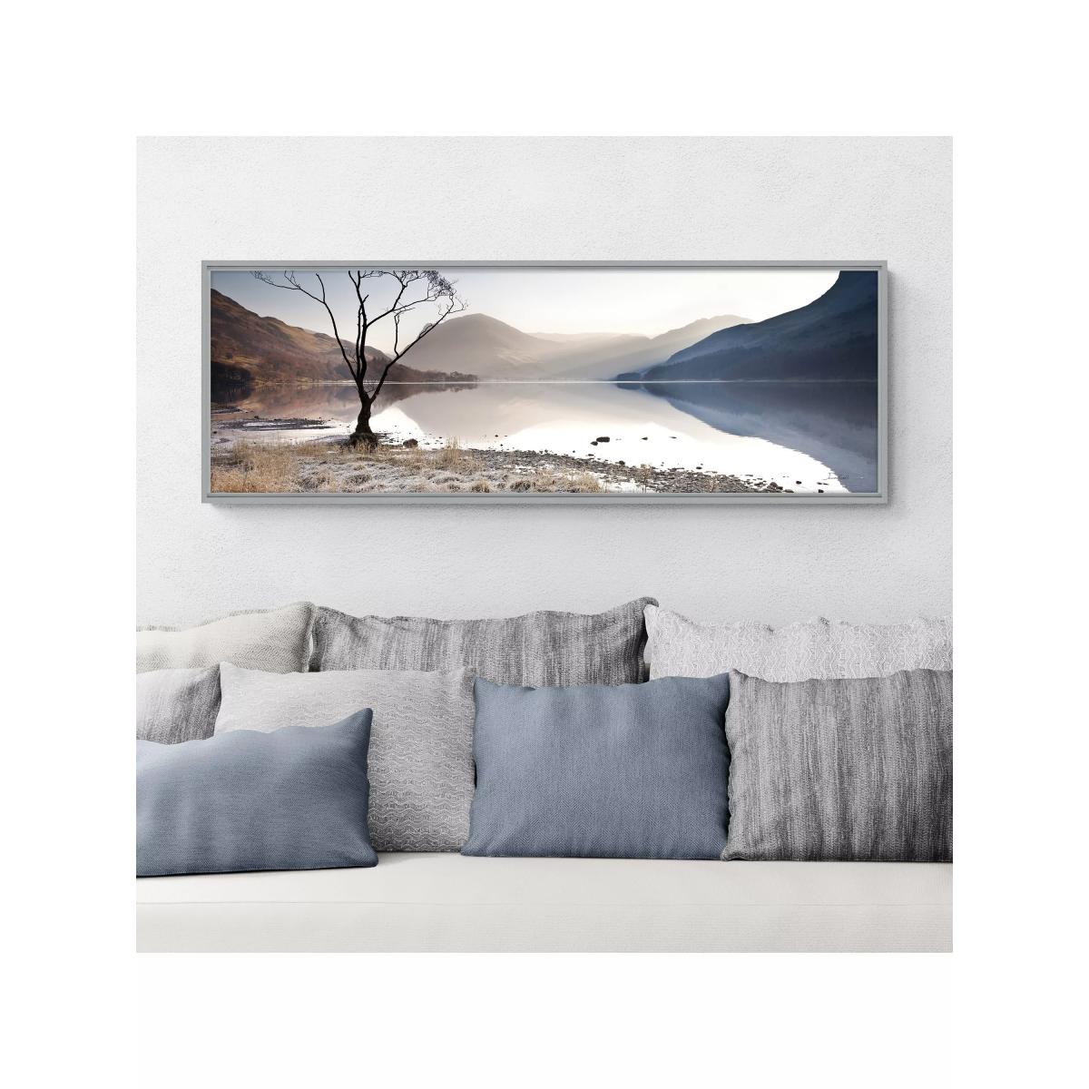 A solo tree in silhouette lends perspective to the reflected scenery of England's Lake Buttermere in this work by photographer James Bell. Made in the UK, this canvas wrap print is mounted in a black frame, a deep frame that creates an elegant shadow gap around the picture. Arrives ready to hang on your wall. James Bell has lived in the UK's Lake District since the age of 3. His fascination for the outdoors and photography began at the age of 11. Growing up surrounded by such natural beauty, it was only a matter of time before his two passions came together and his interest in landscape photography was born. Bell has held several solo exhibitions across the Lake District and his love of the region continues to flourish. Have you thought about wall hooks and fittings?