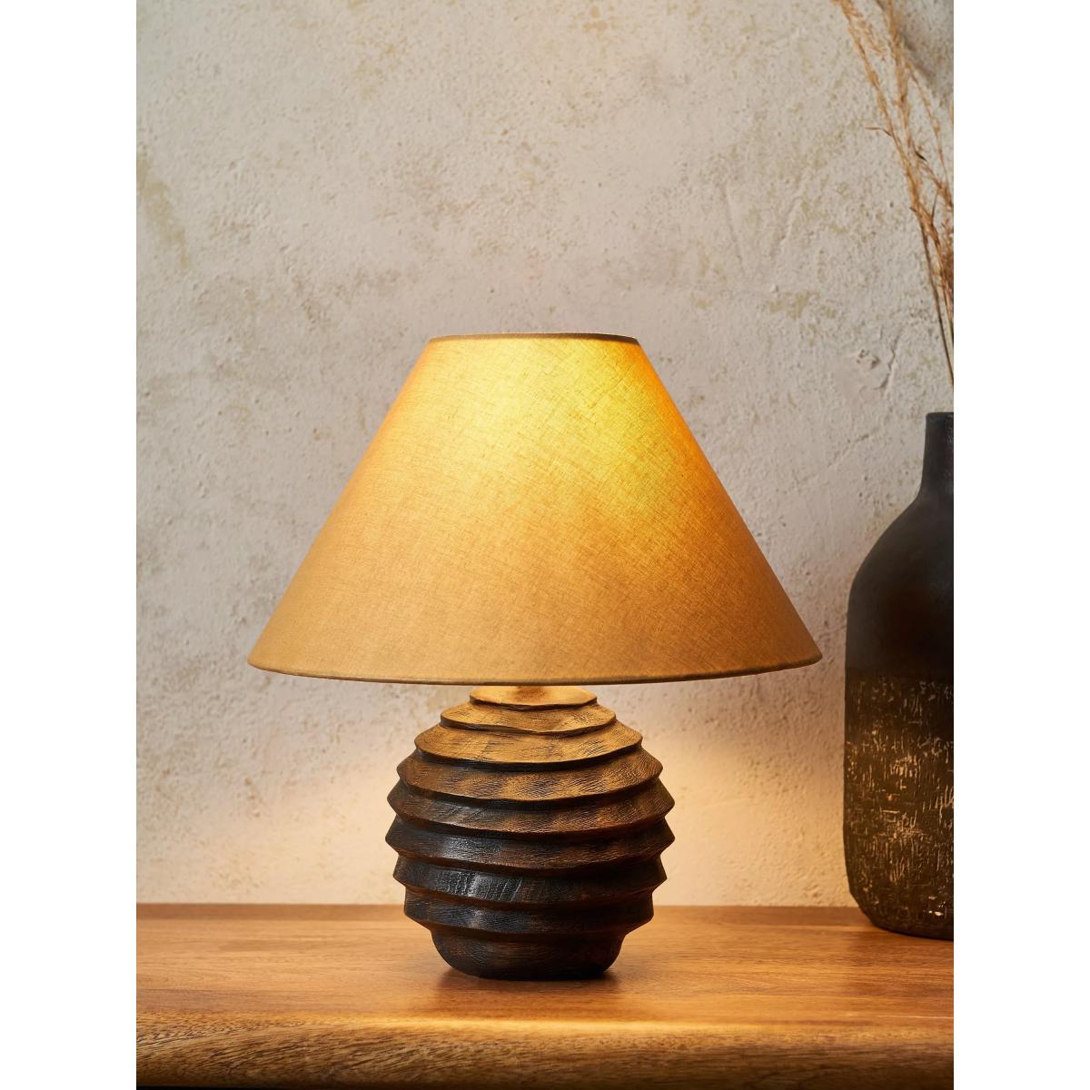 John Lewis Jika Carved Mango Wood Table Lamp, Black