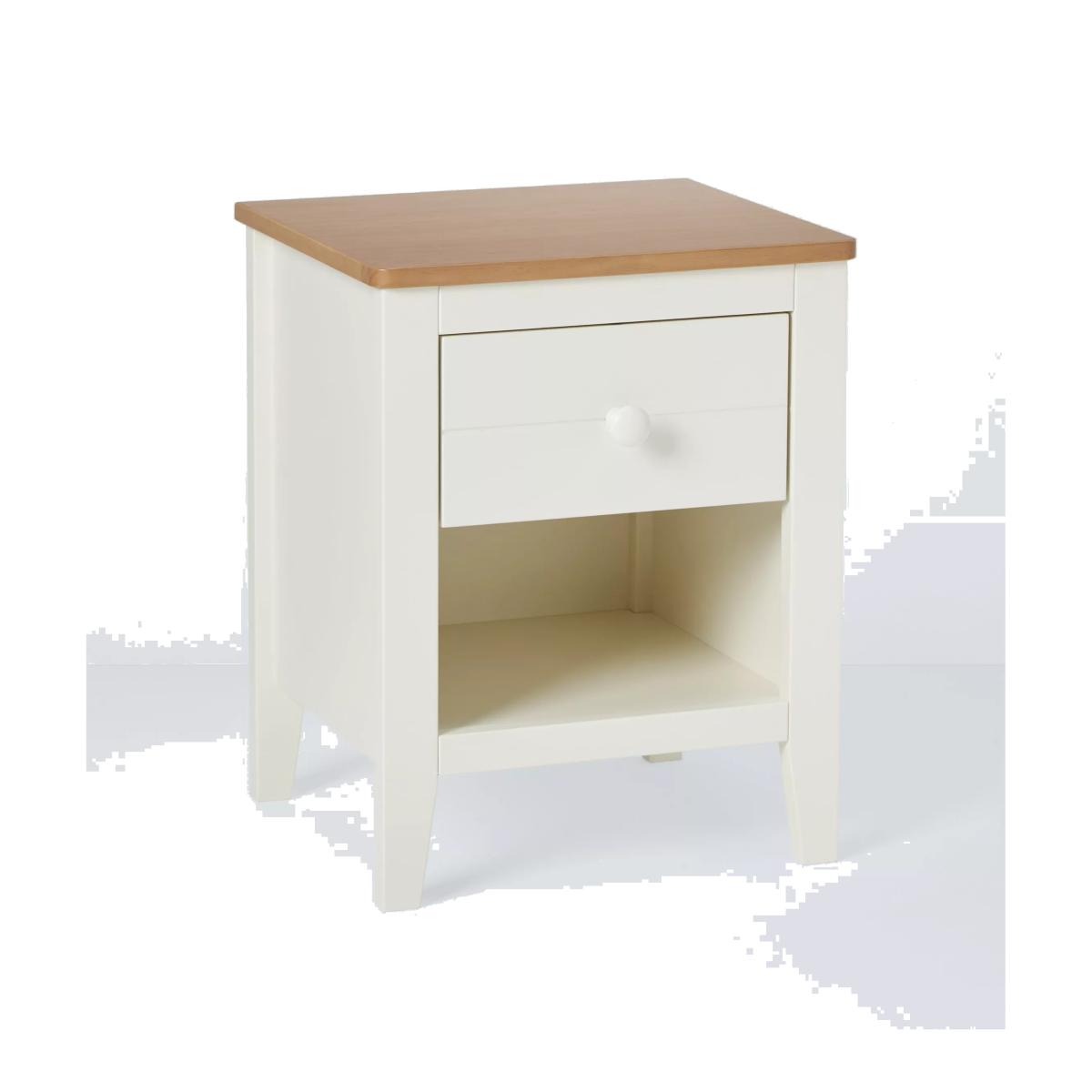 From our Avery range comes this small bedside table made from a combination of a combination of hardwearing timbers and MDF. It comes with a sleek contemporary style that combines painted and natural wood for a look that works with any room decor.