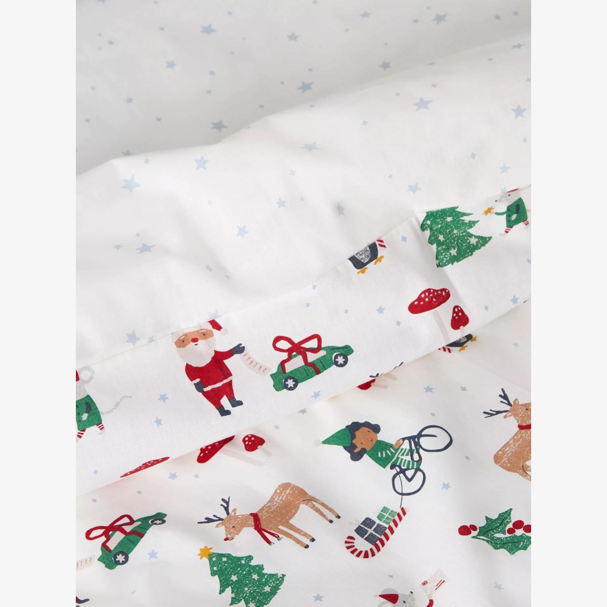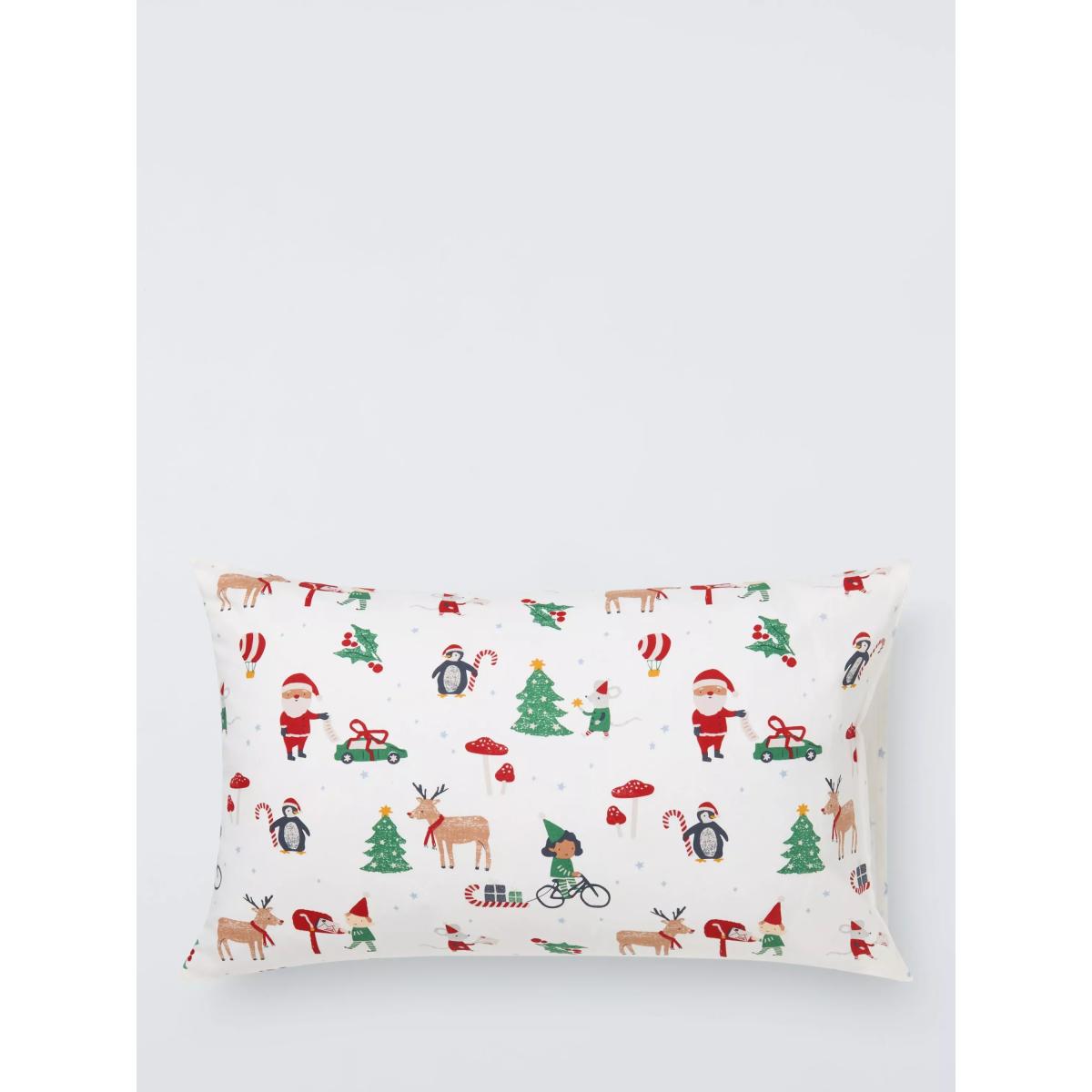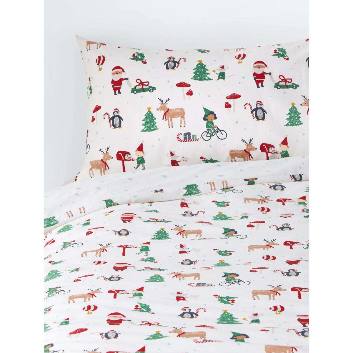 Bring the magic of Christmas to life with this festive Christmas Elf print duvet cover and pillowcase set - featuring everyone from Santa and Rudolph to penguins and Christmas mice. Crafted from soft, 100% cotton for a breathable feel that won't irritate their skin, it has a 144 thread count to ensure the little one stays comfortable at all times. It's part of our coordinated range for your baby's nursery. Good to know: The cot, cotbed and single sets come with one pillowcase and the double set comes with two standard pillowcases. To fit duvet/pillow size (cm) Junior pillowcase L60 x W40cm Standard pillowcase, L75 x W50cm Cot duvet cover, L100 x W120cm Cotbed duvet cover, L140 x W120cm Single duvet cover, L200 x W135cm Double duvet cover, L200 x W200cm Please remember: Quilts, duvets and pillows are not suitable for children under 12 months due to the risk of overheating.