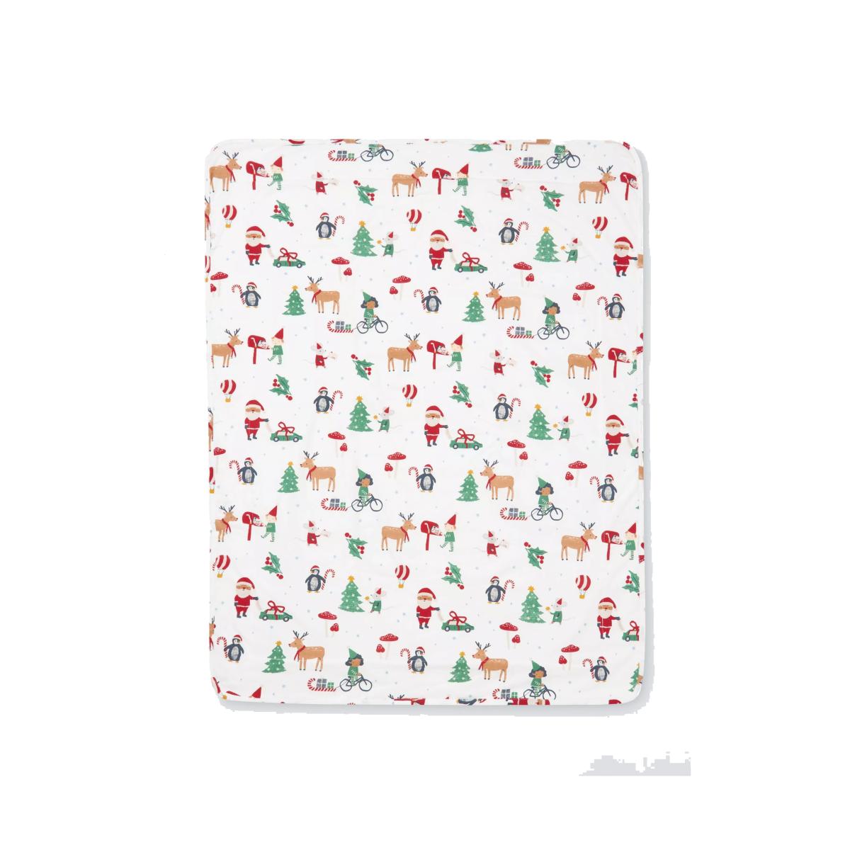 Get cosy with this soft Sherpa fleece-lined blanket - featuring a festive Christmas print with everyone from Santa and Rudolph to penguins and Christmas mice.