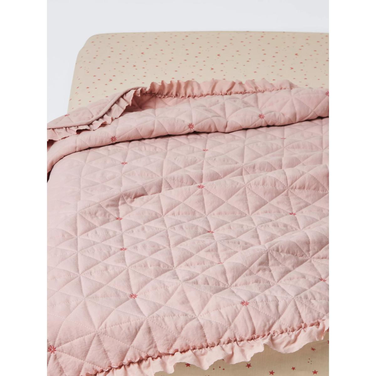 I love the pink floral frill quilt for adding a soft, charming touch to any child's bedroom. Its delicate floral pattern and frilled edges make it perfect for creating a cosy, girly aesthetic, particularly in traditional or shabby chic interiors. It pairs well with pastel colour schemes or white furniture, making the room feel light and inviting. For styling tips, layer it with complementary cushions or a textured throw for added dimension, and keep accessories simple to let the quilt's pretty details stand out. This piece works especially well in a nursery or a little girl's bedroom, where it can bring a comforting and cheerful vibe.