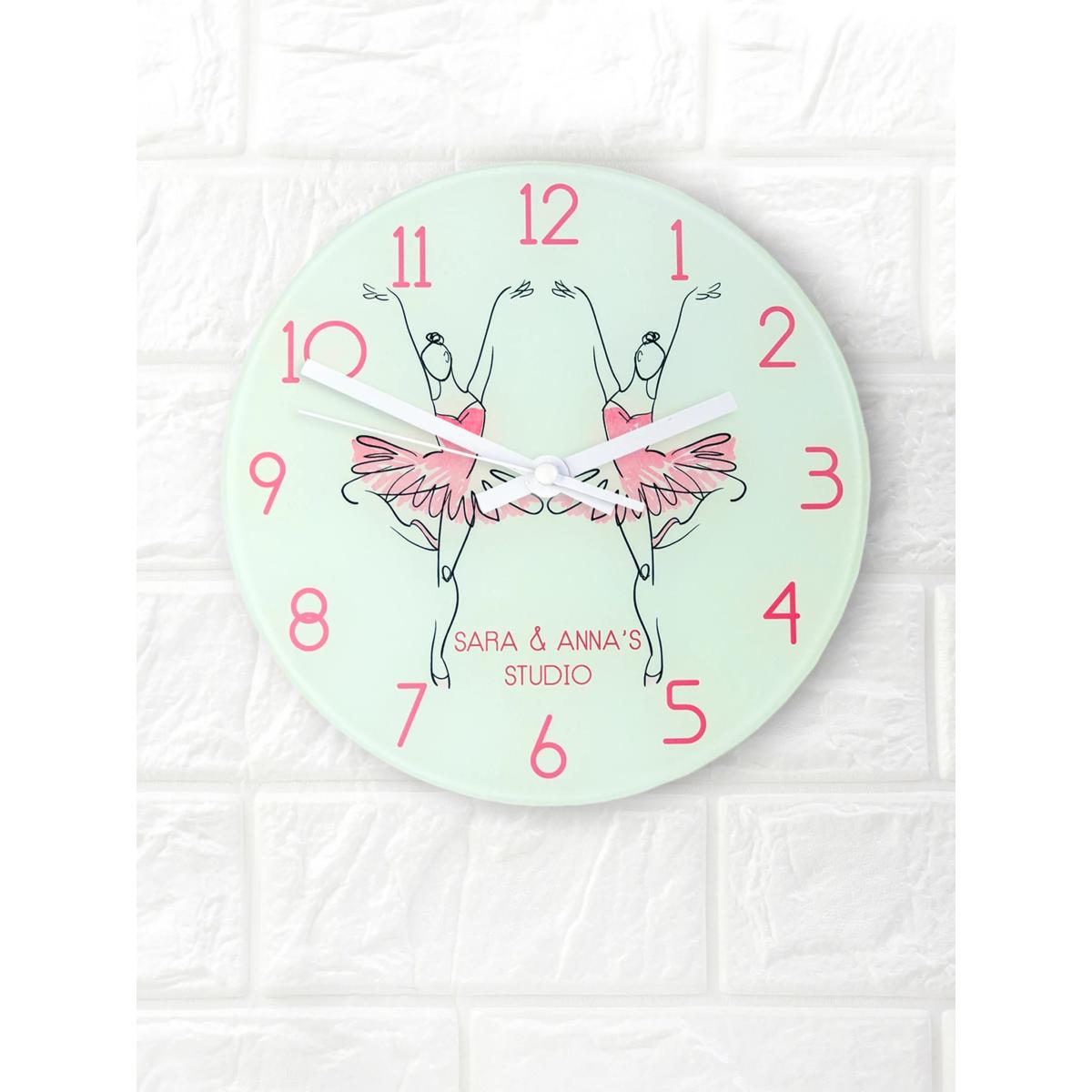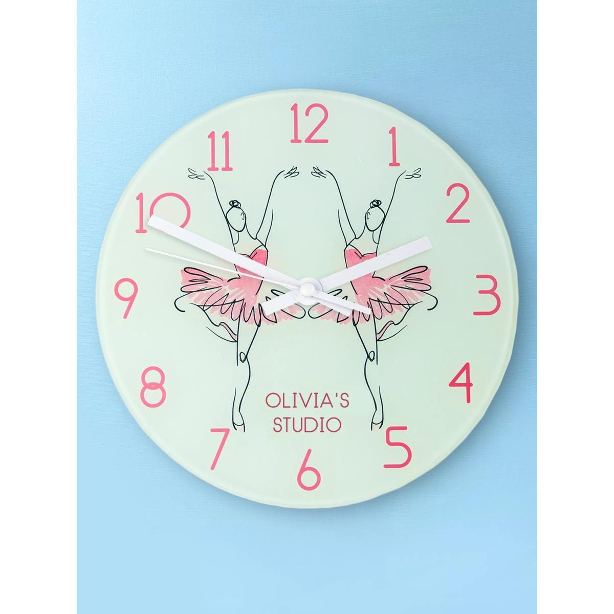 Dreaming of tutus and pirouettes? Help your child learn how to tell the time with this fun Ballet clock, which can be personalised with a child's name or two names on the front. Ideal for hanging on a bedroom wall, this glass wall clock makes a wonderful focal point with its bright and bold colour scheme.