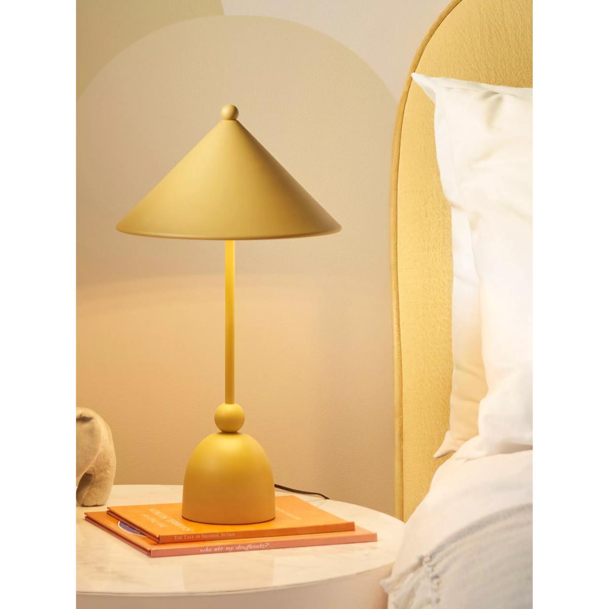 I’m a fan of the Theo lamp for its neat, uncluttered shape and muted mustard tone - it brings a friendly pop of colour without feeling too “loud” for a child’s space. It sits well in Scandi-inspired nurseries, modern teen bedrooms or any neutral scheme that needs a subtle focal point. In terms of styling, I’d perch it on a low shelf or bedside table alongside a small pile of picture books and a couple of soft toys to keep the look balanced. The sturdy base and simple on-off switch make it a practical choice for late-night stories or homework sessions.