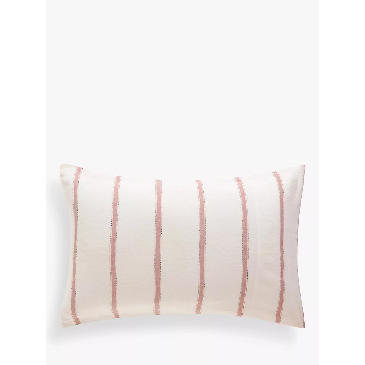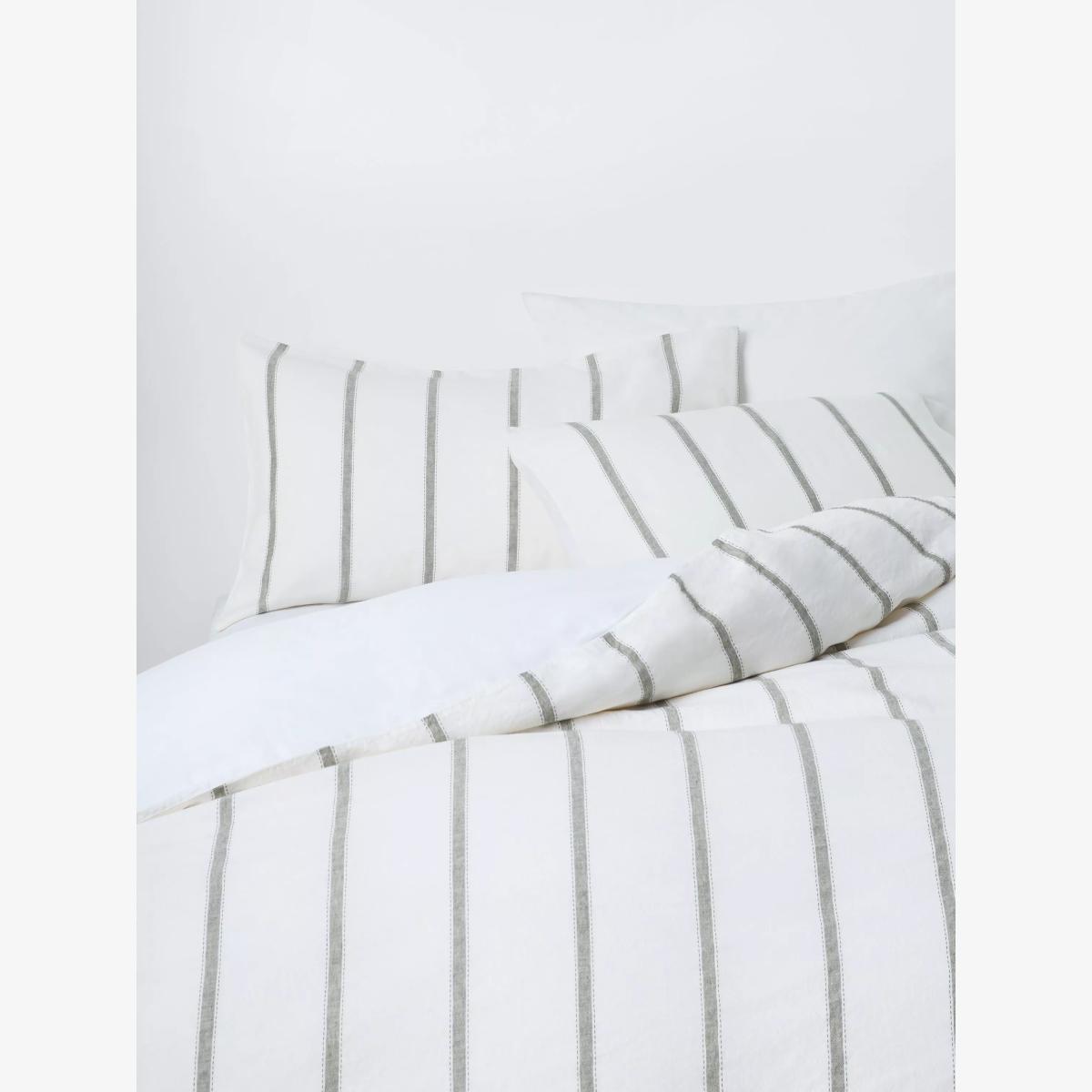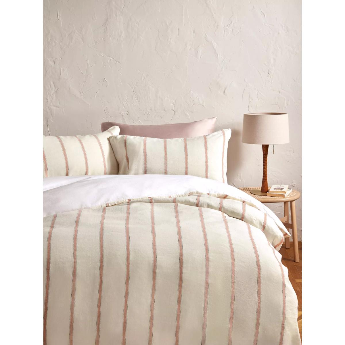 Simple and sophisticated, our Lanark bedding is made from a blend of linen and cotton. Subtle stripes offer a grown-up aesthetic which makes for a versatile base for additional decorative accessories. The reverse is plain. Please note that duvet covers and pillowcases are available to purchase separately and not in sets. Bedding sizes To fit duvet/pillow size (cm) Standard pillowcase, L75 x W50cm Single duvet cover, L200 x W135cm Double duvet cover, L200 x W200cm King duvet cover, L220 x W225cm Super king duvet cover, L220 x W260cm Better Cotton By choosing our cotton products, you’re supporting our investment in Better Cotton’s mission to help cotton communities survive and thrive while protecting and restoring the environment. Better Cotton Farmers are farmers who care for the environment and respect workers’ rights and wellbeing. This product is sourced via a system of mass balance and therefore may not contain Better Cotton. bettercotton.org/massbalance