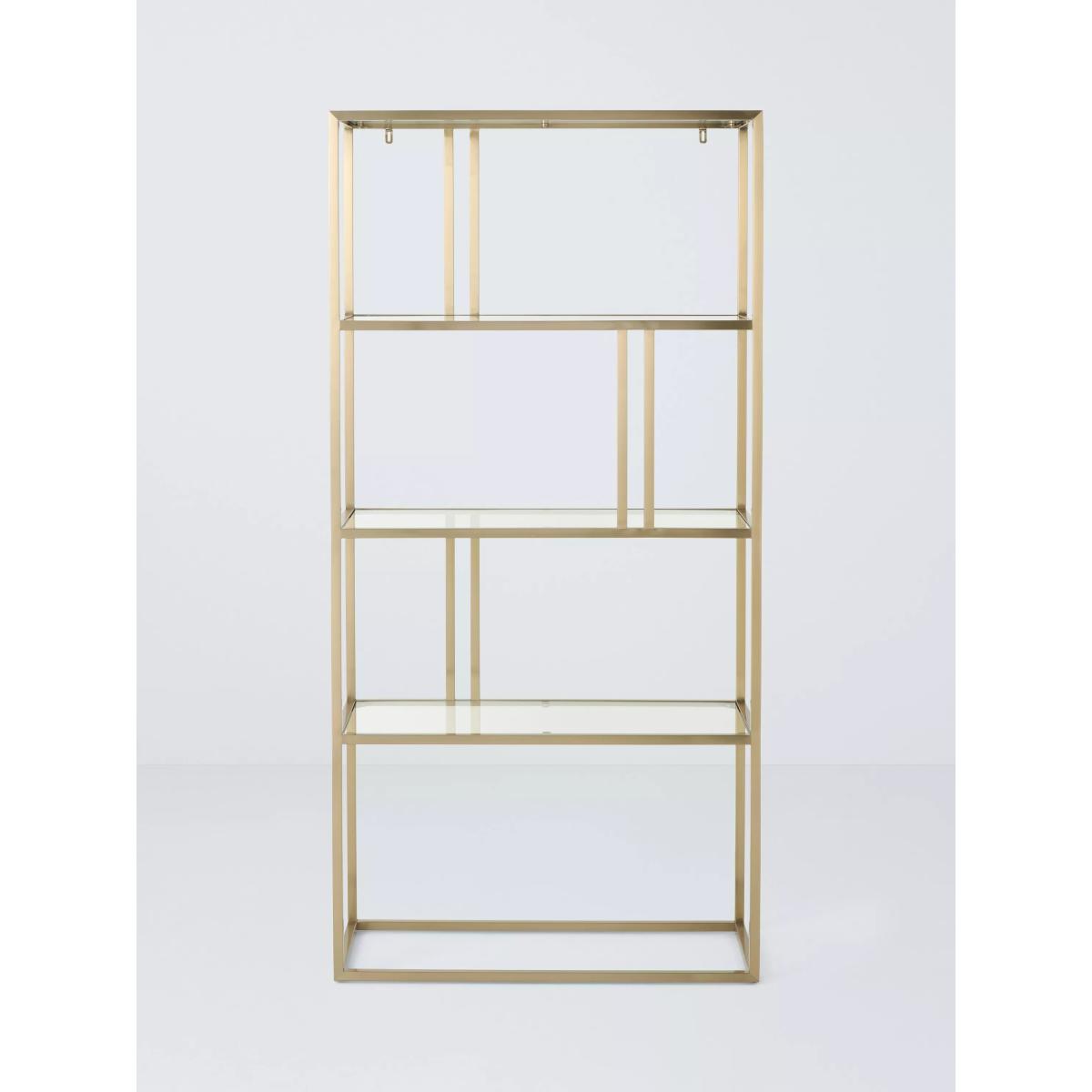 This simple yet sophisticated bookcase, with its glass shelves and brass finish metal frame, will make your space feel lighter and brighter. Want to see it first? You may want to see and get a feel for the furniture in one of our shops before ordering. We'll be able to tell you where the range you'd like to view is on display.