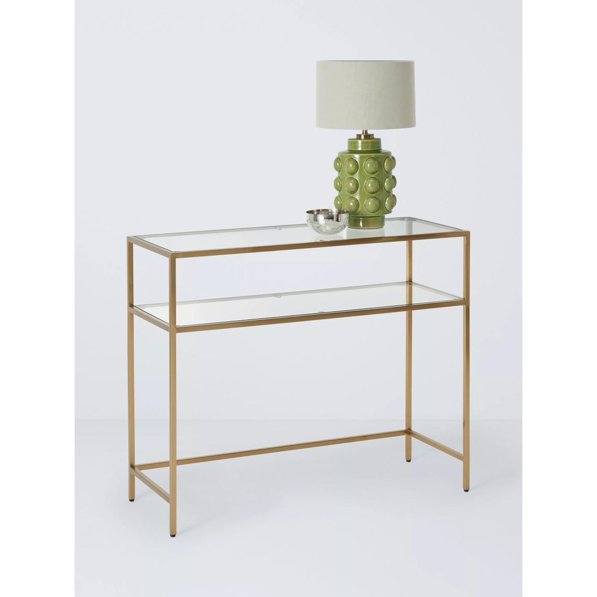 John Lewis Langham Rectangular Glass Console Table, Brass
