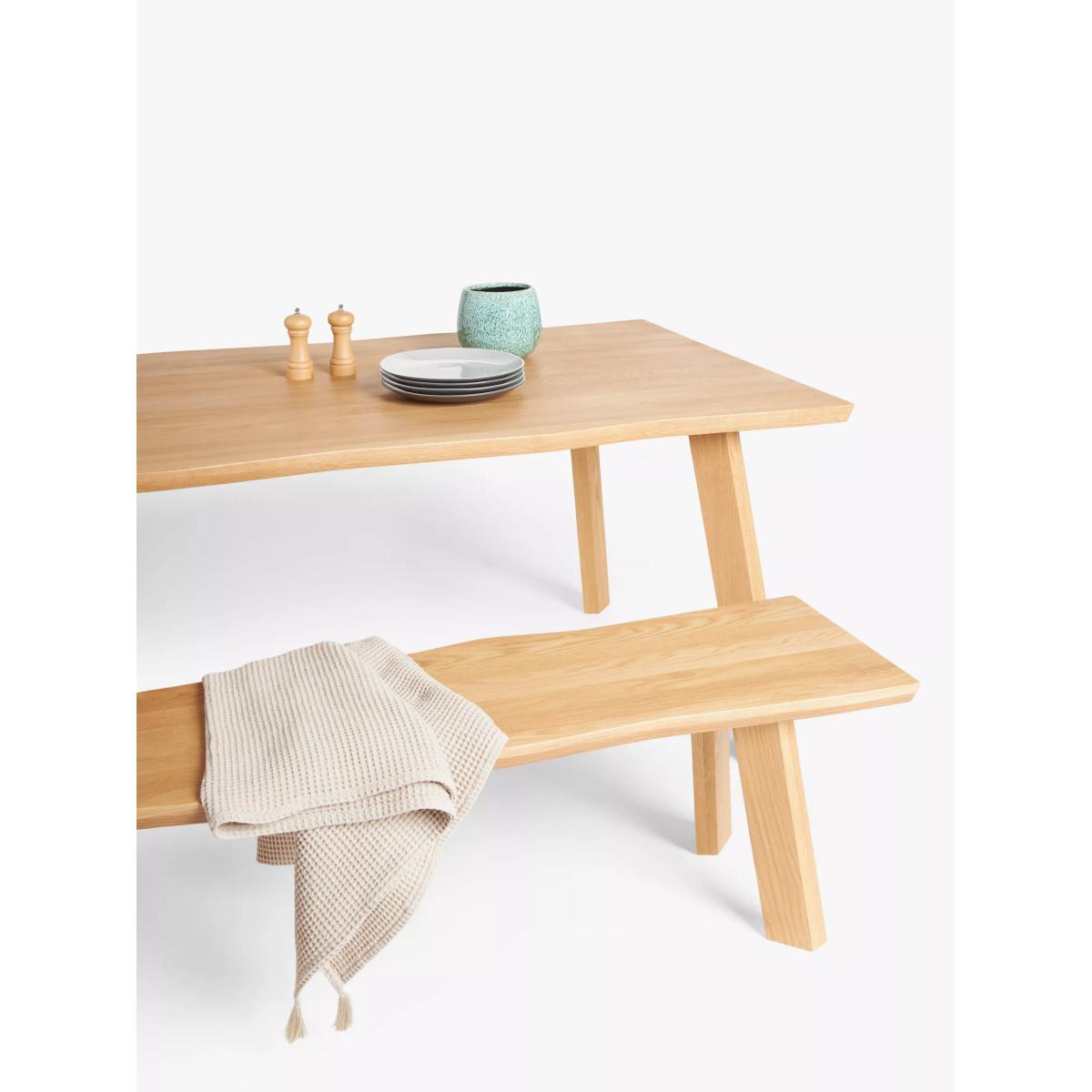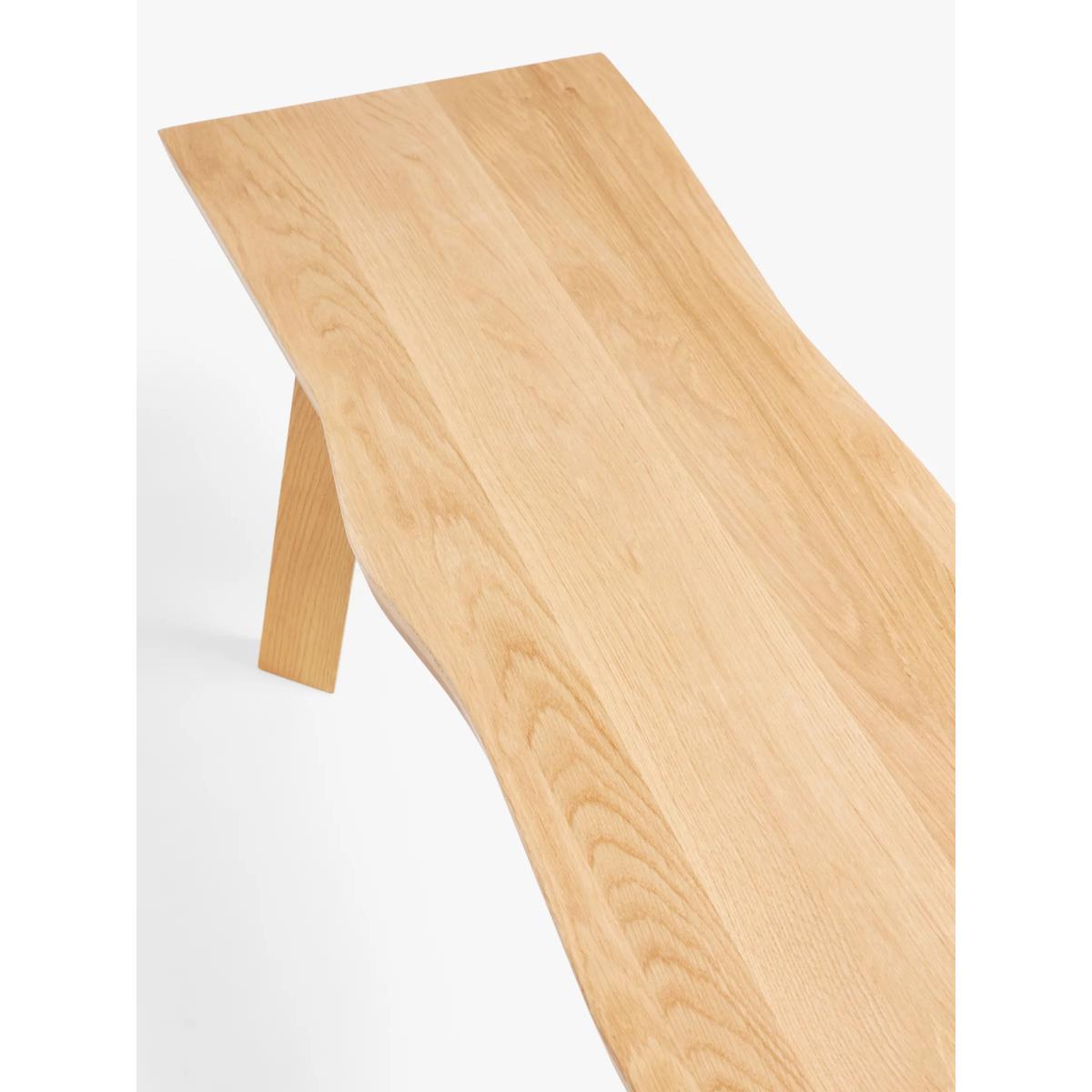 The Larsen range is a convincing combination of noble woodworking and New-Nordic design tradition. The live edges make it at once modern and rustic, versatile enough for both contemporary homes and loft living. This bench is made from solid American oak that highlights all of its distinctive grains and knots. Known as a "live edge" we have incorporated the natural edge of the wood into the design of this bench in order to keep the look organic and reinforce the warm tone of the oak. This oak bench seats up to 3. Want to see it first? You may want to see and get a feel for the furniture in one of our shops before ordering. We'll be able to tell you where the range you'd like to view is on display.