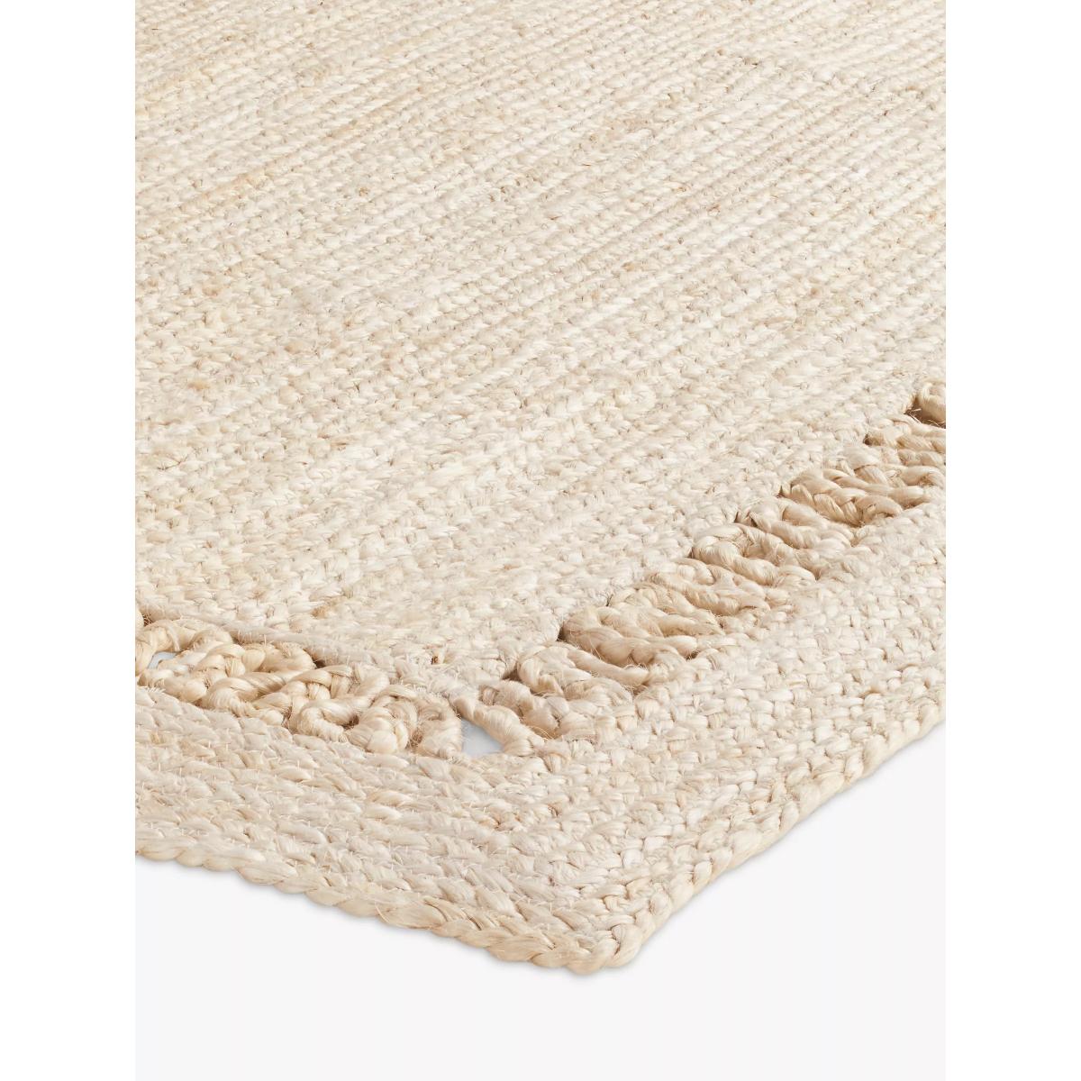 A simple but effect design that's ideal for updating your living space, this rug comes in a strong, jute construction with eye-catching lattice lace border. With a flat finish making this rug ideal for busy, high-traffic rooms, the materials in this rug have been woven together by hand to create a strong construction. About your new rug We recommend John Lewis & Partners Rug Hold Underlay. It prevents your rug from moving underfoot and protects against colour transfer to the floor Natural fibres may shed. This will reduce over time, and shouldn't affect your rug's lifespan or performance When vacuuming your rug, use suction only. Rotating brushes may damage the fibres Blot any spills with a clean, dry cloth. Do not rub or use harsh detergents. Textile backed