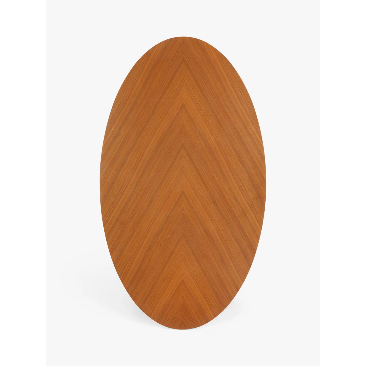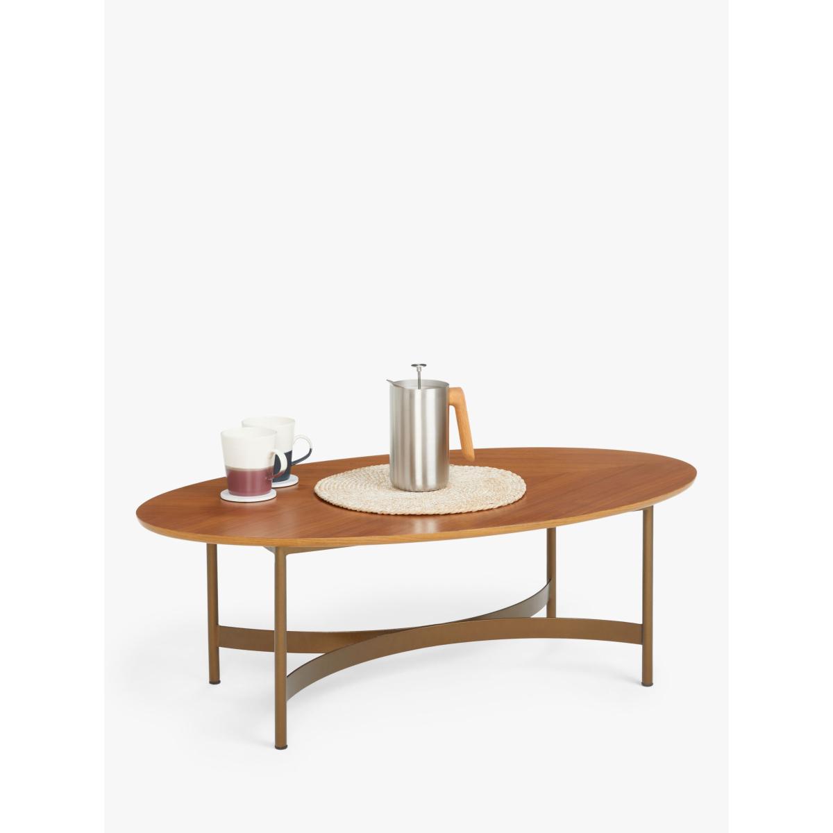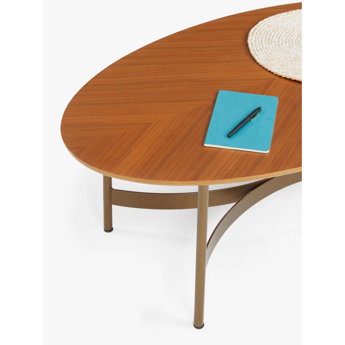 I love this coffee table for its sleek, understated elegance and warm walnut finish, which adds a touch of sophistication to any living space. It's particularly versatile, working well in both contemporary and mid-century inspired interiors, thanks to its minimalist design and organic oval shape. For styling, I recommend pairing it with neutral-toned sofas and textured cushions to highlight the wood's richness. Practical tips include keeping it clutter-free with a few carefully curated accessories, like a stack of books or a small plant, to maintain a balanced, inviting look. Its solid construction makes it durable, while its open design keeps the room feeling spacious and light.