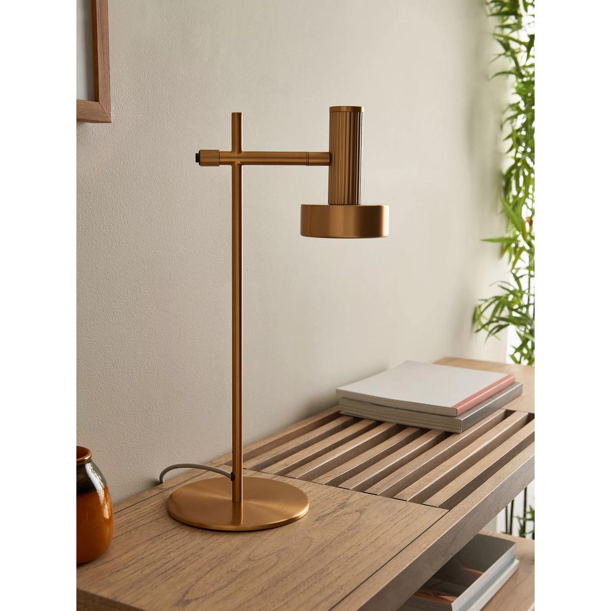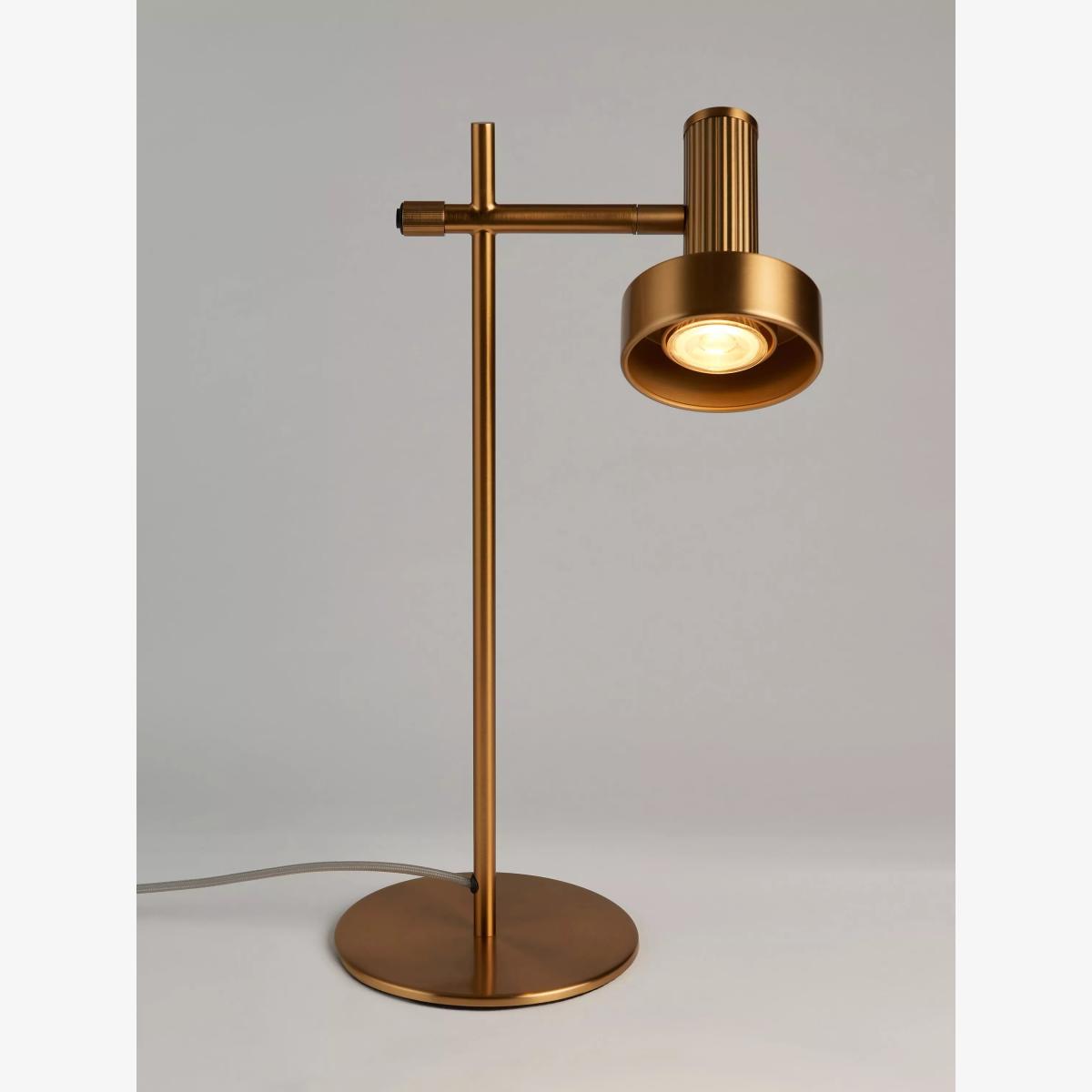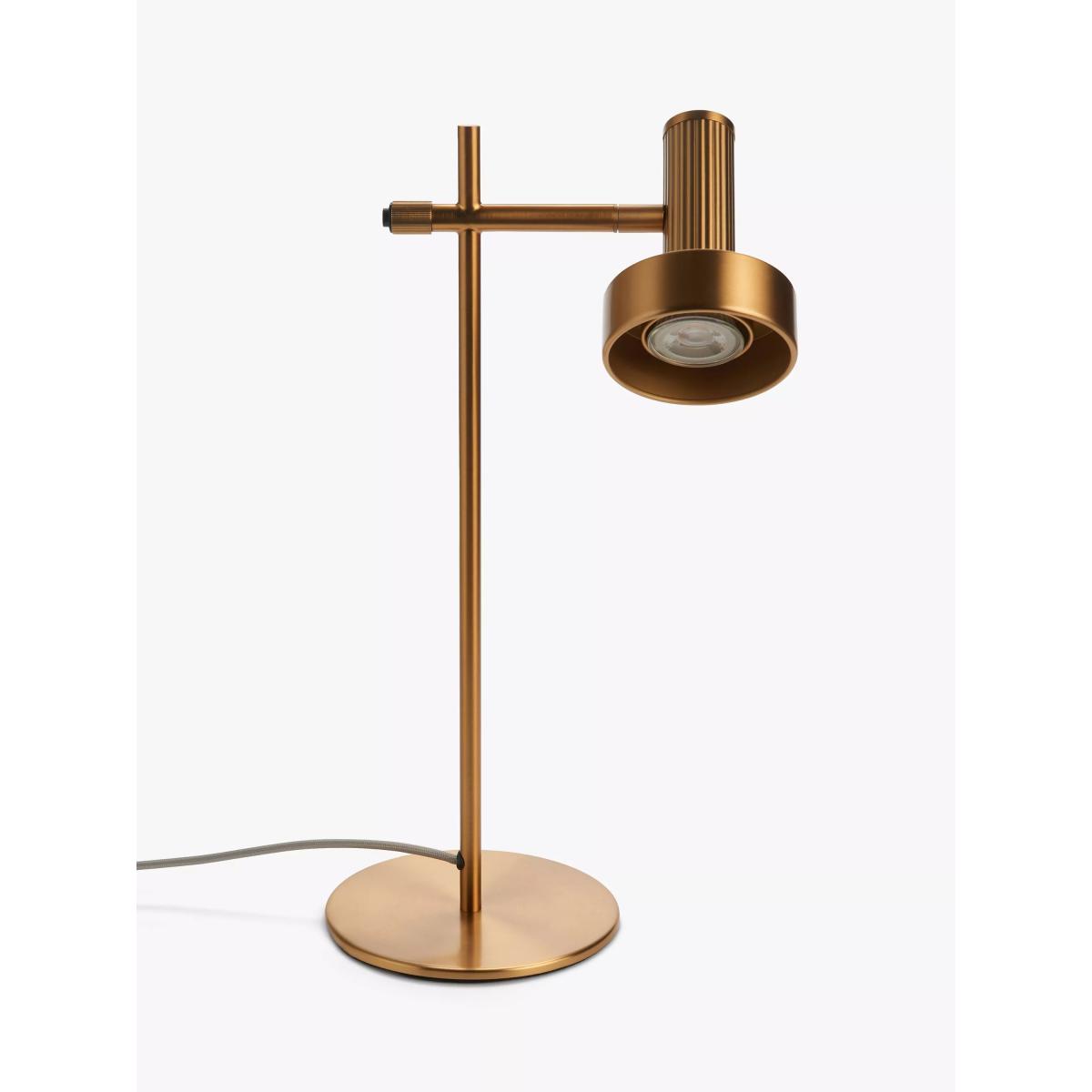 Modern industrial vibes delivered with rich brass plating. Leighton provides bright, directional light without compromising on style. The use of a reeded cylinder adds texture and a stand-out detail in this lighting range. The Leighton task lamp has an adjustable head so you can direct the light where needed most. Designed with an integrated switch in the stem.