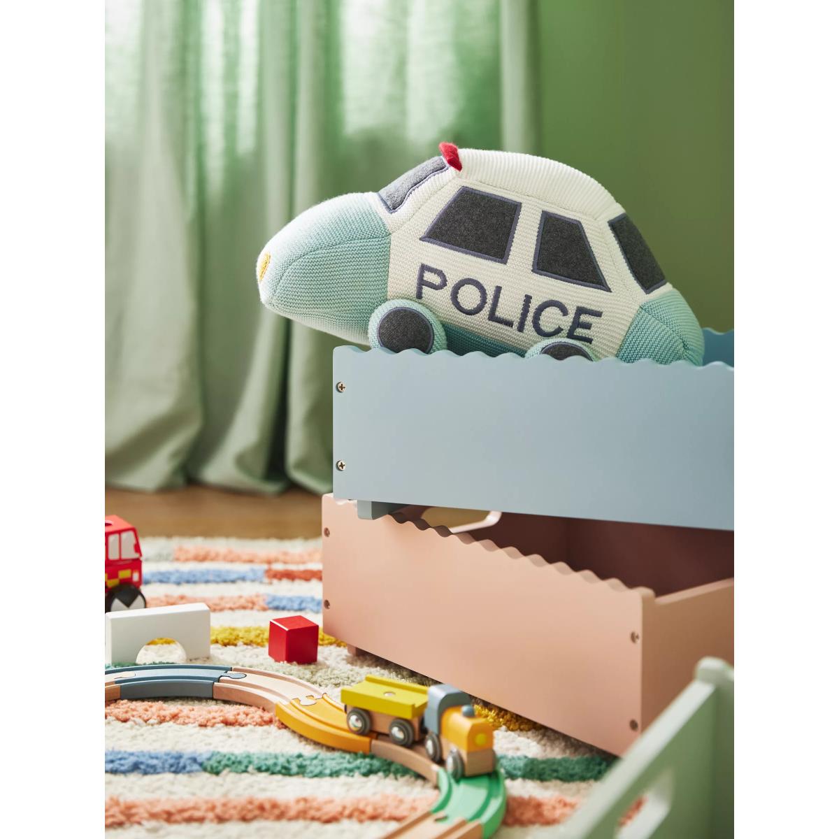 I love this police car cushion for its playful yet contemporary look, making it a perfect accent for a kids' bedroom or a playful family space. Its soft pastel colours and fun design lend themselves well to modern interiors that embrace whimsy, or even a themed playroom. To style it effectively, consider pairing it with neutral or pastel cushions and a coordinating throw to create a cosy corner. It works well with minimalist furniture, adding a touch of character without overpowering the space. For practical tips, use it as a decorative piece on a armchair or bed, or as part of a layered cushion arrangement to keep the look inviting and tactile.