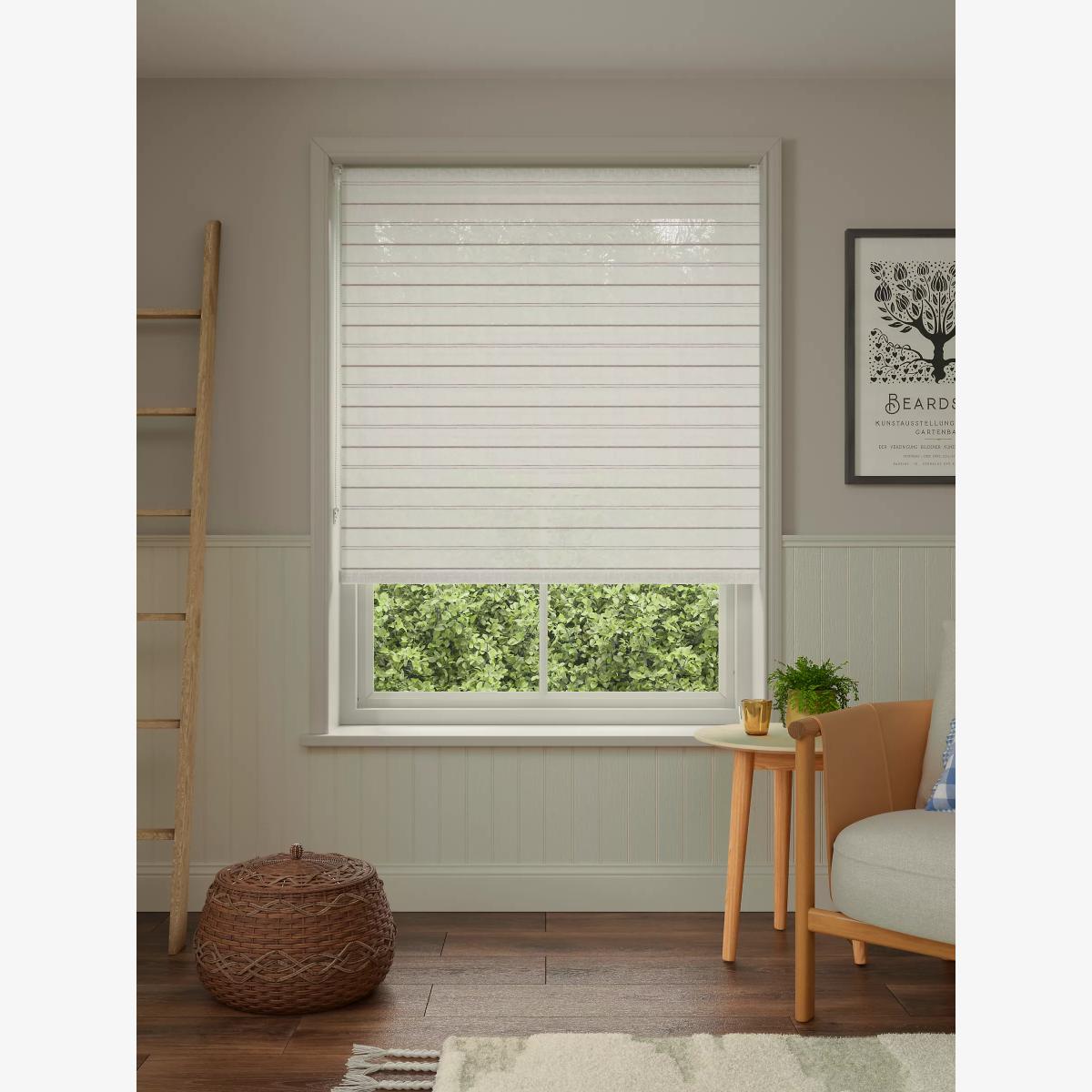 Our Linen Stripe roller blind has a classic look and daylight quality so it offers some privacy without blocking out all light. Key features: Can be installed either inside or outside the window recess, to the wall or ceiling Can be standard or reverse rolled. Standard gives a close fit to the window, helping eliminate light. Reverse brings the material forward over the roll which conceals it and creates space between the blind and window Chain mechanism can be attached on the left or right-hand side, without affecting the way the blind is rolled Width can be cut to size Supplied with easy fit universal brackets Includes safety devices to keep children safe Worth knowing... The width stated in our product specifications is the total width of the blind including mechanisms and brackets. The width of the fabric alone will be a few centimetres less than this. Safety warning Young children can be strangled by loops in pull cords, chains, tapes and inner cords that operate the product. To avoid strangulation and entanglement, keep cords out of the reach of young children - cords may become wrapped around a child's neck Move beds, cots and furniture away from window covering cords Do not tie cords together. Make sure cords do not twist and create a loop More information on child safety can be found on our Child Safety Hub