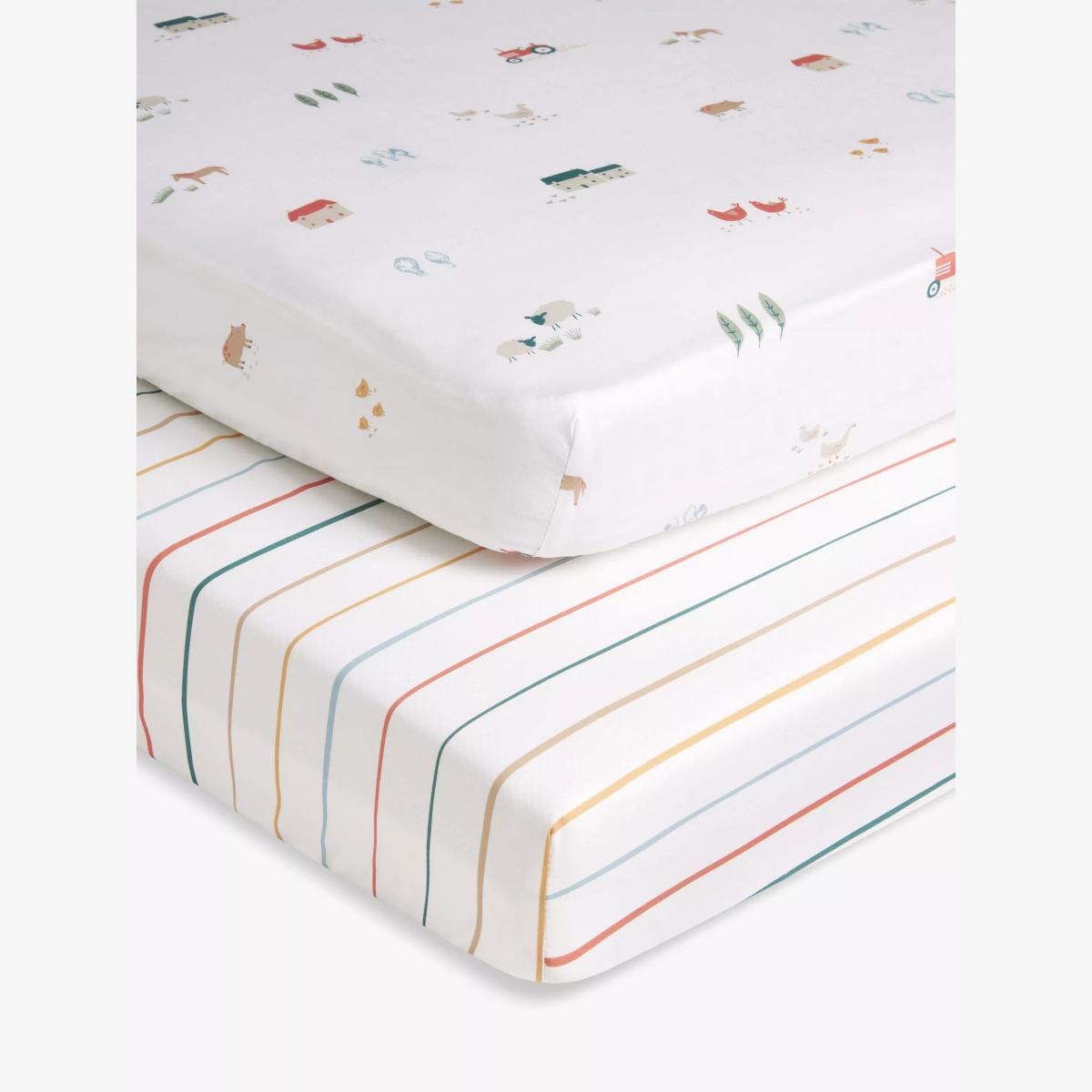 John Lewis Little Farm Cotton Fitted Baby Sheet, Pack of 2, Cotbed (70 x 140cm)