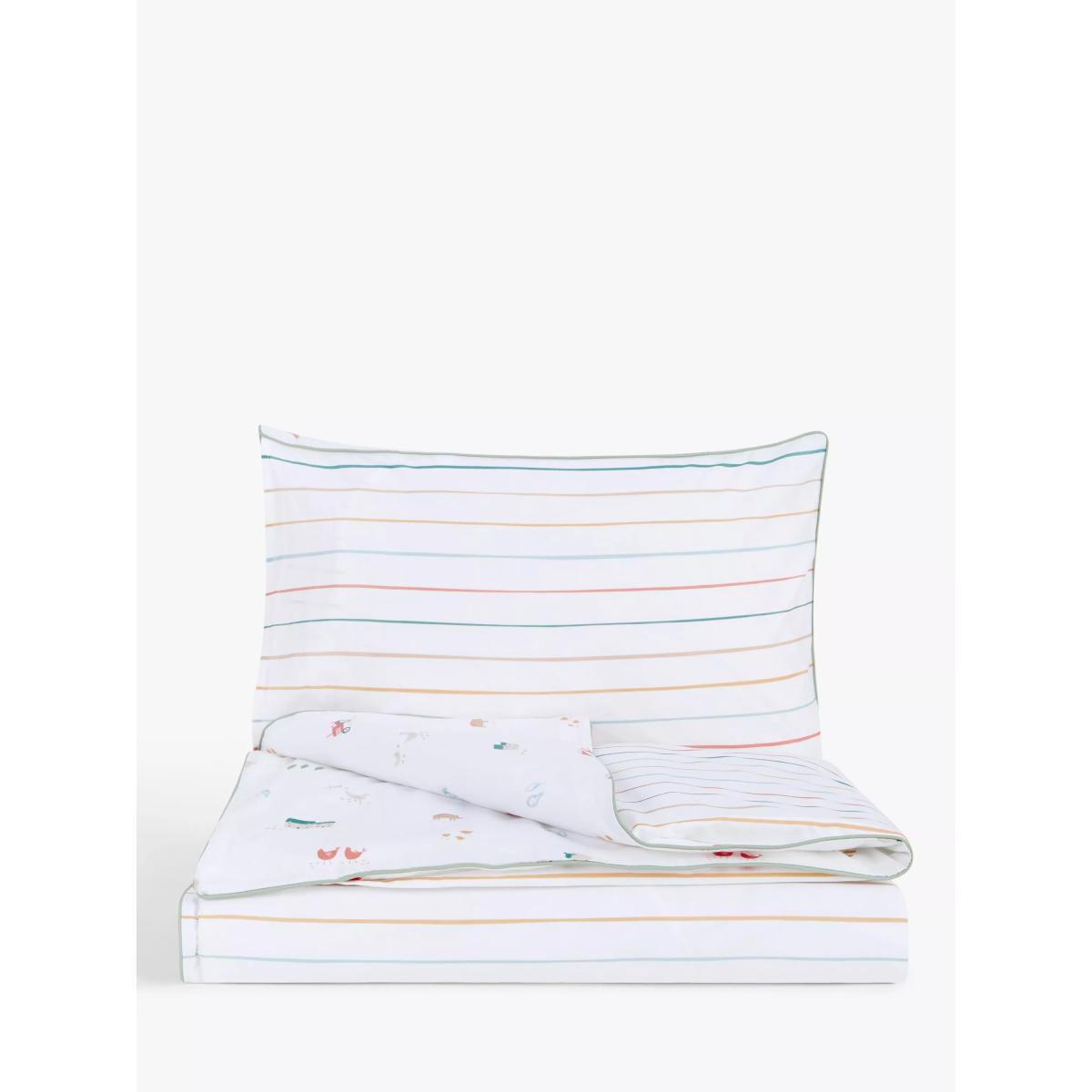 John Lewis Little Farm Toddler Reversible Duvet Cover and Pillowcase Set, Multi, Cotbed (120 x 140cm)