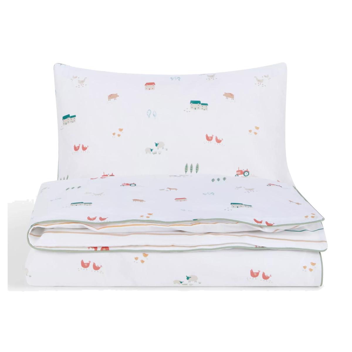 I love this little farm duvet set for adding a touch of playful charm to a child's room. Its reversible design offers versatility, making it easy to switch up the look as your child's tastes evolve. The soft, neutral tones with colourful farm motifs work well in a range of interiors, especially those with a Scandi or modern nursery style. Practical styling tips include pairing it with light wooden furniture and simple, cosy accessories to keep the look fresh and inviting. To keep things simple and coordinated, add complementing pillowcases or cushions with subtle farm-inspired details, and keep bedding layers minimal for a clean, calming environment ideal for restful sleep.