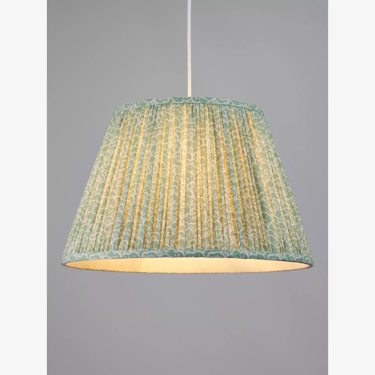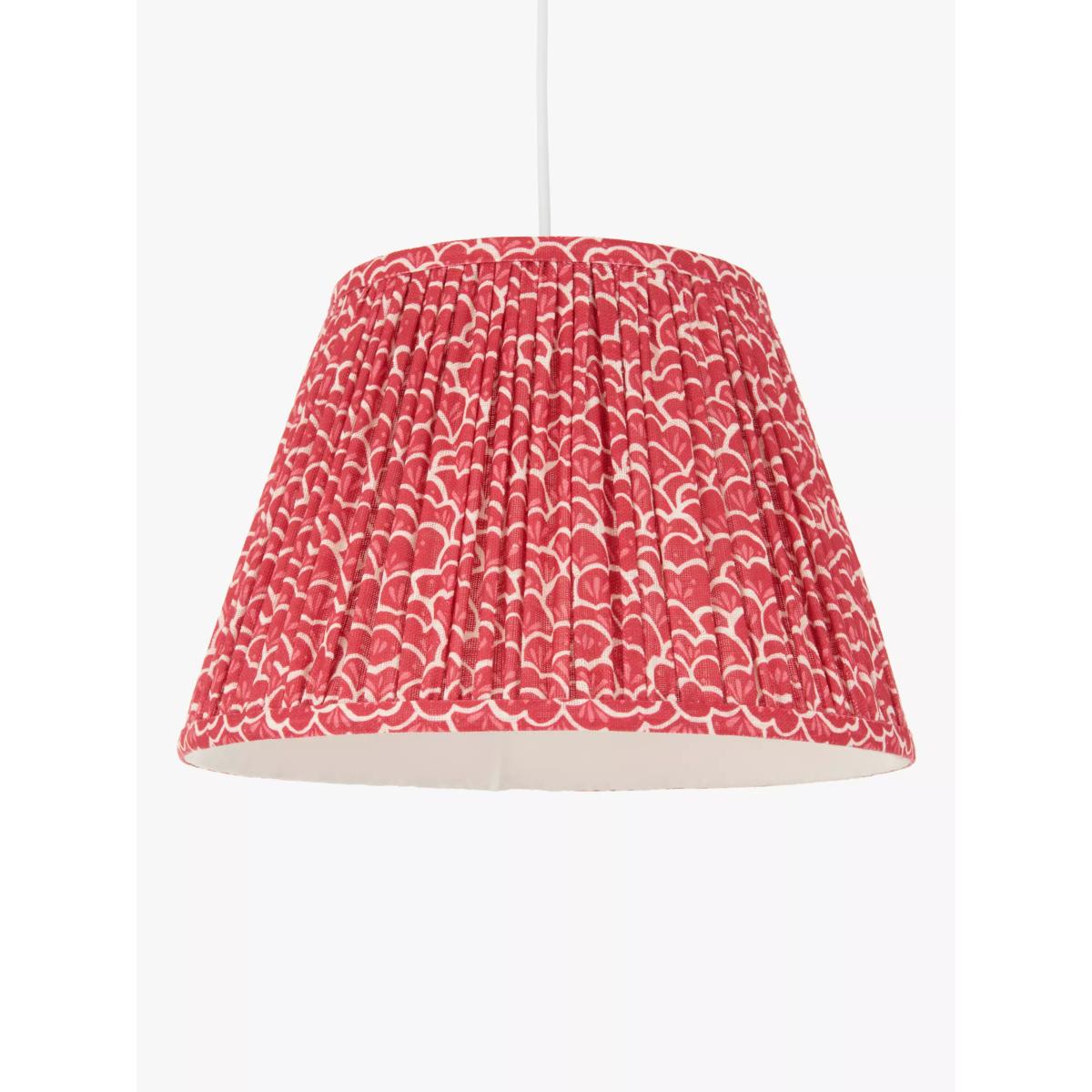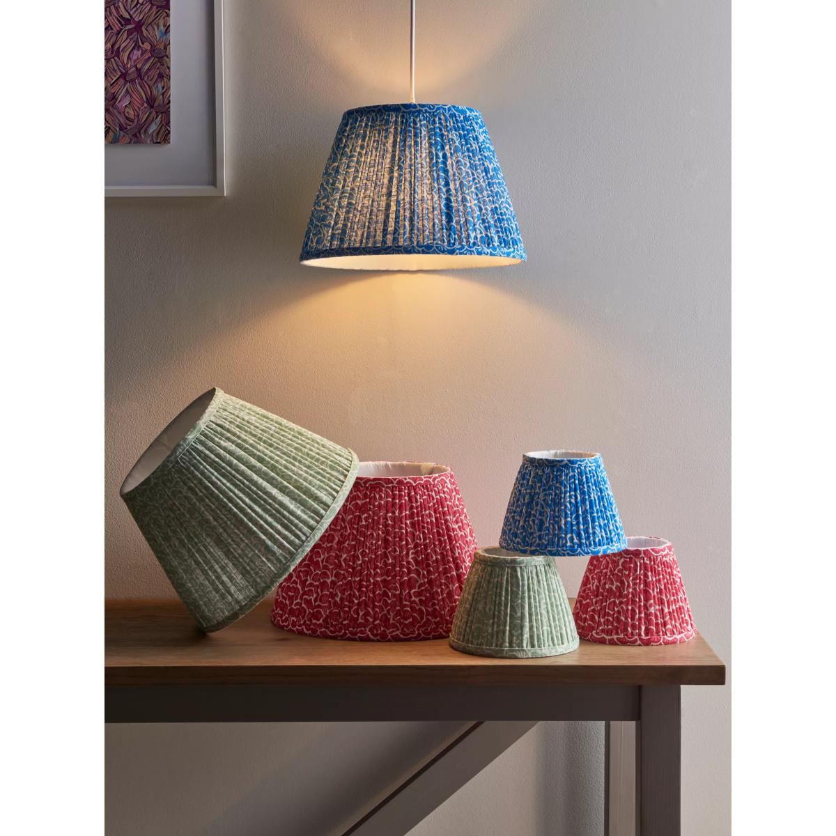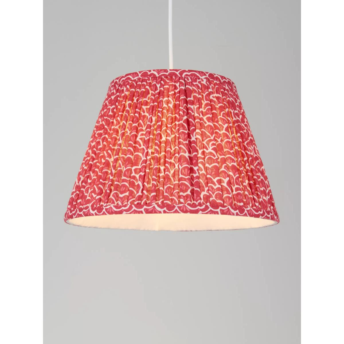 Give your space an instant injection of colour and pattern with our Lumia lampshade, that's digitally printed with a bold, organic illustration. We've made it in a faux linen fabric that's been gathered and pleated by hand into a tapered cylinder shape. Suitable for both large table lamp bases and ceiling fittings, it also has an ivory-coloured lining to enhance a warm glow when your light is switched on.