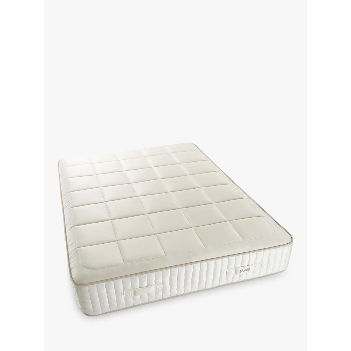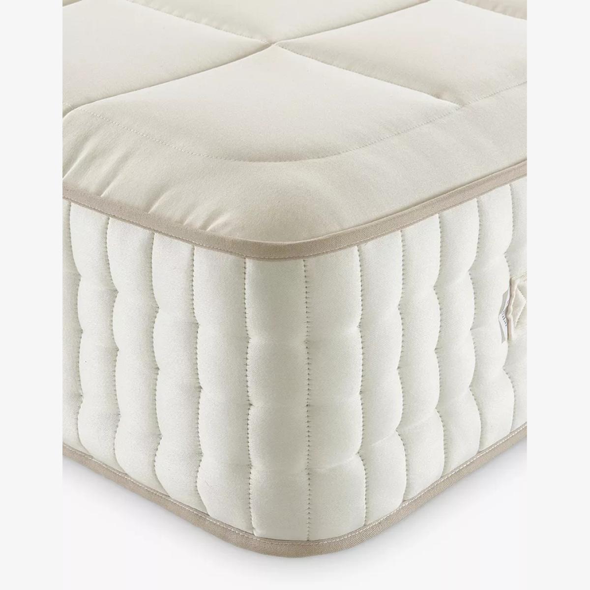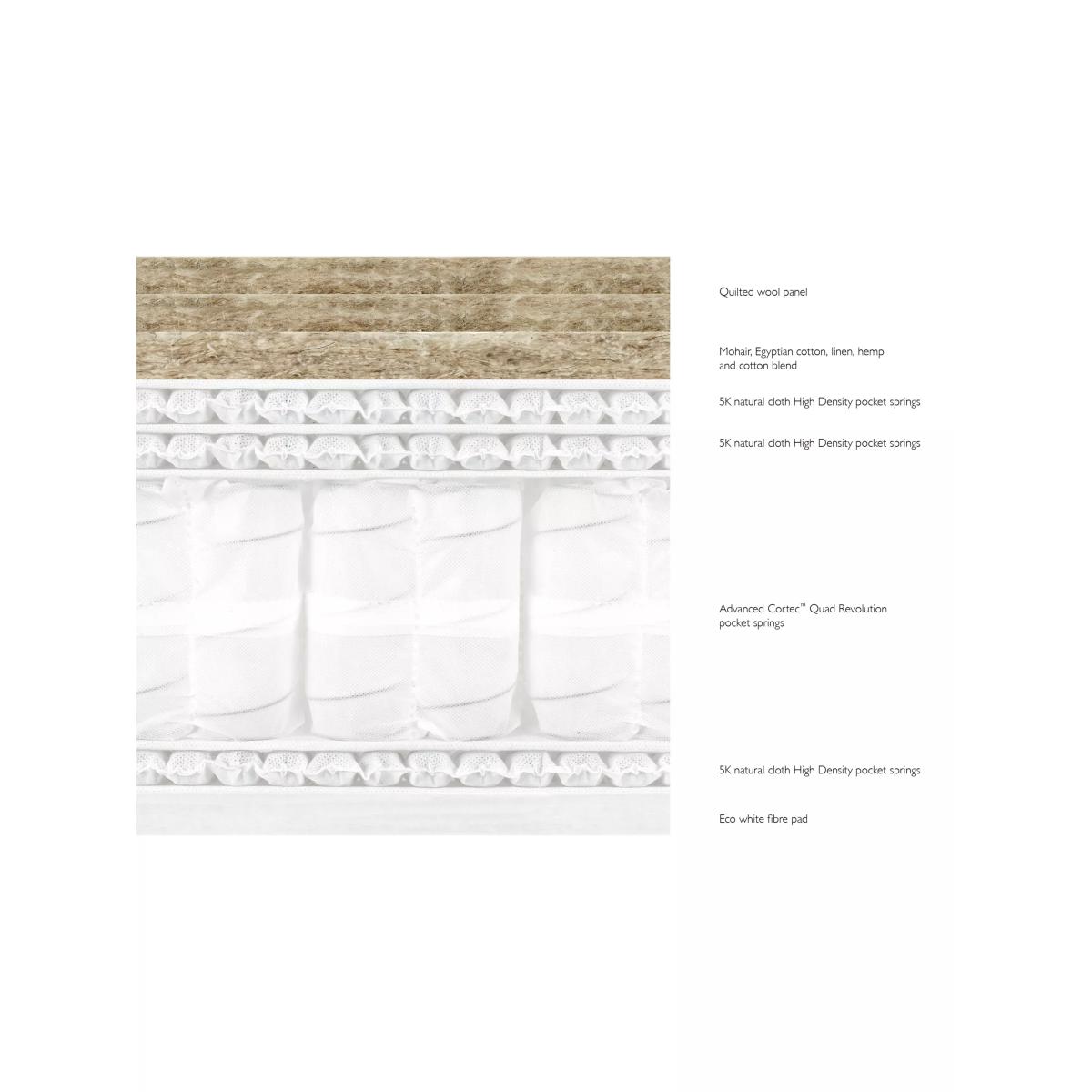 Our Luxury Natural Collection is handmade by experts in Yorkshire, with natural fillings chosen for their wonderful comfort, temperature-regulating and moisture-wicking properties. The innovative, high-density pocket springs reduce pressure points and give excellent targeted support. Plus, the combination of eco-friendly and natural fillings, alongside a completely glue-free design means these mattresses are fully recyclable at end of life for a much more sustainable sleep space. Handcrafted by Harrison Spinks. Reassuringly dense and with an extra level of support, our Firmer tension models are perfect for those who prefer a firmer feel. Natural fillings Manufactured in Yorkshire, this mattress is upholstered with layers of locally-sourced natural fillings. Fine mohair is blended with British fleece wool to provide a sumptuous and luxurious feel, while hemp wicks away moisture, keeping your bed fresh and hygienic. It's finished with a natural wool quilted top which is fully traceable to British farms. This offers a more modern look without traditional tufts, without compromising on comfort. Cortec™ Quad Revolution pocket spring system This glue-free support system has been designed, developed and manufactured in-house, with a design that unites comfort and sustainability. It offers a two-stage level of support thanks to a spring-in-spring design, delivering even greater lumbar support and pressure relief. The heavier parts of your body will be perfectly supported to help maintain an aligned spine and to prevent unwanted aches and pains. Plus, as the springs work individually, air can flow better through the mattress to keep the temperature controlled. Eco-friendly design Marking a huge and sustainable step forward in mattress manufacturing, the patented Cortec™ Quad springs are sealed with heat rather than glue. Not only does this mean the springs can work individually for maximum efficiency, it also means each spring can be disassembled and reinvented in the future. So this mattress is 100% recyclable at the end of its life, rather than ending up in landfill sites across the country. We guarantee to recycle your mattress responsibly when you're ready to buy your next one, after seven years. and we'll help you to choose a new mattress and recycle this one. Make the most of your mattress After unwrapping your new mattress, leave it in a well-ventilated room for a few hours. Any natural scent from the fillings will dissipate after a few days. We recommend using a cotton mattress protector and airing your mattress regularly. If you're placing this mattress on a slatted base, ensure the gaps are no more than 7.5cm apart. Try before you buy This is an important purchase and it's worthwhile to try your choice of mattress in store to make sure it's right for you. Our store Partners will be able to tell you more about its benefits, and recommend options based on your needs.