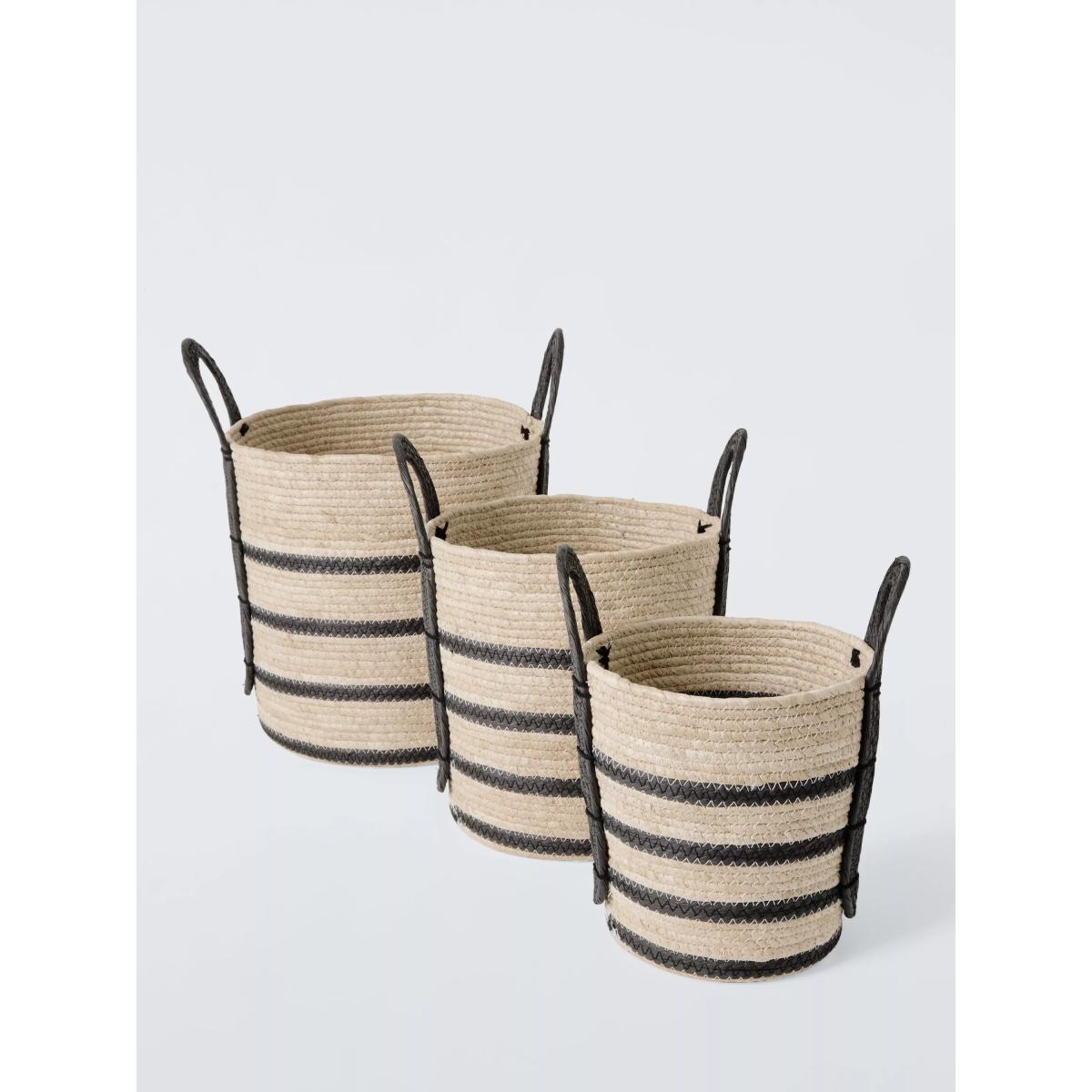 John Lewis Maize Storage Basket, Set of 3, Natural/Black