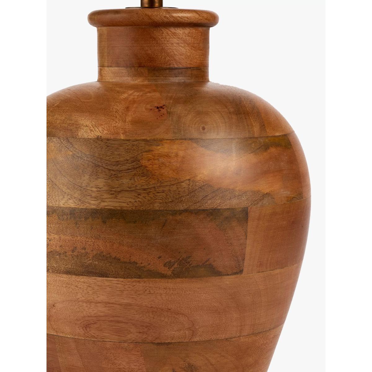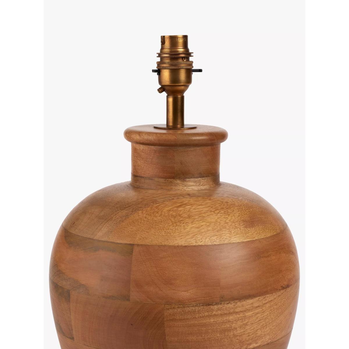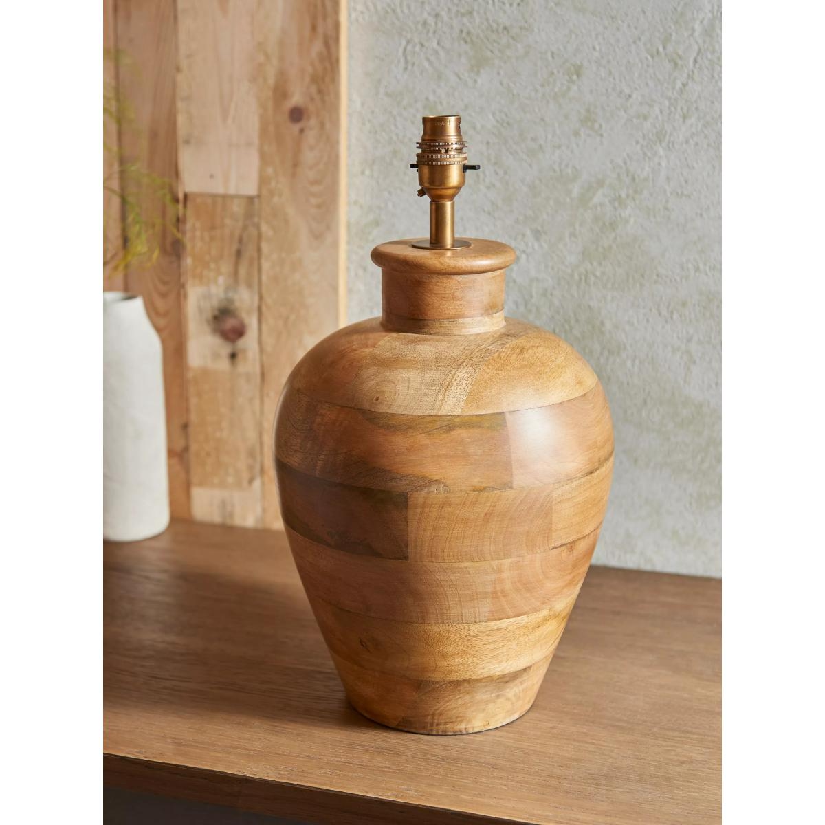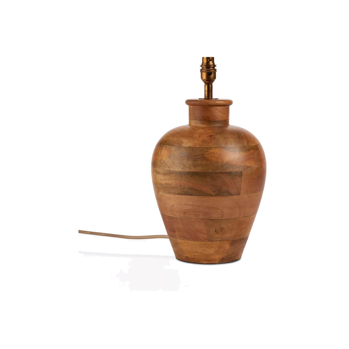 This sculpted lamp base is made from solid mango wood. Its warm tones and unique wood grains, together with its rounded shape will add a calming, natural look to your space. And it means that each base is completely unique. We'd pair it with a linen lampshade to complete the look.