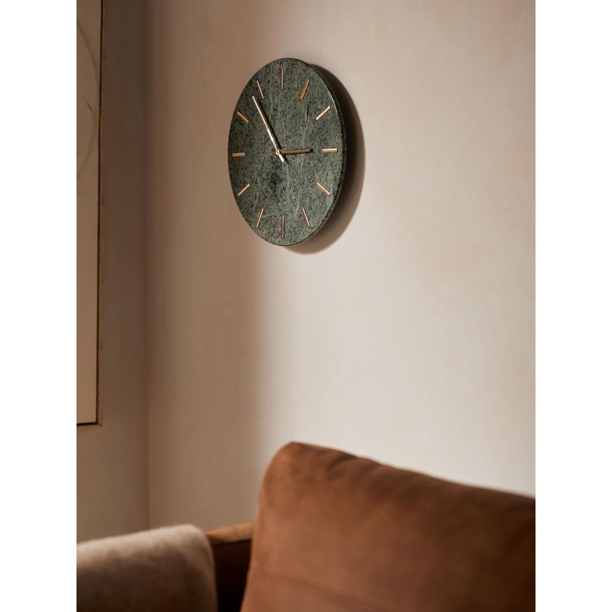 John Lewis Marble Analogue Wall Clock, Green/Brass, 30cm