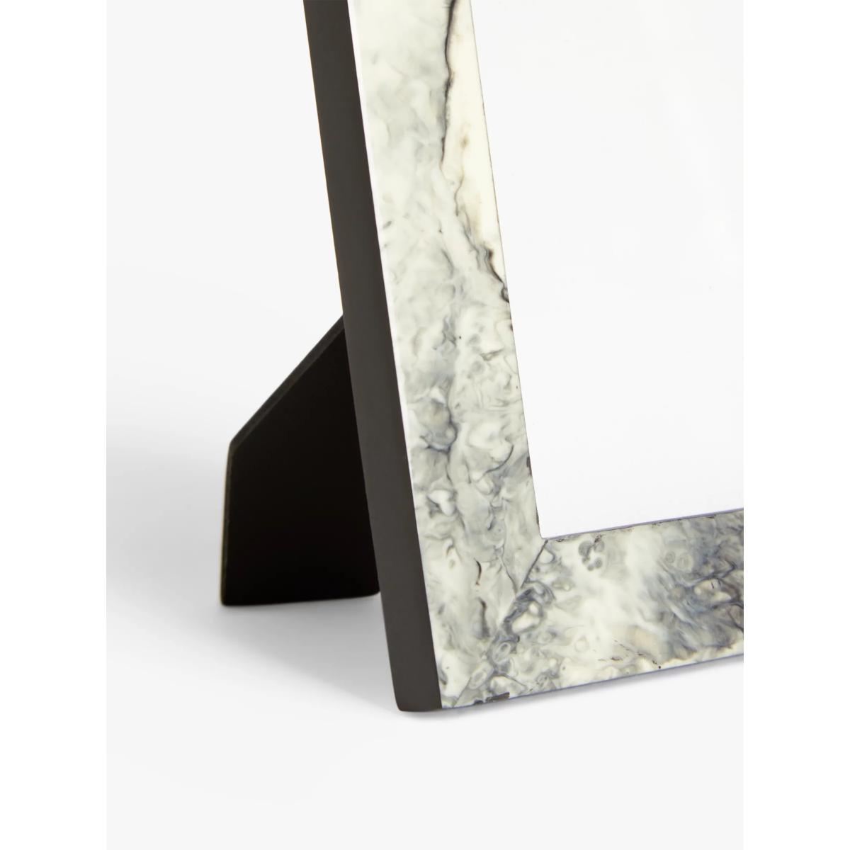 Handcrafted photo frame with a swirling marble-effect design made of smooth resin. Ready to display freestanding, vertically or horizontally. The frame holds a single image and is available in a choice of aperture sizes. The inch measurements are rounded measurements worked back from standard centimetre sizes.