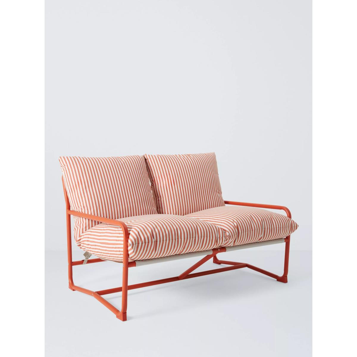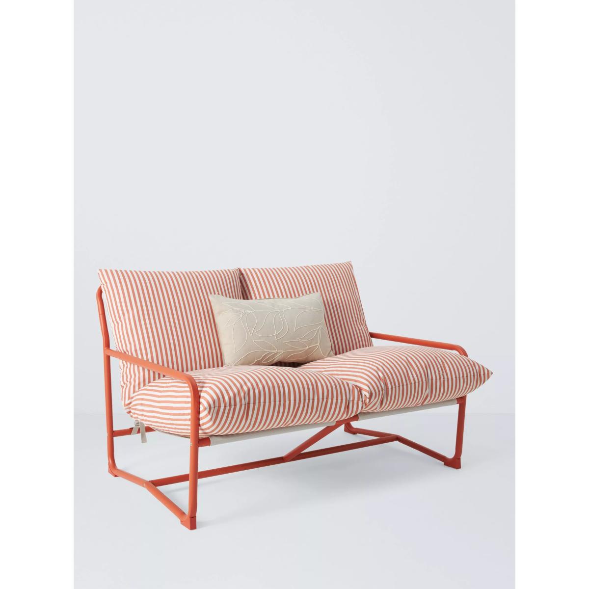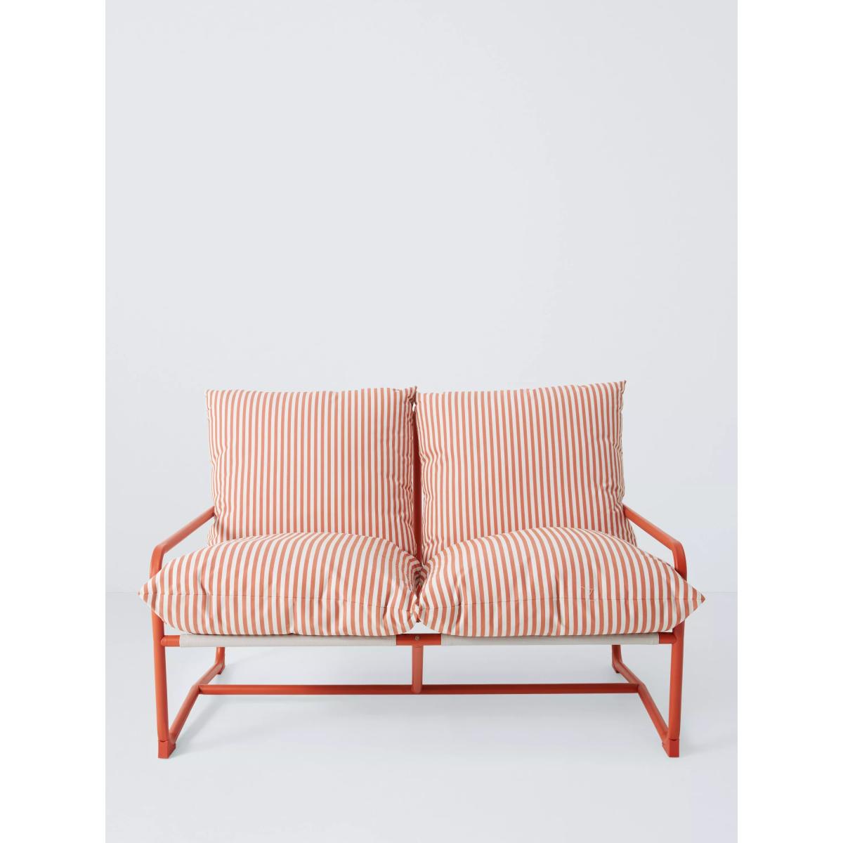 Refresh your garden furniture with our Marcy range, a modern design made with robust tubular frames. All-weather fabric seat and backrest slings provide comfortable support. Plump striped cushioning brings an on-trend look. The seating is easy to assemble and comes apart easily, too, for compact storage. The seat has an adjustable strap to customise reclining. Key features: 2-seater garden chair All-weather sling fabric seat and backrest for comfortable support Robust and rust-free tubular steel frame Striped shower-resistant cushioning Adjustable seat strap to customise reclining Easy to assemble and partially take apart for easy storage Cushion storage bag included Feet caps protect furniture and surfaces Matches garden furniture in our Marcy range Garden furniture care: To keep your outdoor furniture in the best condition, store it in a cool, dry, well-ventilated spot indoors over the winter. If it’s staying outside, use an outdoor furniture cover whenever the weather is wet or unseasonal. Make sure furniture is clean and dry before storing it away, and keep cushions in a clean and dry place when not in use.
