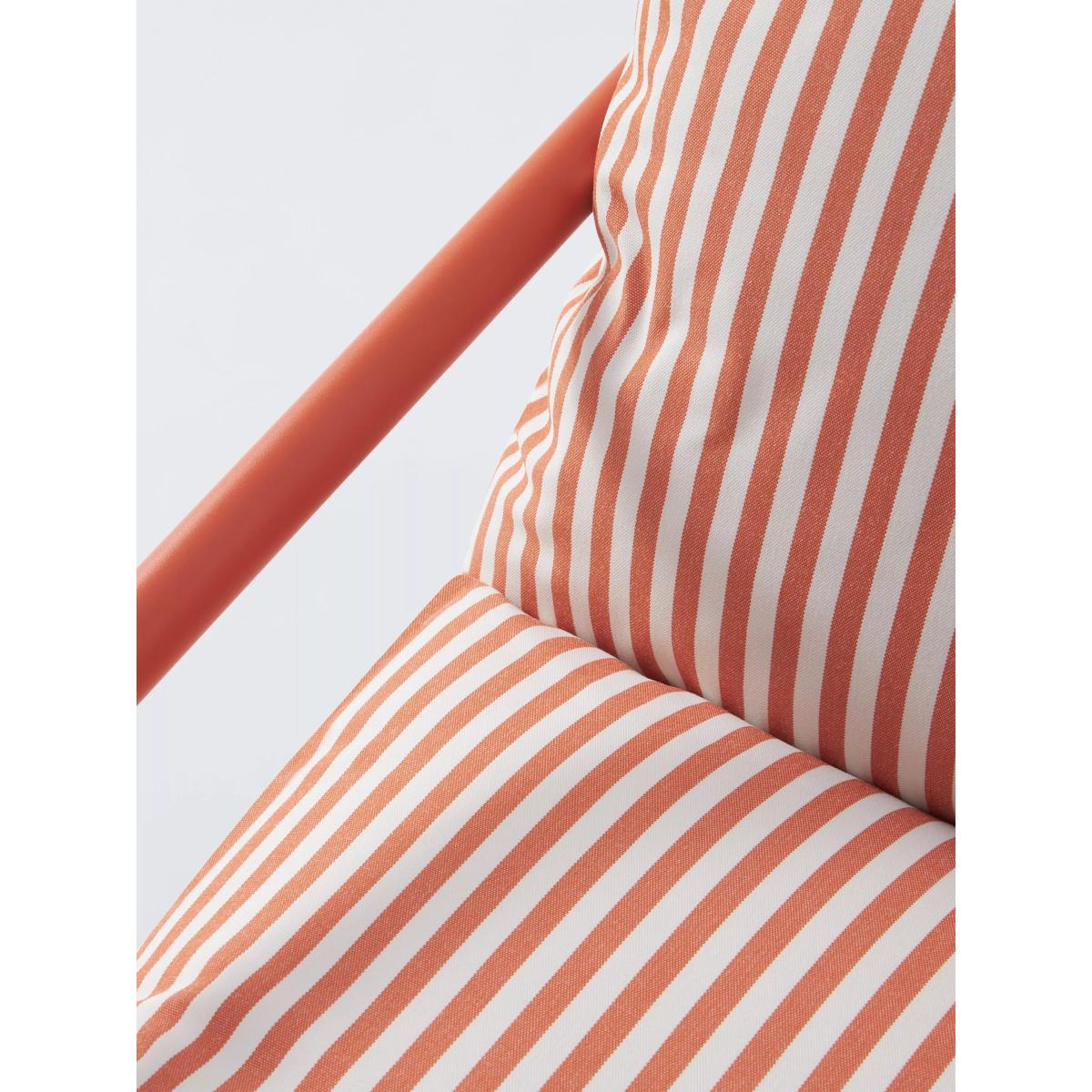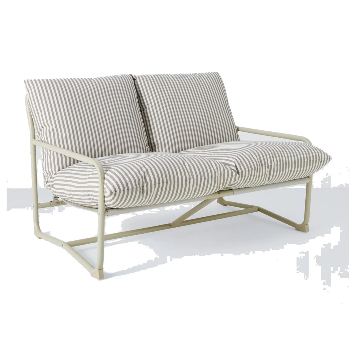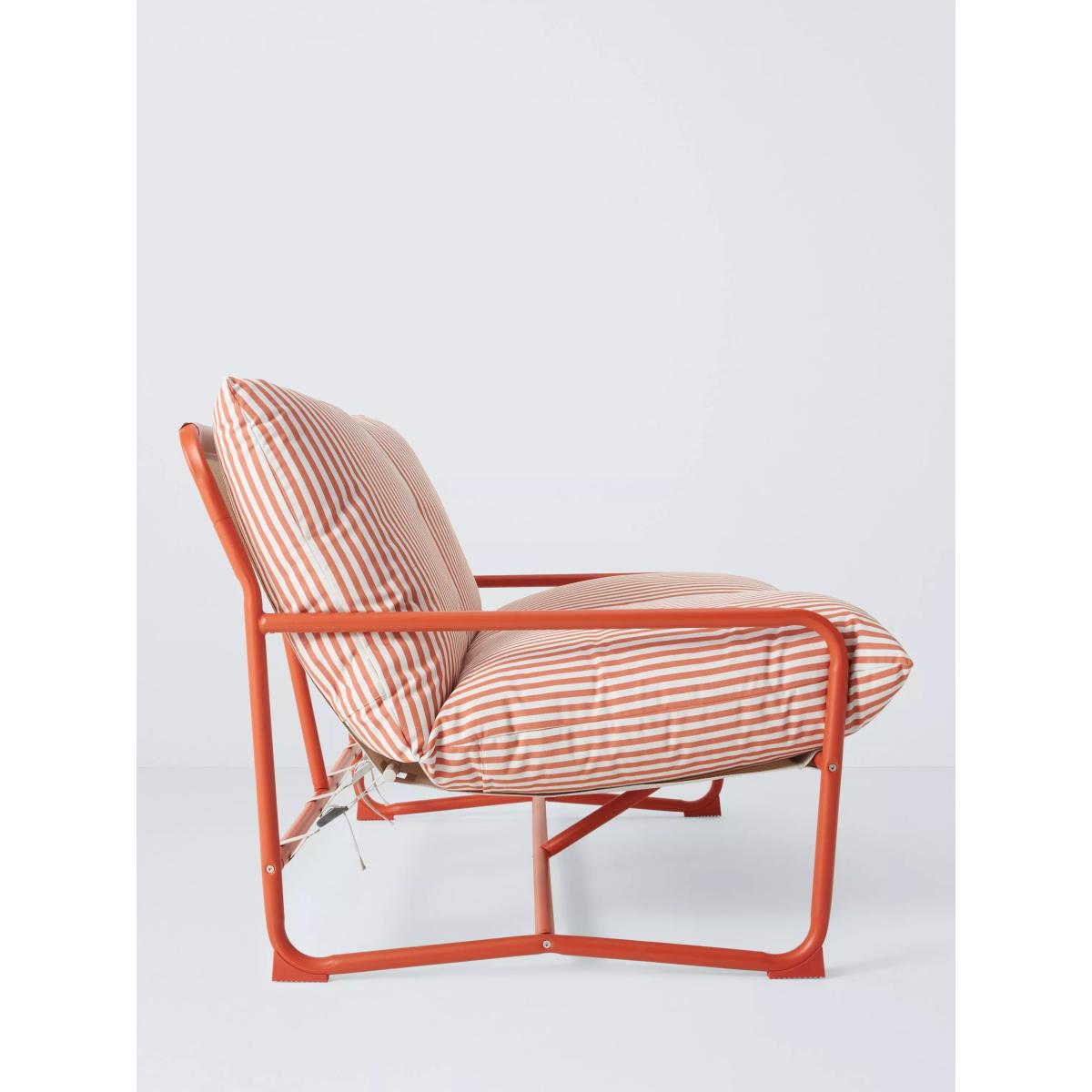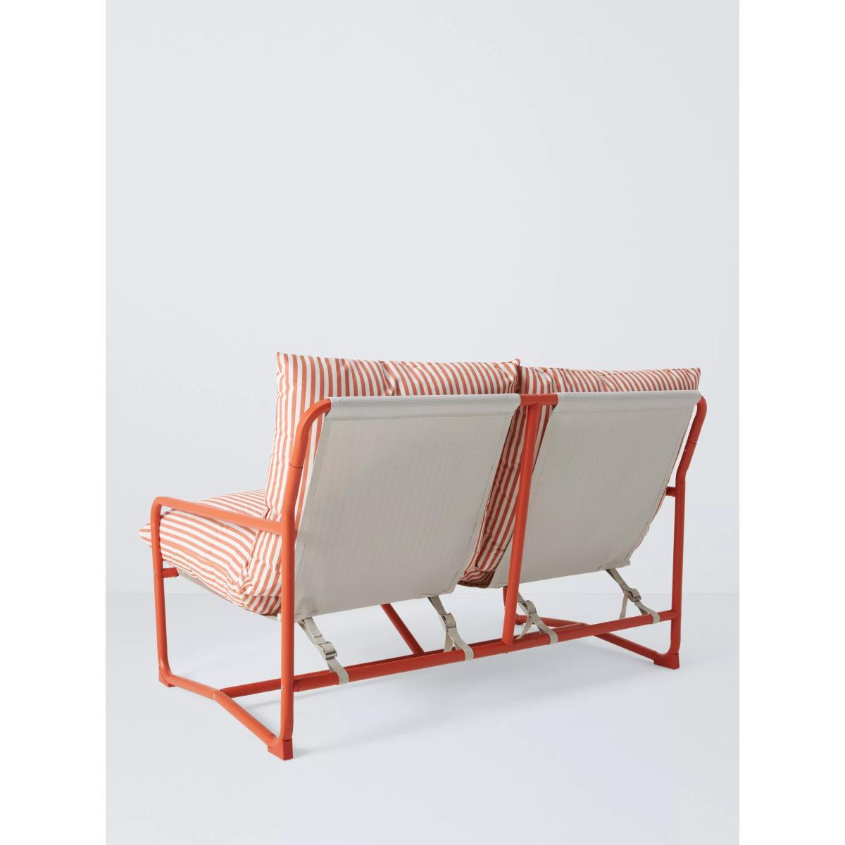 Refresh your garden furniture with our Marcy range, a modern design made with robust tubular frames. All-weather fabric seat and backrest slings provide comfortable support. Plump striped cushioning brings an on-trend look. The seating is easy to assemble and comes apart easily, too, for compact storage. The seat has an adjustable strap to customise reclining. Key features: 2-seater garden chair All-weather sling fabric seat and backrest for comfortable support Robust and rust-free tubular steel frame Striped shower-resistant cushioning Adjustable seat strap to customise reclining Easy to assemble and partially take apart for easy storage Cushion storage bag included Feet caps protect furniture and surfaces Matches garden furniture in our Marcy range Garden furniture care: To keep your outdoor furniture in the best condition, store it in a cool, dry, well-ventilated spot indoors over the winter. If it’s staying outside, use an outdoor furniture cover whenever the weather is wet or unseasonal. Make sure furniture is clean and dry before storing it away, and keep cushions in a clean and dry place when not in use.