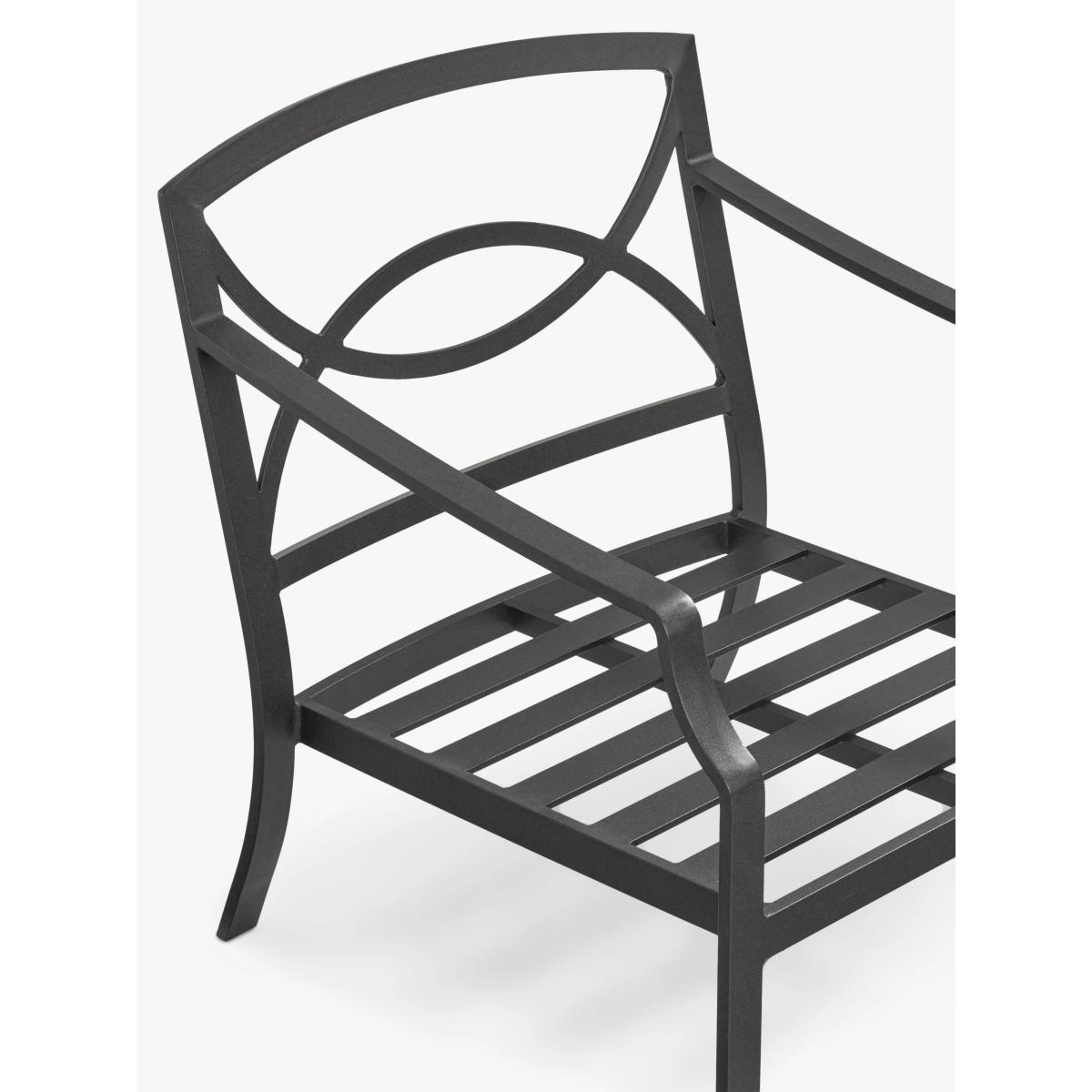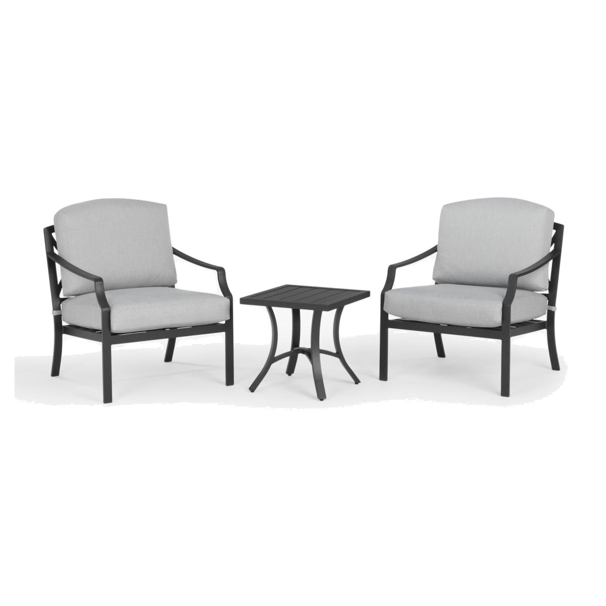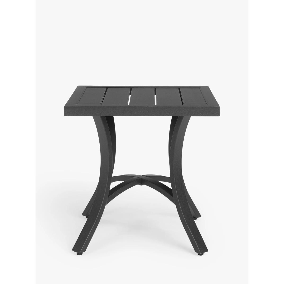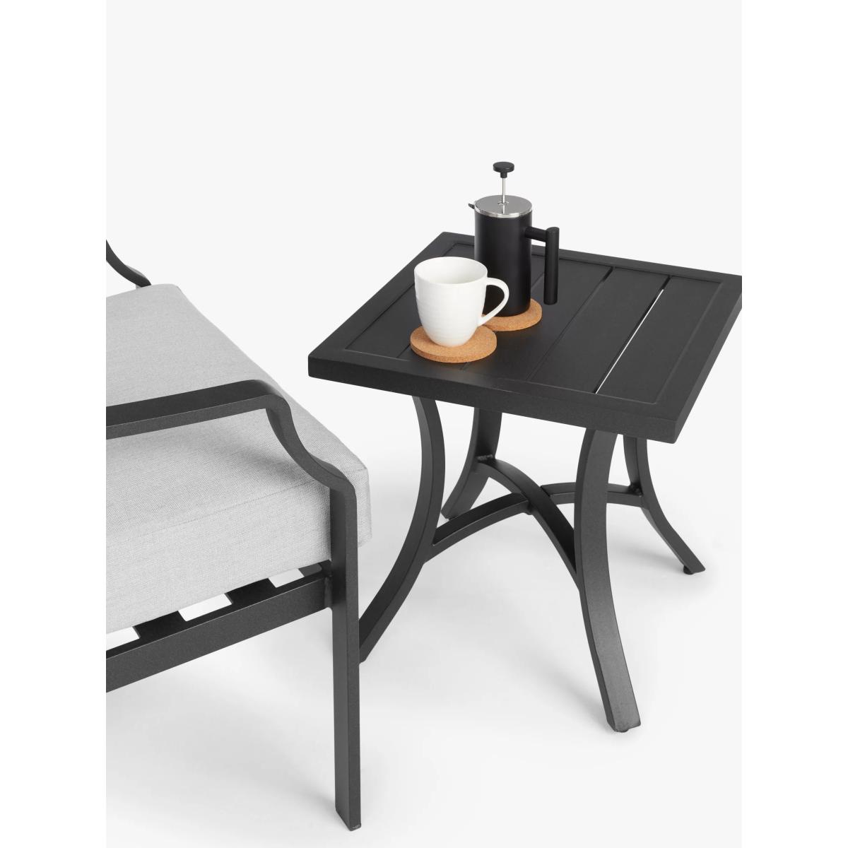 Our Marlow garden bistro set is made of lightweight yet robust and rust-proof powder-coated aluminium. The set includes a square garden bistro table and two garden lounge armchairs with comfortable, shower-resistant seat and backrest cushions. Key features: Square garden bistro table with slatted metal top Two garden armchairs Lightweight yet robust and rust-proof powder-coated aluminium frames Shower-resistant seat and backrest cushions Chairs are fully assembled, table is easy to assemble Matches garden furniture in our Marlow range Garden furniture care: To keep your outdoor furniture in the best condition, store it in a cool, dry, well-ventilated spot indoors over the winter. If it’s staying outside, use an outdoor furniture cover whenever the weather is wet or unseasonal. Make sure furniture is clean and dry before storing it away and keep cushions in a clean and dry place when not in use.