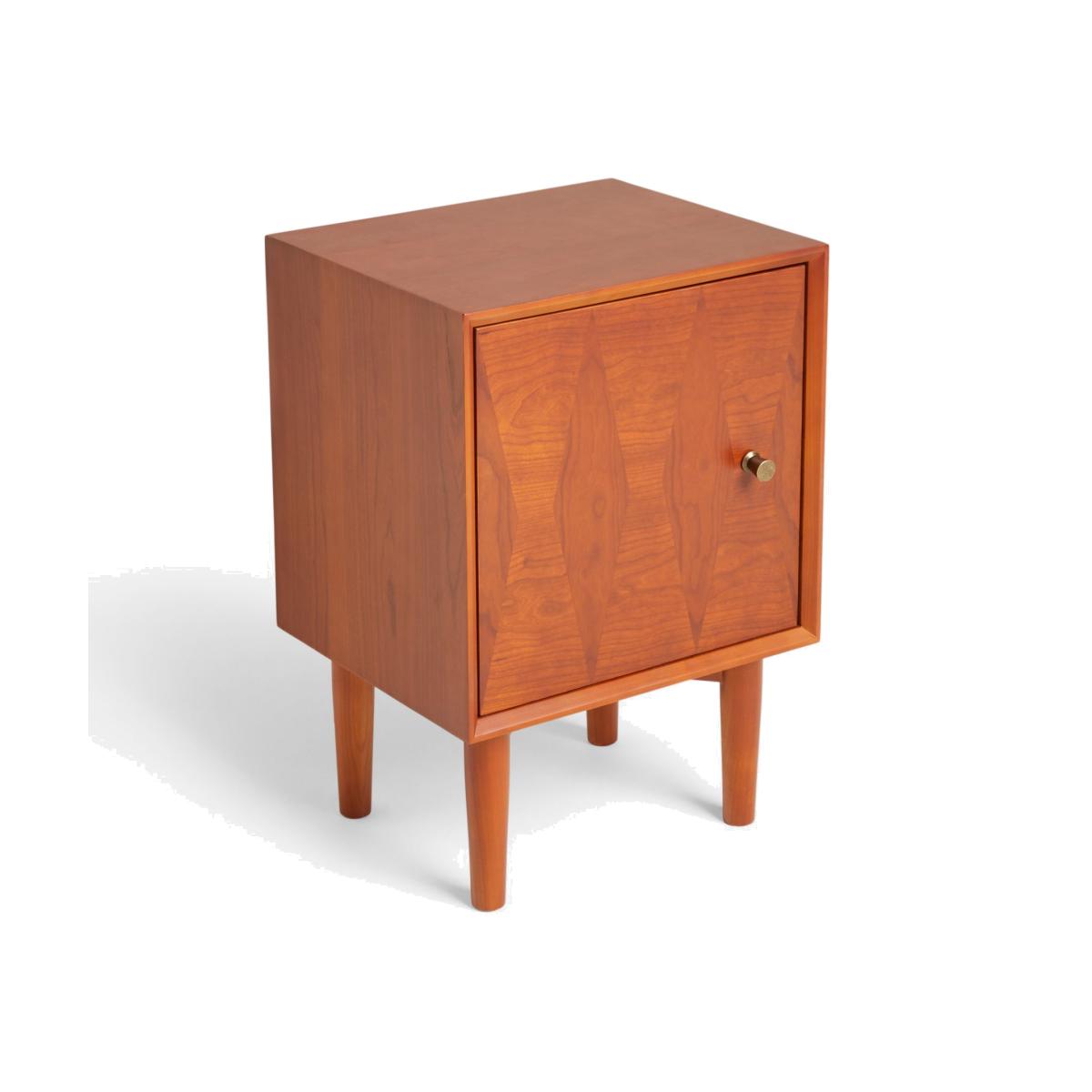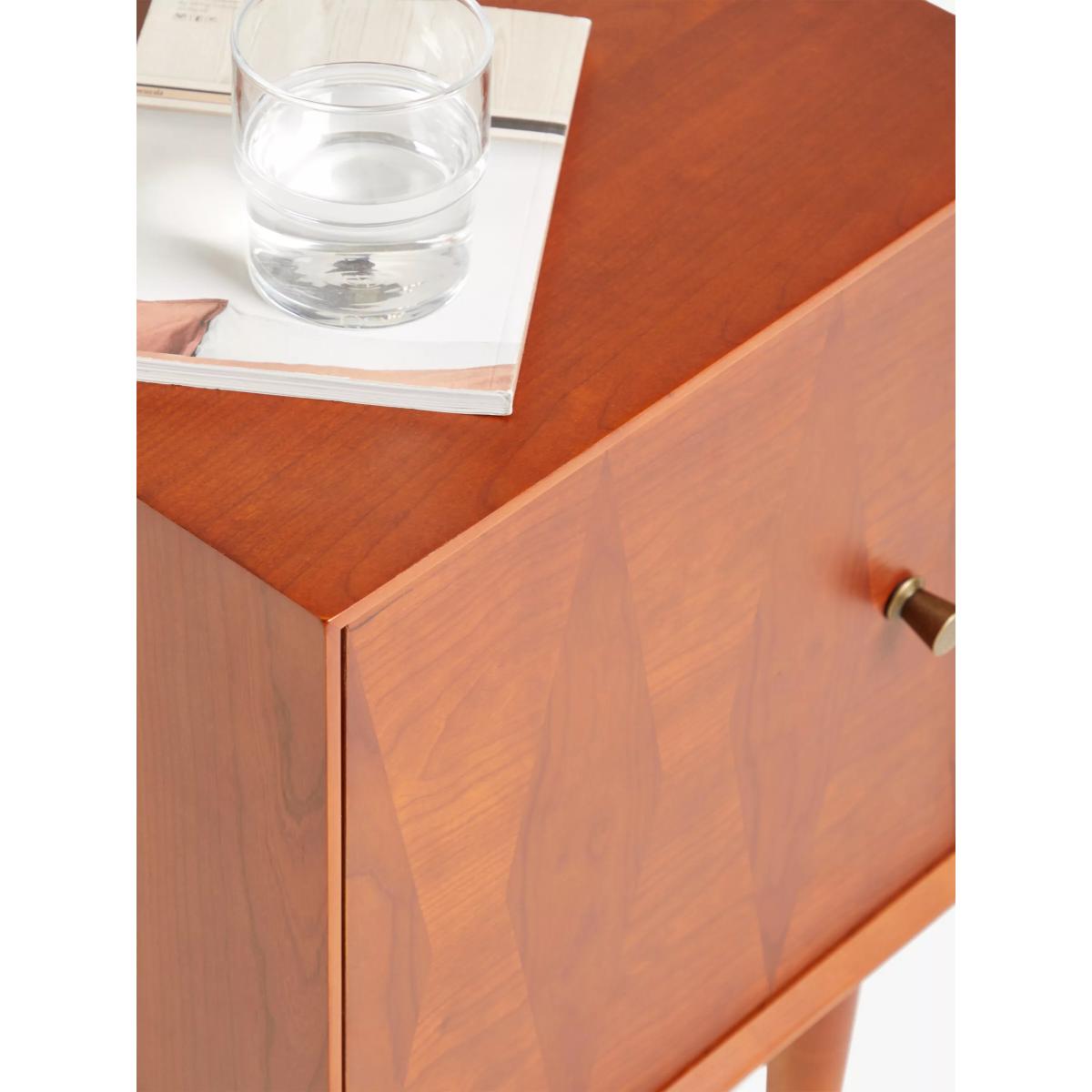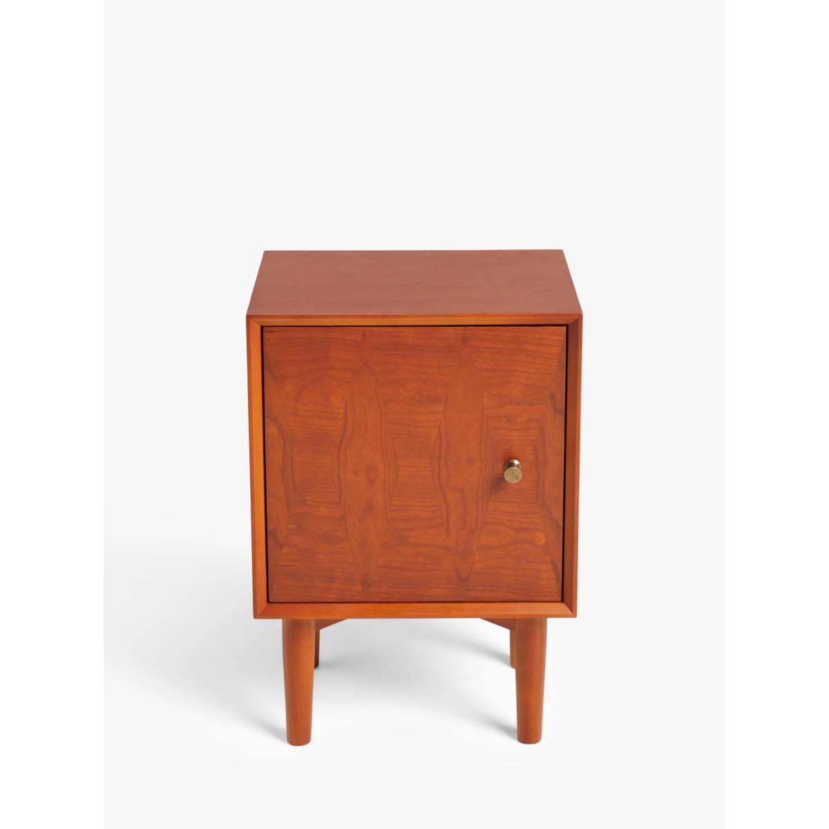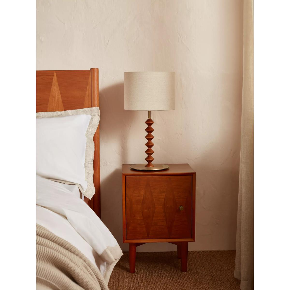 I love the Marquetry bedside for its warm timber tones and subtle mid-century detailing - it brings a touch of character without overwhelming a scheme. Its compact size and single-cupboard design make it perfect for smaller bedrooms or hallways where you need a bit of hidden storage. Styling-wise, it sits equally well in Scandi-inspired spaces with crisp whites and soft greys or in more eclectic rooms layered with vintage textiles and mixed metals. Keep the top clear except for a small lamp and perhaps a slim vase or stack of books to let the wood grain take centre stage, and use the cupboard to hide chargers, remotes or bedside clutter.