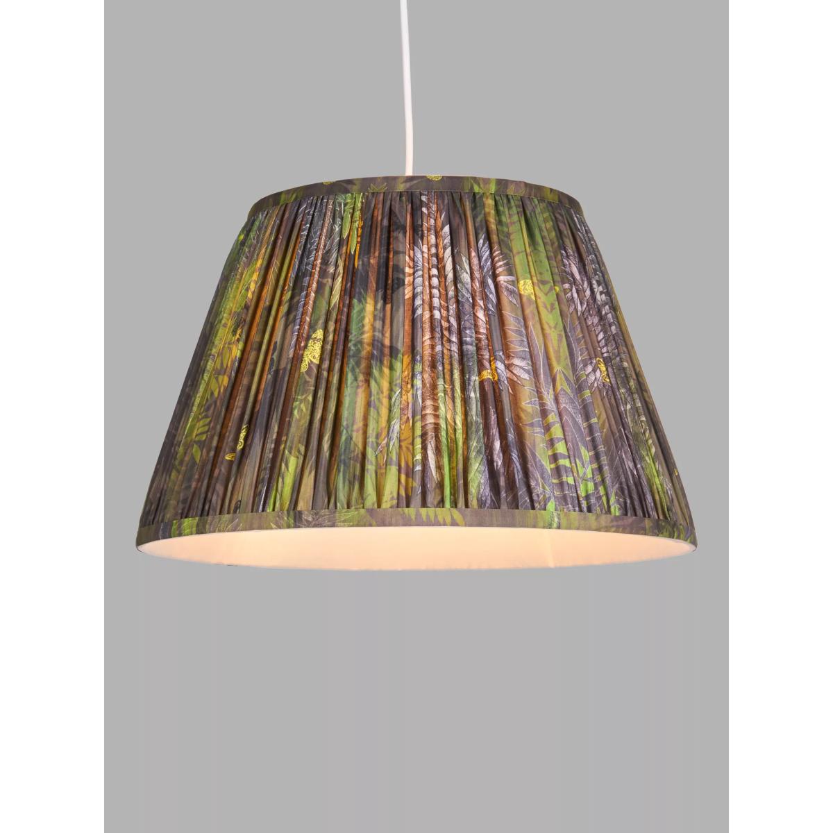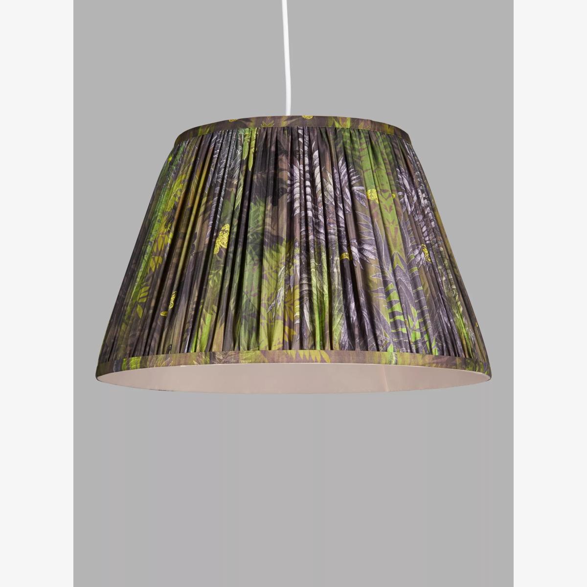 Nature's riotous beauty, brought home An exclusive collaboration with Matthew Williamson, master of colour and pattern. The energy of the great outdoors, beautifully captured. This bespoke, digitally printed, lampshade is suitable for both table lamp bases and ceiling fittings. It's made from a faux silk fabric that's been gathered and pleated by hand into a tapered cylinder shape. Best of all? Its bold, punchy pattern will make an instant statement in your space.