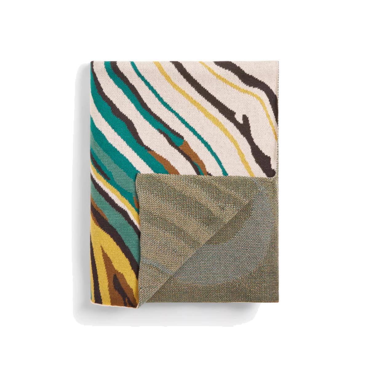 I love this throw for how its bold, colourful pattern adds a lively touch to any room. It works particularly well in contemporary or eclectic interiors, where a statement accessory can really inject personality. Practical styling tips include draping it over a sofa or bed for an instant colour boost, or folding it neatly at the end of a bed for a pop of pattern. Its knitted texture makes it cosy and inviting, perfect for layering during cooler months. Because of its vibrant design, it pairs nicely with neutral tones to let the throw be the star, or with other colourful accents if you’re going for a more vibrant look.