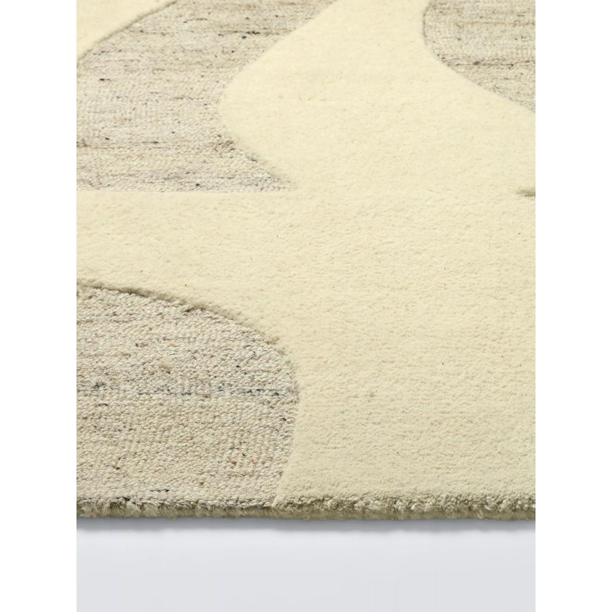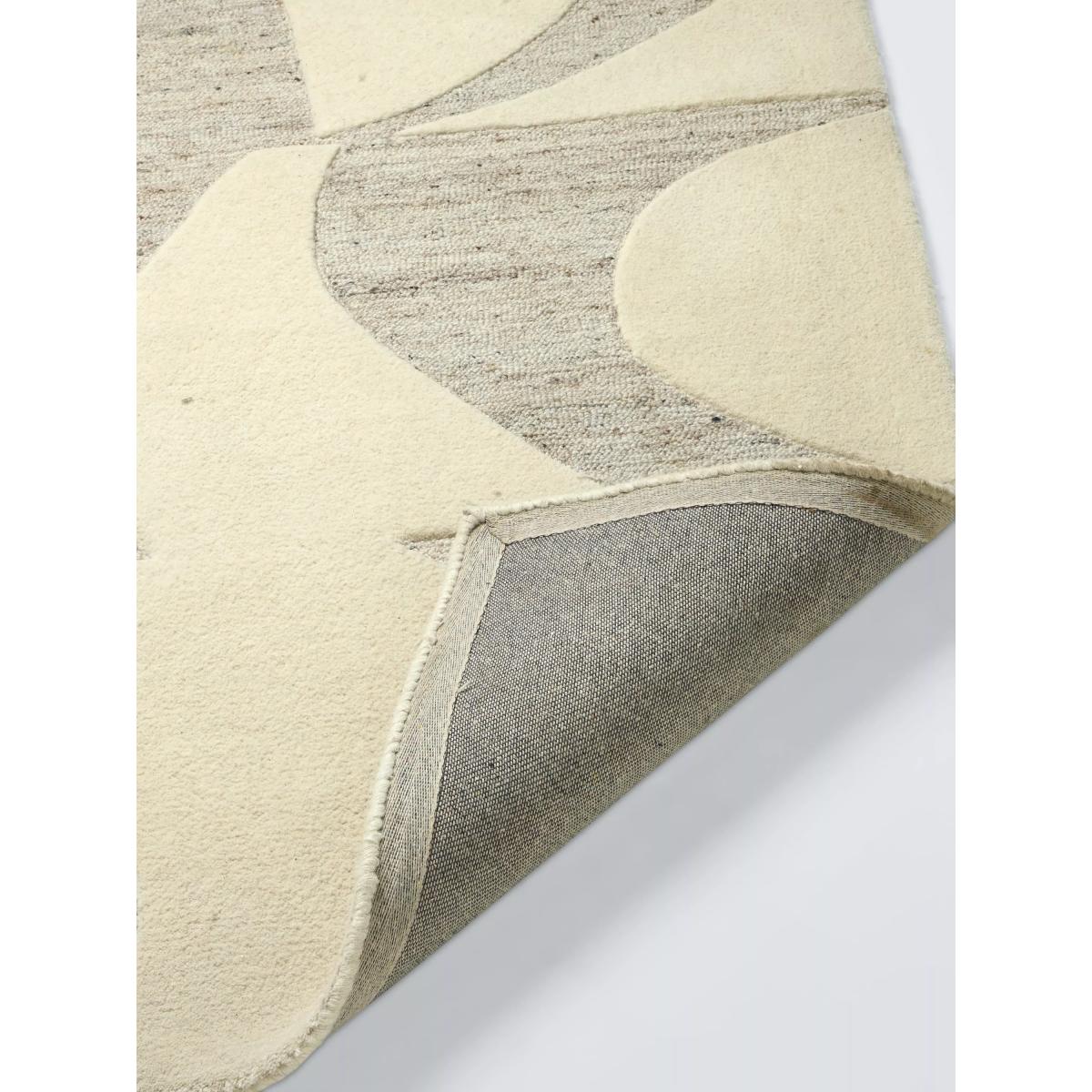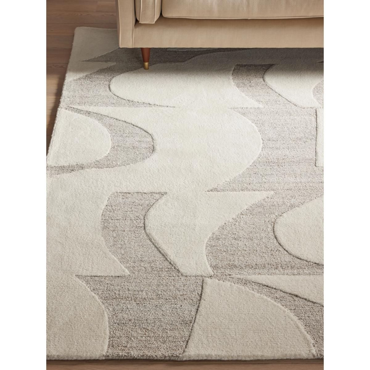 A retro-inspired option, we love the broken wave design of the Mellea rug. Crafted from a wool blend for warmth with nylon for a wonderfully sheen finish, this high density floor covering has a wonderful lustre and plush feeling underfoot. With a flat finish making this rug ideal for busy, high-traffic rooms, the materials in this rug have been woven together by hand to create a strong construction. About your new rug We recommend John Lewis & Partners Rug Hold Underlay. It prevents your rug from moving underfoot and protects against colour transfer to the floor As this rug is made using natural fibres, shedding is to be expected. This will reduce over time, and should not have an impact on the lifespan or performance of your rug. When you first get your rug, please use the brush attachment on your vacuum cleaner whilst the shedding dies down. After that, when vacuuming your rug, use suction only. Rotating brushes may damage the fibres. When vacuuming your rug, use suction only. Rotating brushes may damage the fibres Blot any spills with a clean, dry cloth. Do not rub or use harsh detergents. Latex backed therefore not suitable for underfloor heating. Specialist cleaning recommended. Attend to spillages immediately and blot with a clean, dry cloth to prevent staining. Dilute a small amount of appropriate carpet shampoo in water. Dampen a colourfast cloth in the diluted shampoo solution and dab the rug, lightly agitating, moving in the direction of the pile. Treat the whole rug and not just the affected area. To restore the appearance of the affected area, use a soft bristled brush to gently comb in the direction of the pile. Allow the rug to thoroughly dry.