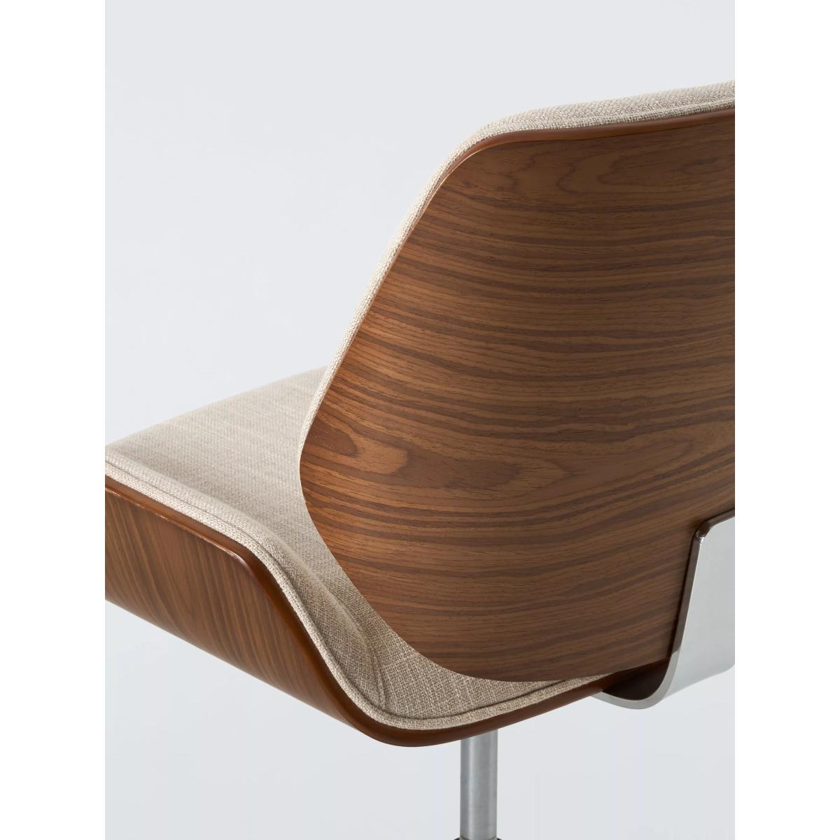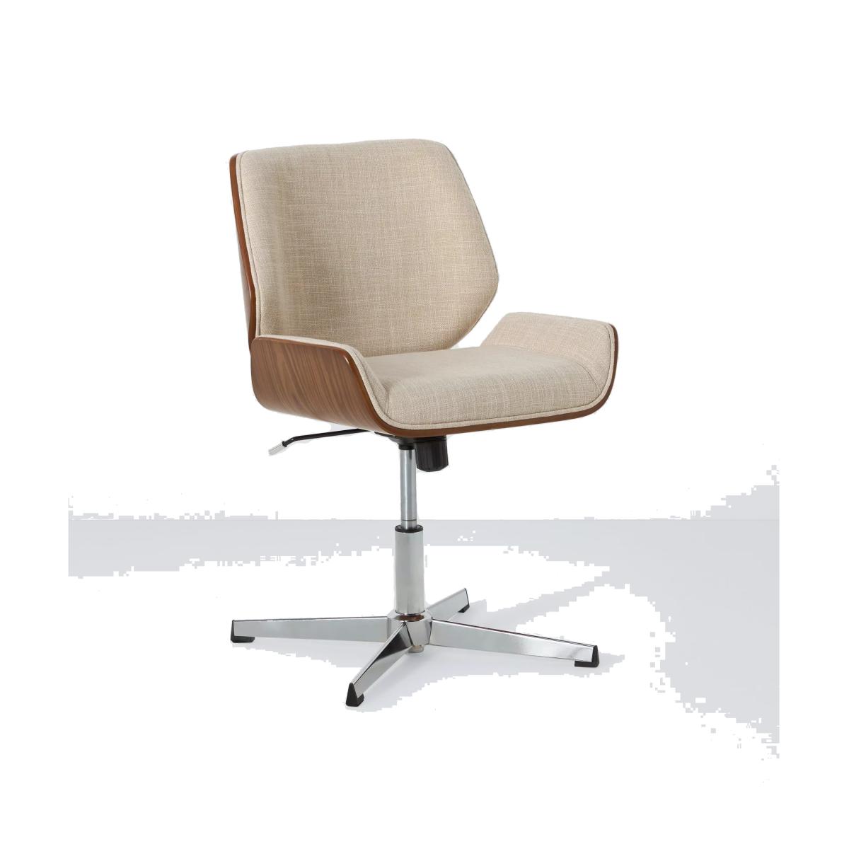 This beautiful bentwood chair will look great wherever you decide to set up your home office. The compact, armless design tucks neatly beneath a desk and the ergonomically contoured seat cushion and backrest are padded for comfort. The backrest also features recline lockout with adjustable tilt tension and the height adjusts to the perfect level with an easy to operate gas lift mechanism. Made from natural grain walnut veneer upholstered in soft, yet durable, polyurethane, Melrose has fixed feet rather than castors for a more stylish and less utilitarian look that suits your surroundings. Want to see it first? You may want to see and get a feel for the furniture in one of our shops before ordering. We'll be able to tell you where the range you'd like to view is on display.