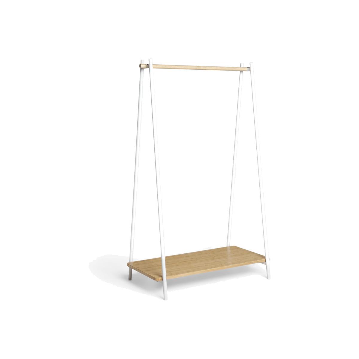 Ideal for minimalist, modern and cost-effective open storage, this clothes rail features a metal frame and bamboo shelf at the bottom.