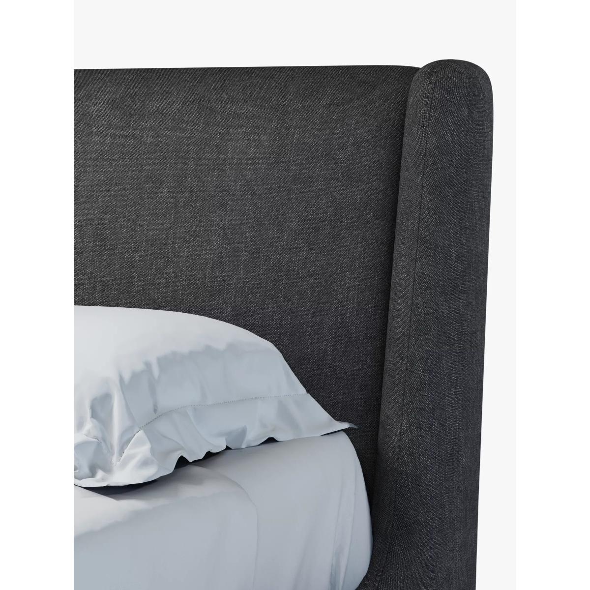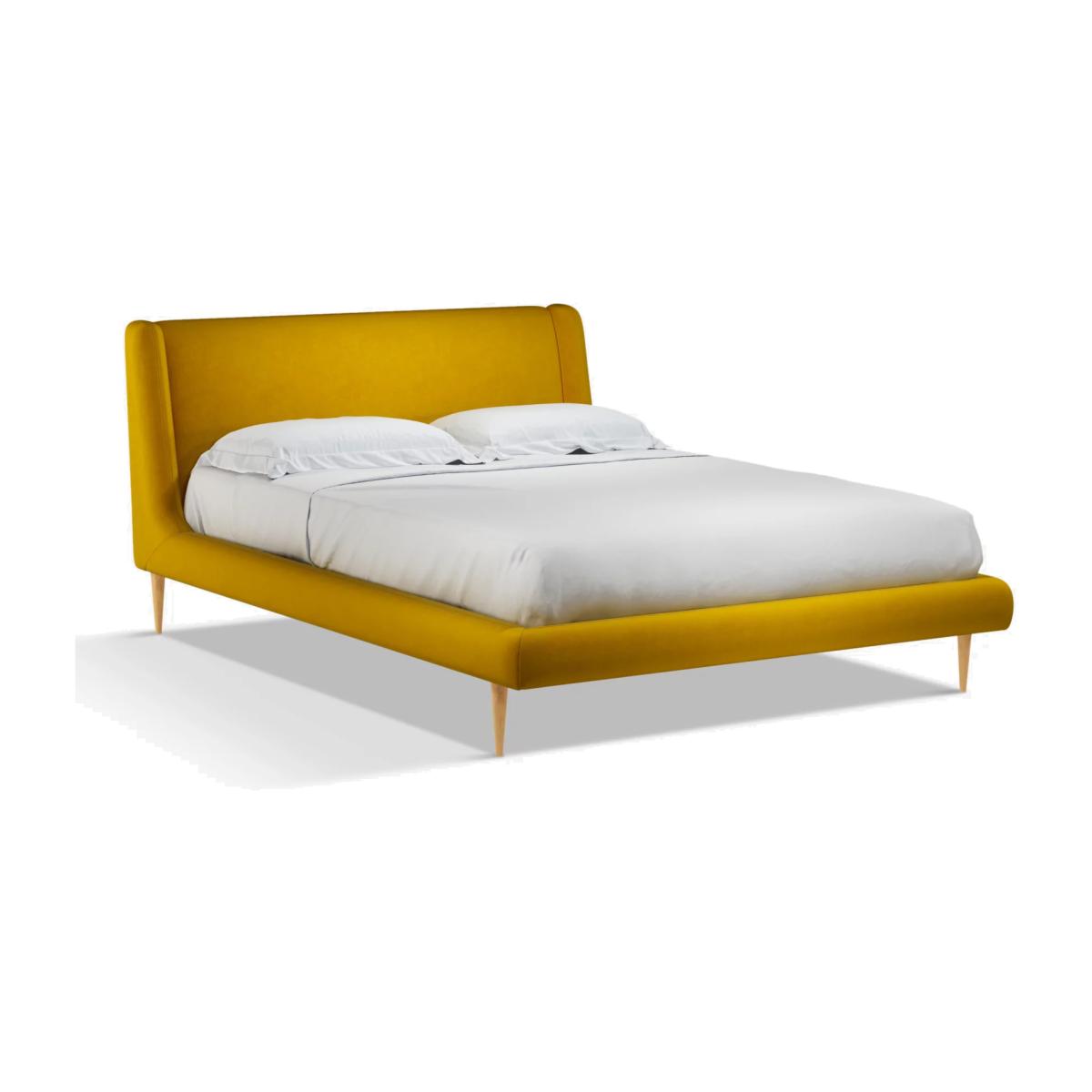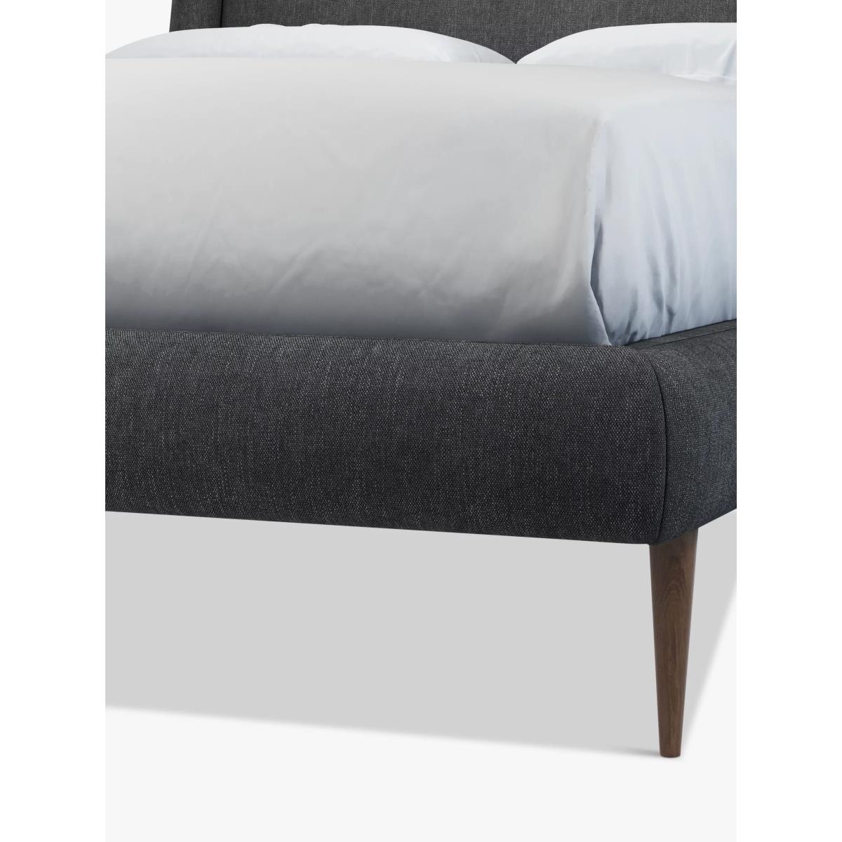 Our Mid-Century Sweep bed frame has a sleek, retro-inspired shape. Its streamlined profile marries soft curves and sharp lines, resting on tapered wooden legs. Sprung slats in the base provide additional support for you and your mattress. Built with Smart Slats This bed frame is designed with wider slats at the shoulders, lumbar and feet. They provide maximum support for you and your mattress so that you experience perfect spinal alignment while you sleep. The standard slat caps are black so we have added grey slat caps to ensure that you know where to place the wider slats. Choose from one of our fabrics: Our Band A fabric, Cotton Effect has a laid-back and fine-textured look that looks like cotton, but it's made from durable polyester fibres Our Band A fabric, Brushed Tweed is made with a brushed herringbone weave that has a cosy wool look and soft 'peach skin' feel. It's really hard-wearing and a brilliant all-rounder Our Band A fabric, Soft Weave has a casual cotton look with a brushed finish that's soft-to-touch and a suble texture that's created by slight variations in the tones of the woven fibres Our Band B fabric, Deep Velvet will bring warmth and luxury to your bedroom. It's a short pile velvet with a soft, plush feel Our Band B fabric, Soft Touch Chenille is made from a blend of fibres that give it a super-soft feel and added durability Our Band B fabric, Boucle is luxe and oh-so cosy. This plush knitted fabric is super-soft and durable with a thick texture that calls for comfort Our Band B fabric, Deep Velvet will bring warmth and luxury to your bedroom. It's a short pile velvet with a soft, plush feel Our Band B fabric, Mole is a soft and cosy woven wool-blend. Piling and bobbling may occur naturally over time Our Band B fabric, Cord is rich in texture and available in neutral shades that will suit every space. Our Band B fabric, Relaxed Linen gives you the fine texture of cotton, the durability of synthetic fibres and the laid-back look of linen Our Band C fabric, Marylamb is woven from both man-made and natural fibres, creating a tactile and soft-touch feel. Our Band C fabric, Aquaclean Velvet will liven up your bedroom. It's plush, available in a range of bold colours and treated with Aquaclean so that it can be wiped clean with just water. A smart choice for families and those with pets. Want to see it first? You may want to see and get a feel for the furniture in one of our shops before ordering. We'll be able to tell you where the range you'd like to view is on display.