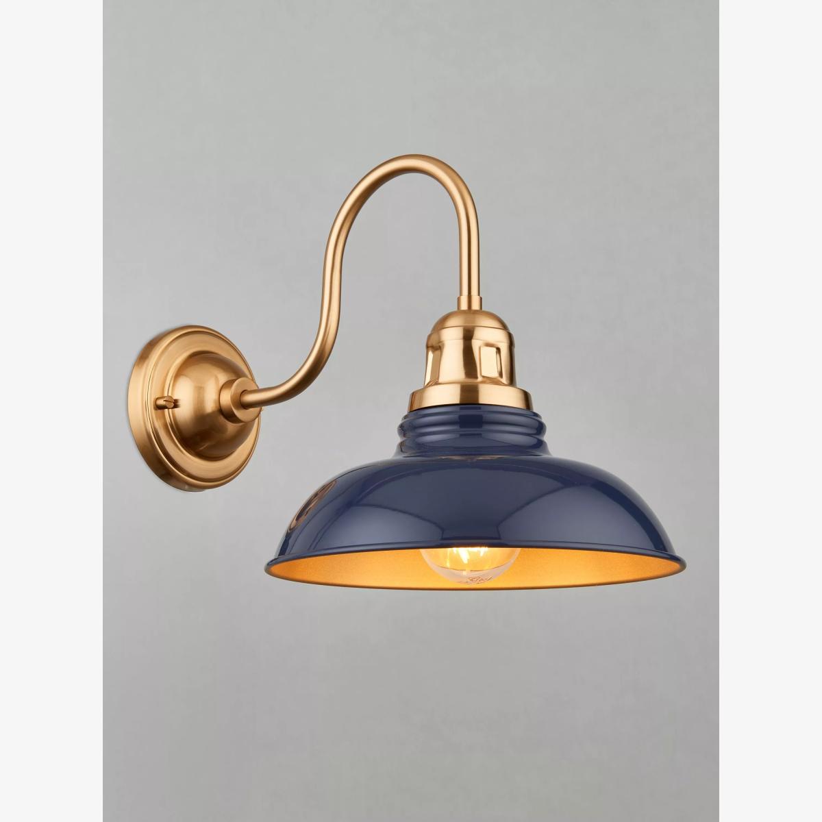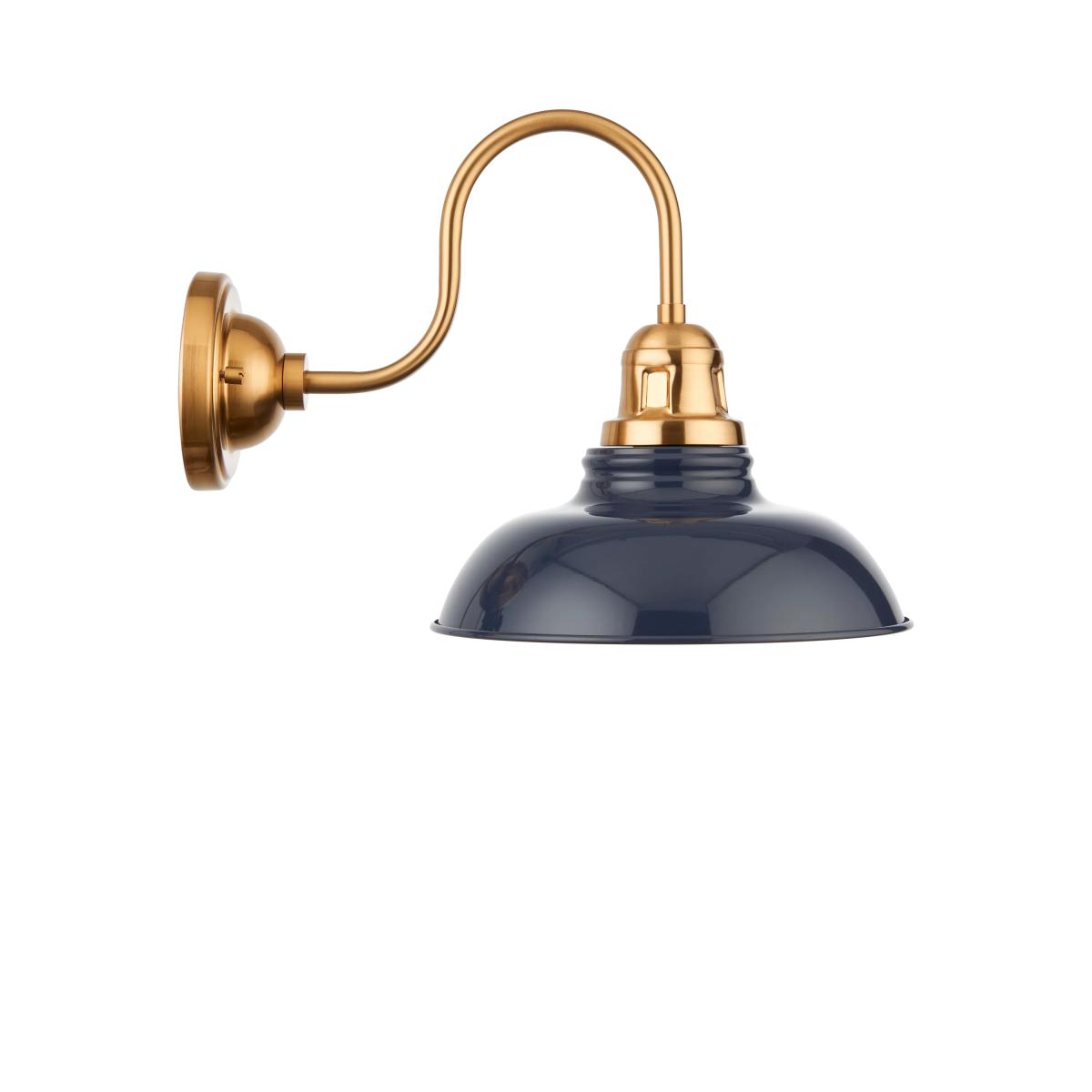 This industrial-style wall light is crafted from steel, enhancing its rugged charm. Its elegant swan neck design gracefully suspends a wide and softly shaped, heritage-inspired shade in a contrasting tone. The effect creates a warm, inviting glow for your room.