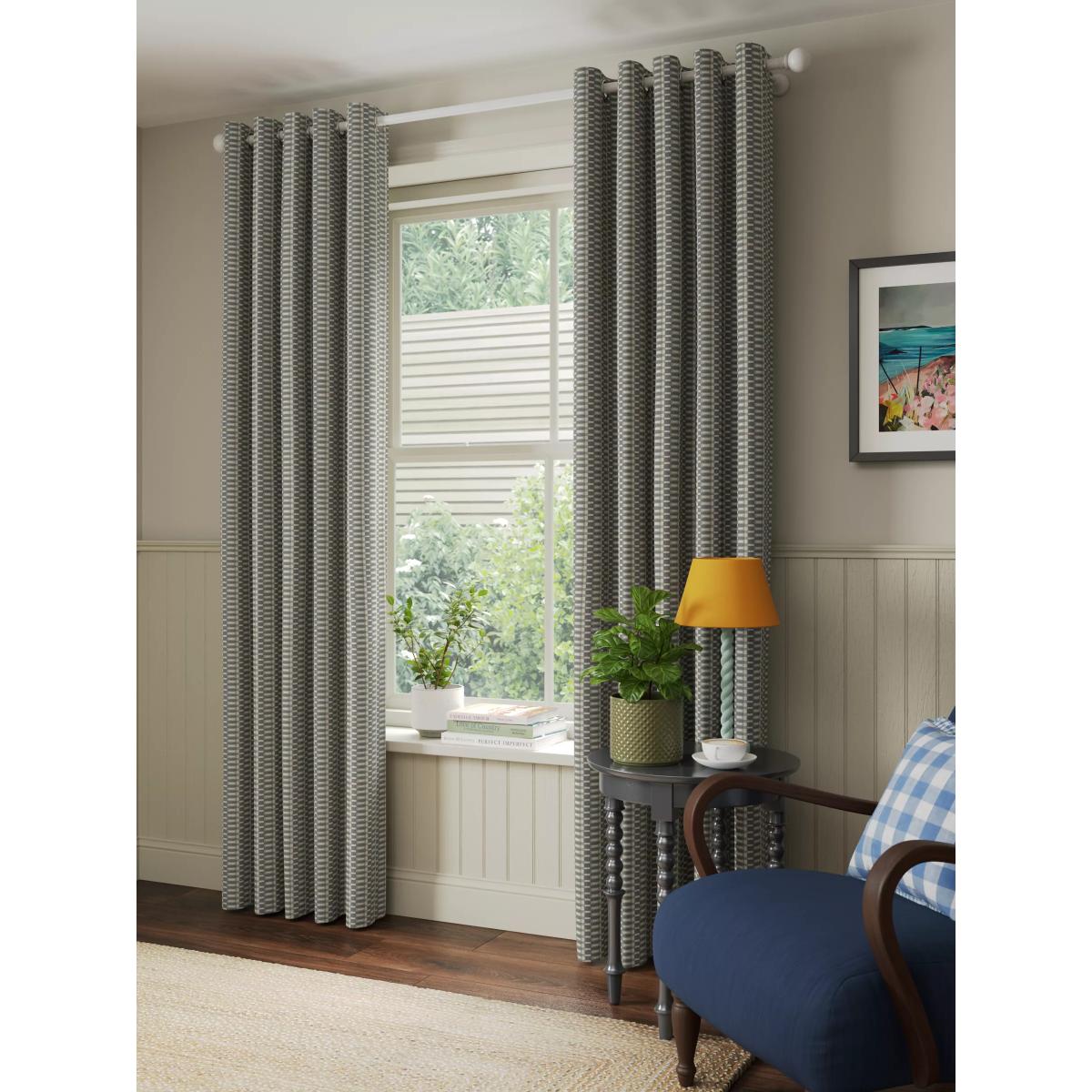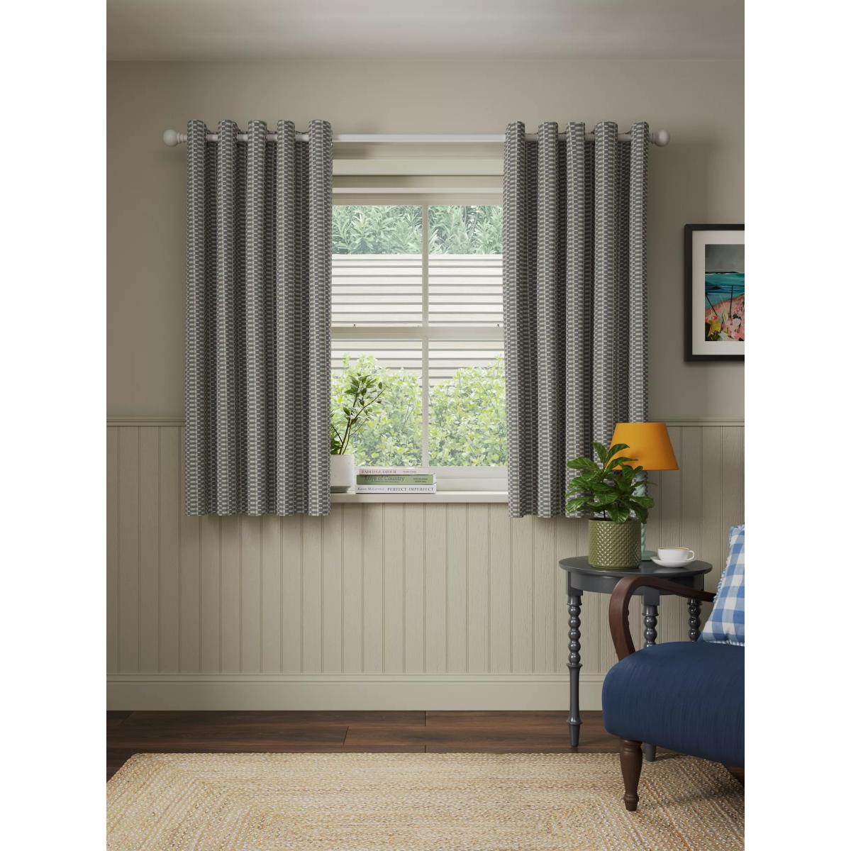 Ready made curtains with an eyelet header, fully lined with standard daylight lining. The width stated indicates the size of one curtain panel when laid completely flat. This pack contains two panels and the track/pole length we've recommended allows for the two panels to be gathered when the curtains are drawn. For a fuller look, increase the curtain width. One pair of 117cm width curtains will fit a curtain track/pole size 117-167cm One pair of 167cm width curtains will fit a curtain track/pole size 133-167cm One pair of 228cm width curtains will fit a curtain track/pole size 182-228cm Worth knowing... We package our curtains in recycled materials to keep them protected whilst they make their way to you. This means that when they arrive there could be some creases in them. We recommend you hang them for a few days to allow them to flatten and for the creases to fall out. If after this period your curtains still show signs of being folded then follow the ironing instructions on the back of the packaging. Be aware that each style of curtain has different ironing instructions, including heat limitations according to the fabric, so do make sure you follow the guidance provided to get the best results. Do you need a curtain pole and accessories? Shop them here. With great prices and great design, our new brand offers style and quality for modern living today. Whatever you need, there’s joy to be found in ANYDAY.