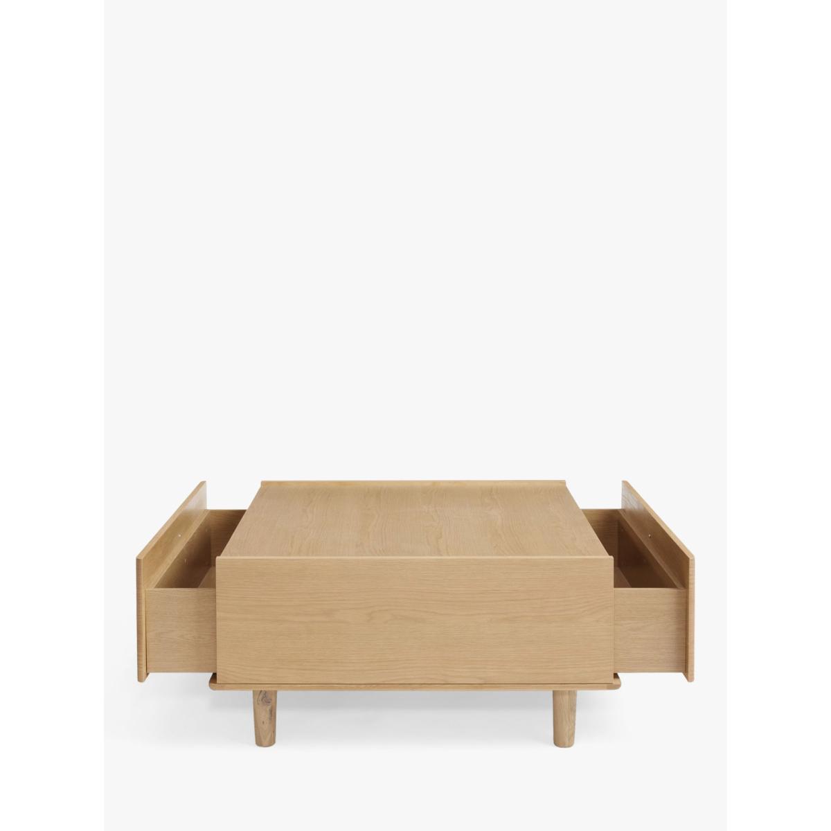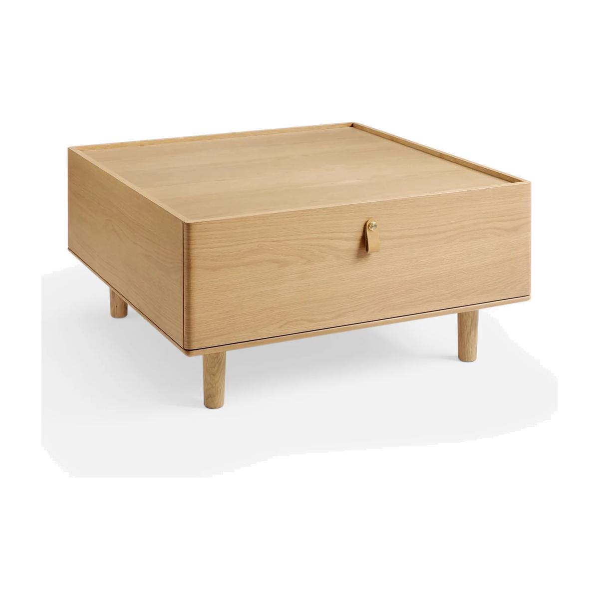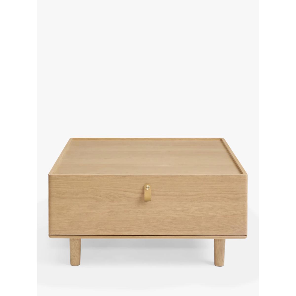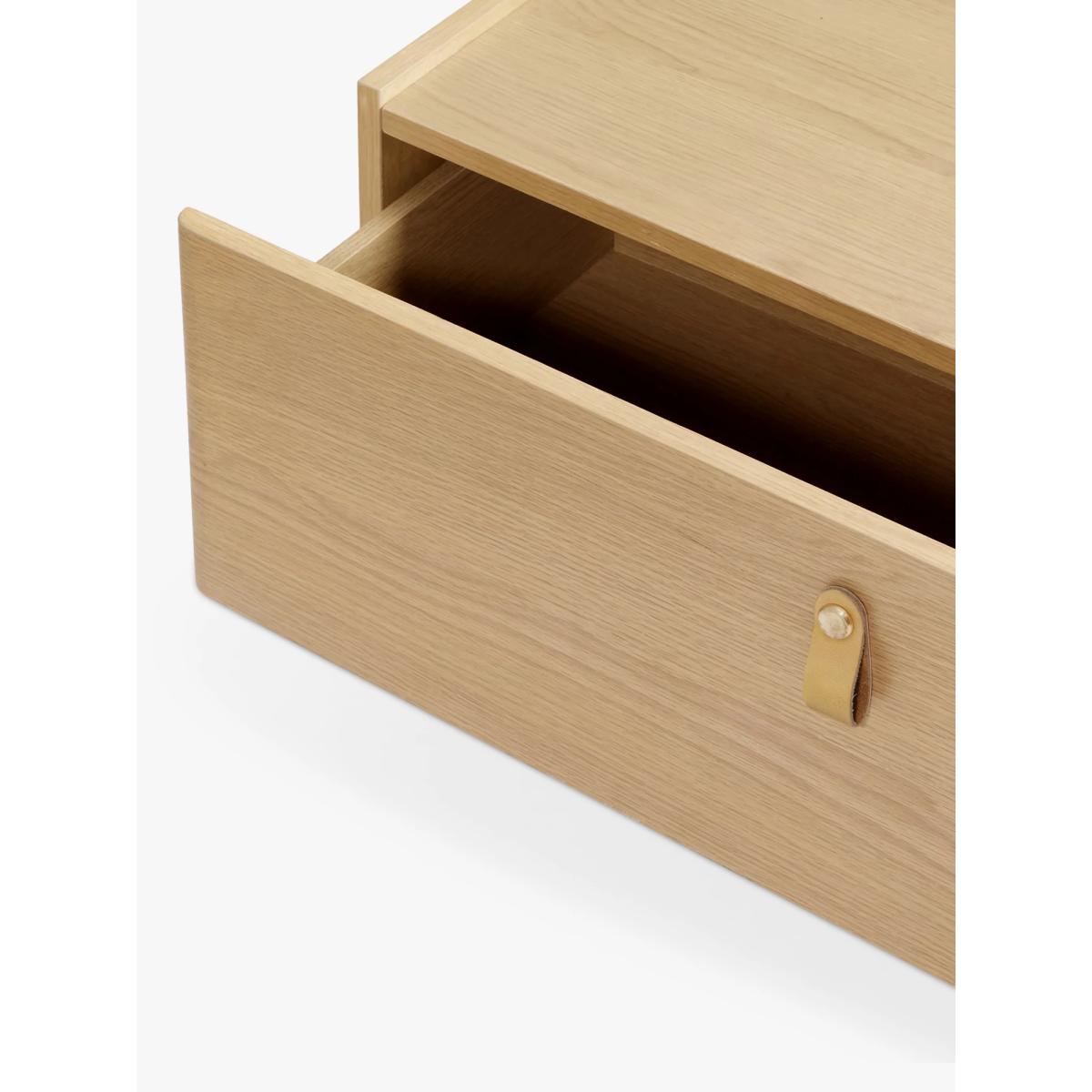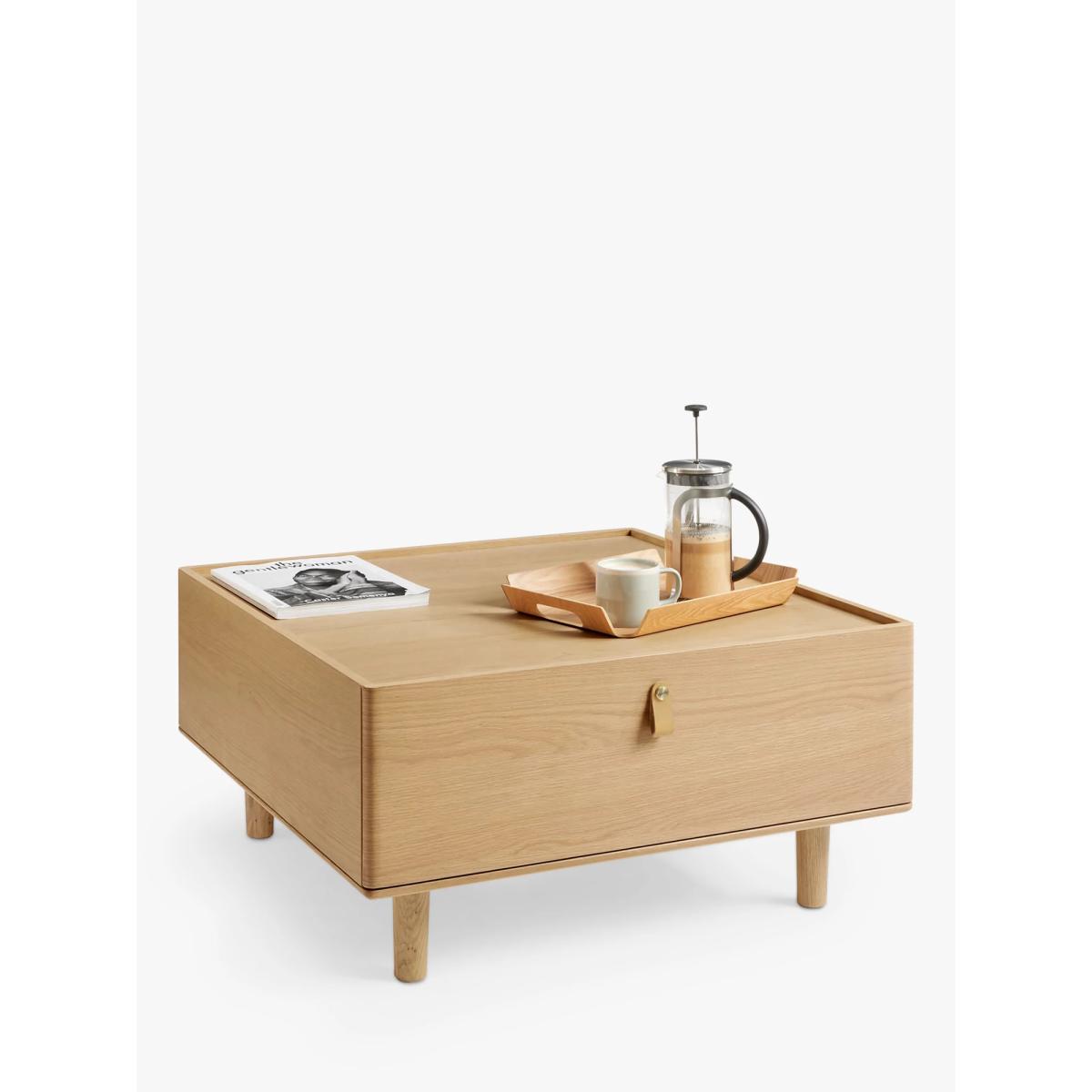 Our Mist coffee table has been designed in a modern Scandi style with clean lines, soft rounded edges and faux leather loop handles fastened by a brass stud. Constructed from solid oak and oak veneers, each piece is beautifully finished in a matte lacquer that highlights the intrinsic natural qualities of the timber. The two drawers, front and back, are ideal for keeping the top surface clear of clutter and your living essentials neatly tidied away. Maximum load 50kg Want to see it first? You may want to see and get a feel for the furniture in one of our shops before ordering. We'll be able to tell you where the range you'd like to view is on display.