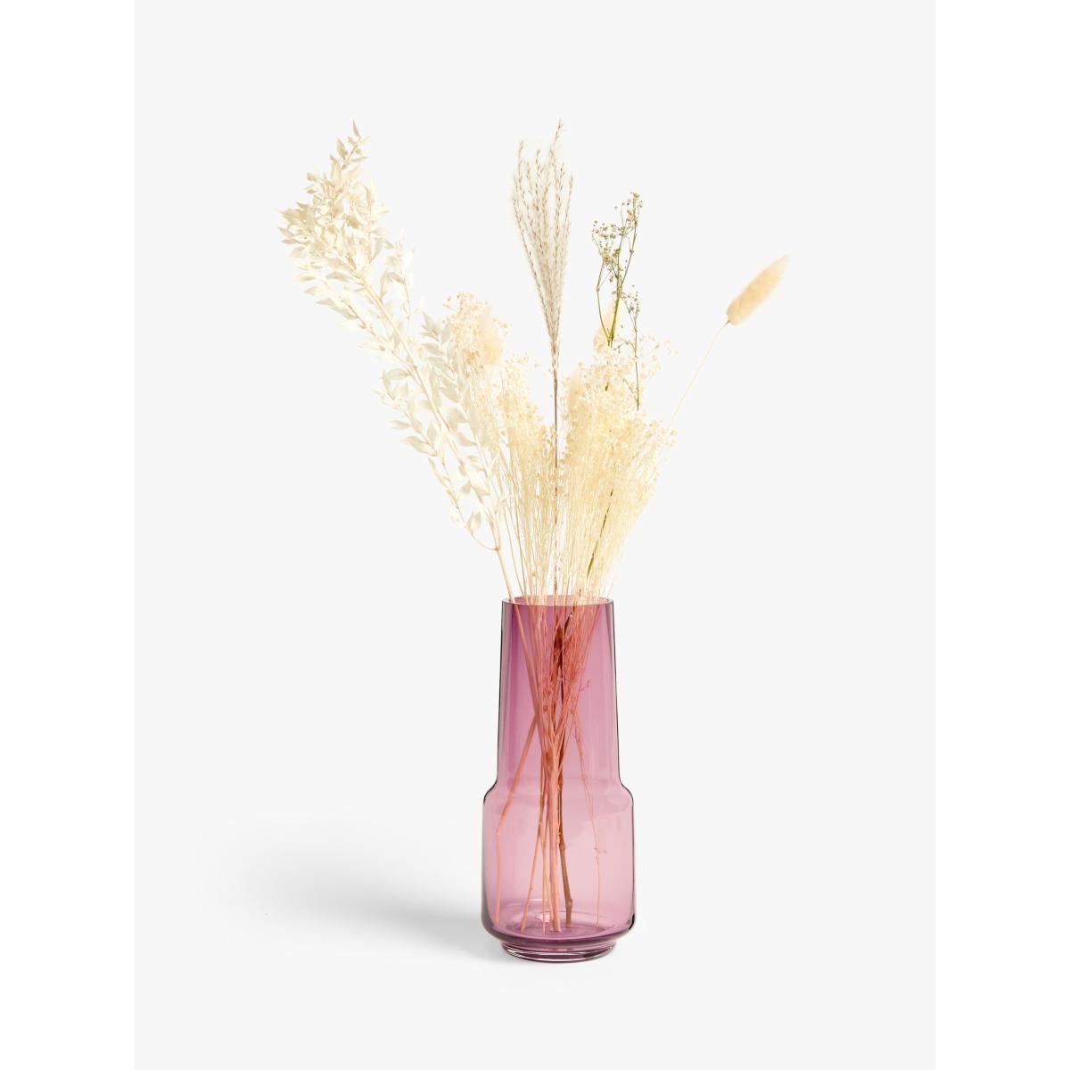 I love the way this tall purple vase adds a pop of colour and a contemporary edge to various interiors. It works particularly well in minimalist or modern spaces, where its bold hue can really stand out, but it also pairs beautifully with neutral palettes, adding visual interest without overwhelming the setting. For styling tips, consider using it as a solo piece on a console or mantel for a sleek look, or fill it with tall, contrasting foliage or dried stems for added texture. Its height makes it ideal for showcasing statement florals or simply standing alone as a sculptural accent, making it a versatile choice for creating a focal point in living rooms or hallways.