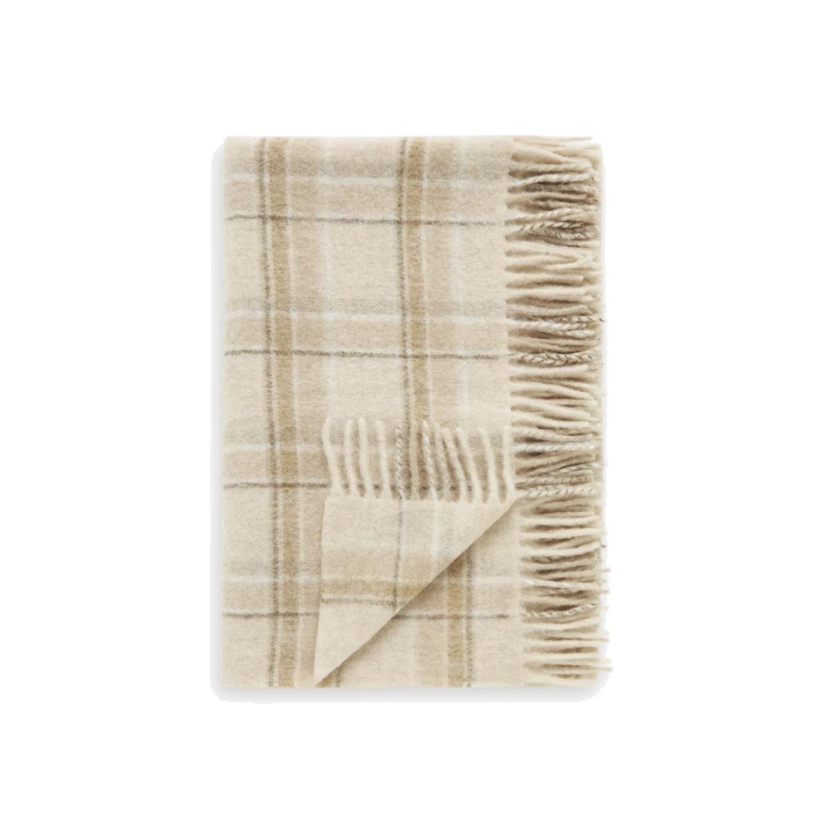 John Lewis Mohair Effect Plaid Check Throw, Natural