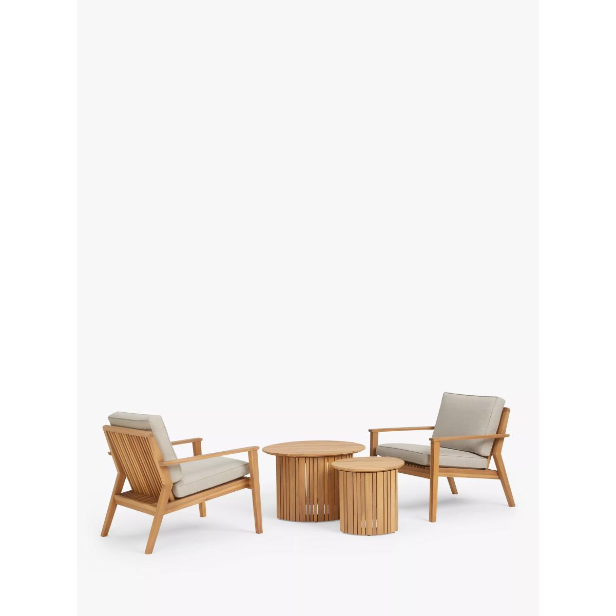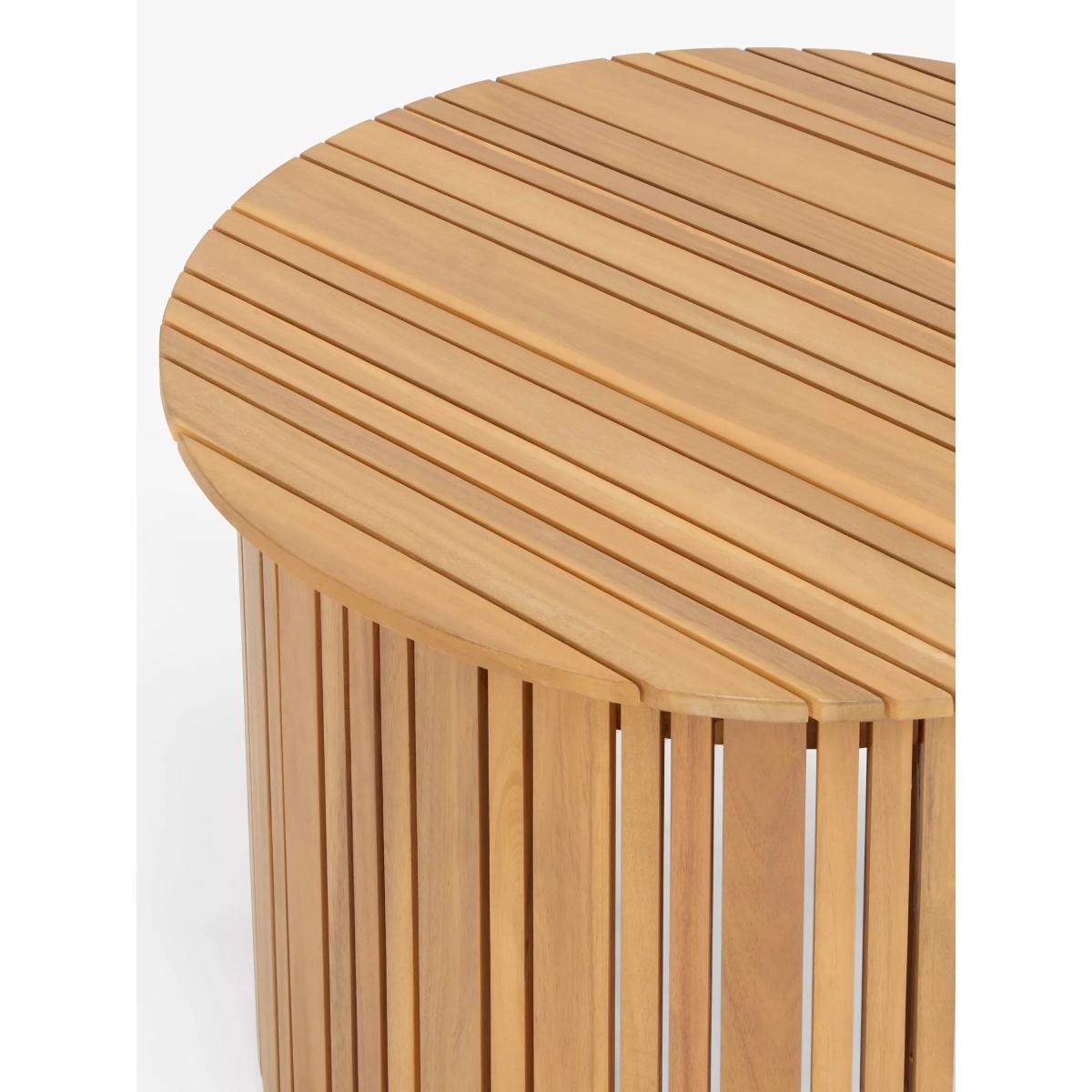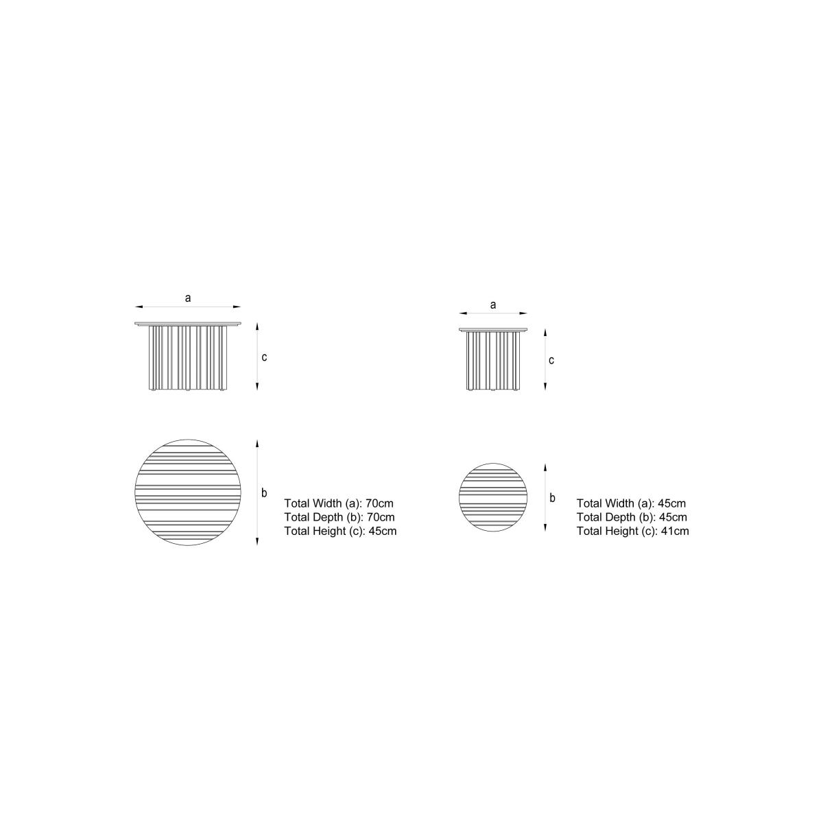 Our Mona garden furniture range is a contemporary slatted design, made from sustainably sourced, naturally weather-resistant FSC-certified acacia wood. Key features: Two round garden coffee tables Nest together for compact storage Contemporary slatted design Naturally weather-resistant FSC-certified acacia wood Feet caps protect flooring and furniture legs and are adjustable in height for uneven surfaces Team with our Mona range of garden furniture Garden furniture care: To keep your outdoor furniture in the best condition, store it in a cool, dry, well-ventilated spot indoors over the winter. If it’s staying outside, use an outdoor furniture cover whenever the weather is wet or unseasonal. Make sure furniture is clean and dry before storing it away. By choosing this product you are supporting responsible management of the world's forests. The Forest Stewardship Council® (FSC®) is a global, not-for-profit organisation that helps take care of forests and the people and wildlife that call them home. To learn more, visit fsc.org. Choose the perfect outdoor furniture We have a selection of wooden furniture for you to choose from which will suit the home or garden. Below are a few options to consider when choosing your perfect outdoor furniture. TeakA premium and popular wood with an attractive appearance which ages beautifully. Strong, durable and resistant to rot and decay, this furniture requires little maintenanceEucalyptusDistinctive scent and appearance which darkens as it ages. Provides similar natural benefits to teak including moisture resistance, hardness and durability. It's plentiful in supply which makes the furniture an inexpensive choice. AcaciaNaturally durable, this wood is incredibly hard and is unlikely to suffer damage during everyday use. It provides similar natural benefits to teak, yet unlike many other hardwoods, acacia is also relatively fast growing which minimises the environmental impact.