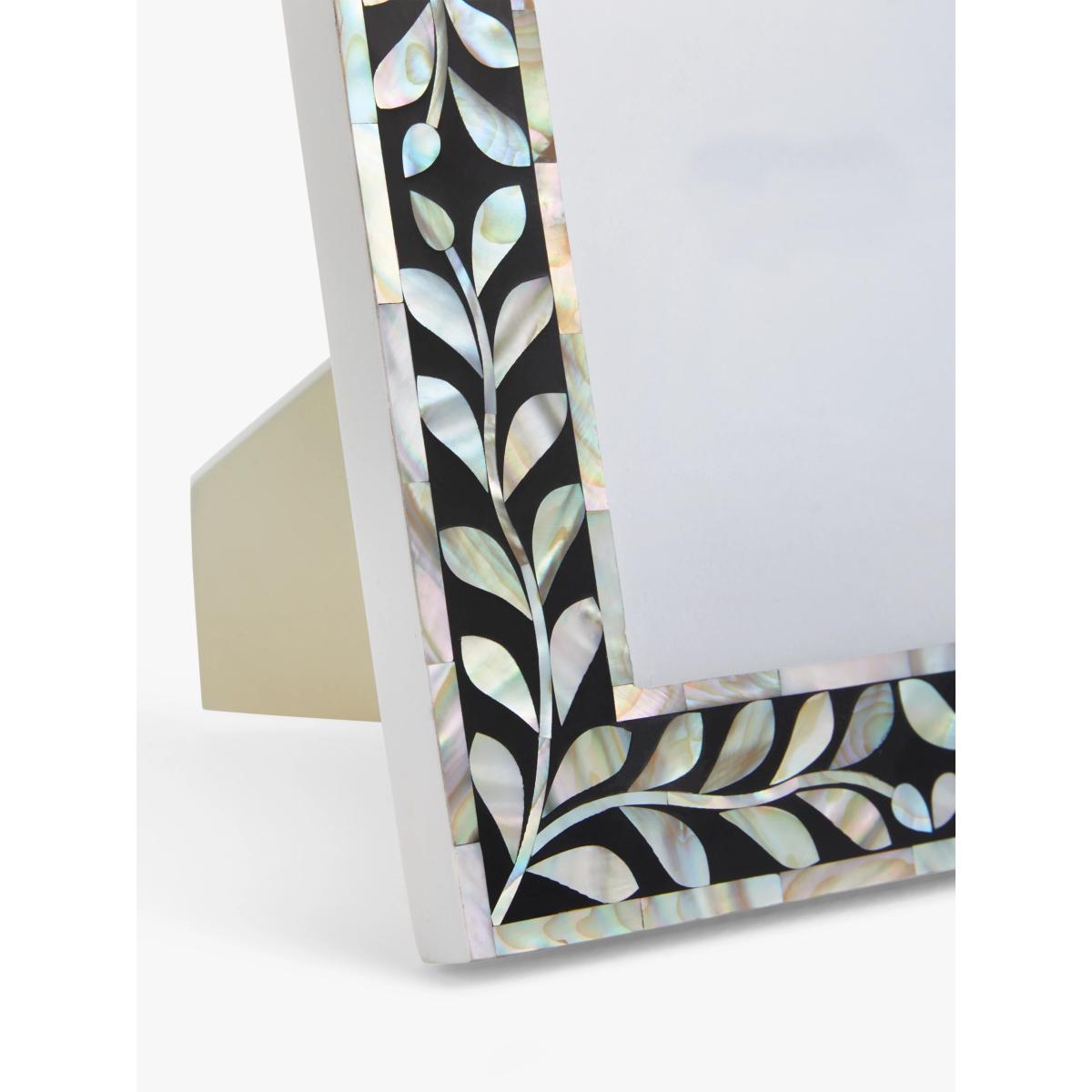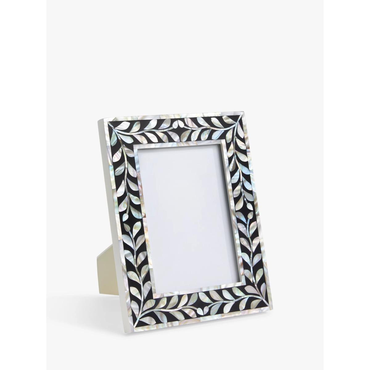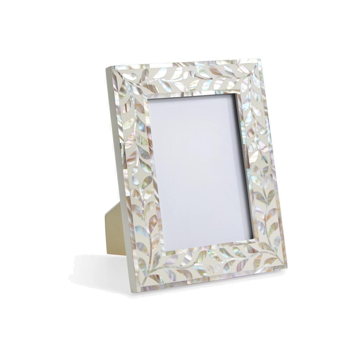 Handmade with mother of pearl, this elegant photo frame adds a chic, timeless touch to a favourite photo or image. It makes a beautiful gift for displaying photos at home, either freestanding horizontally or vertically. The frame holds a single image and is available in the following sizes. The inch measurements are rounded measurements worked back from standard centimetre sizes. 5 x 7" (13 x 18cm)