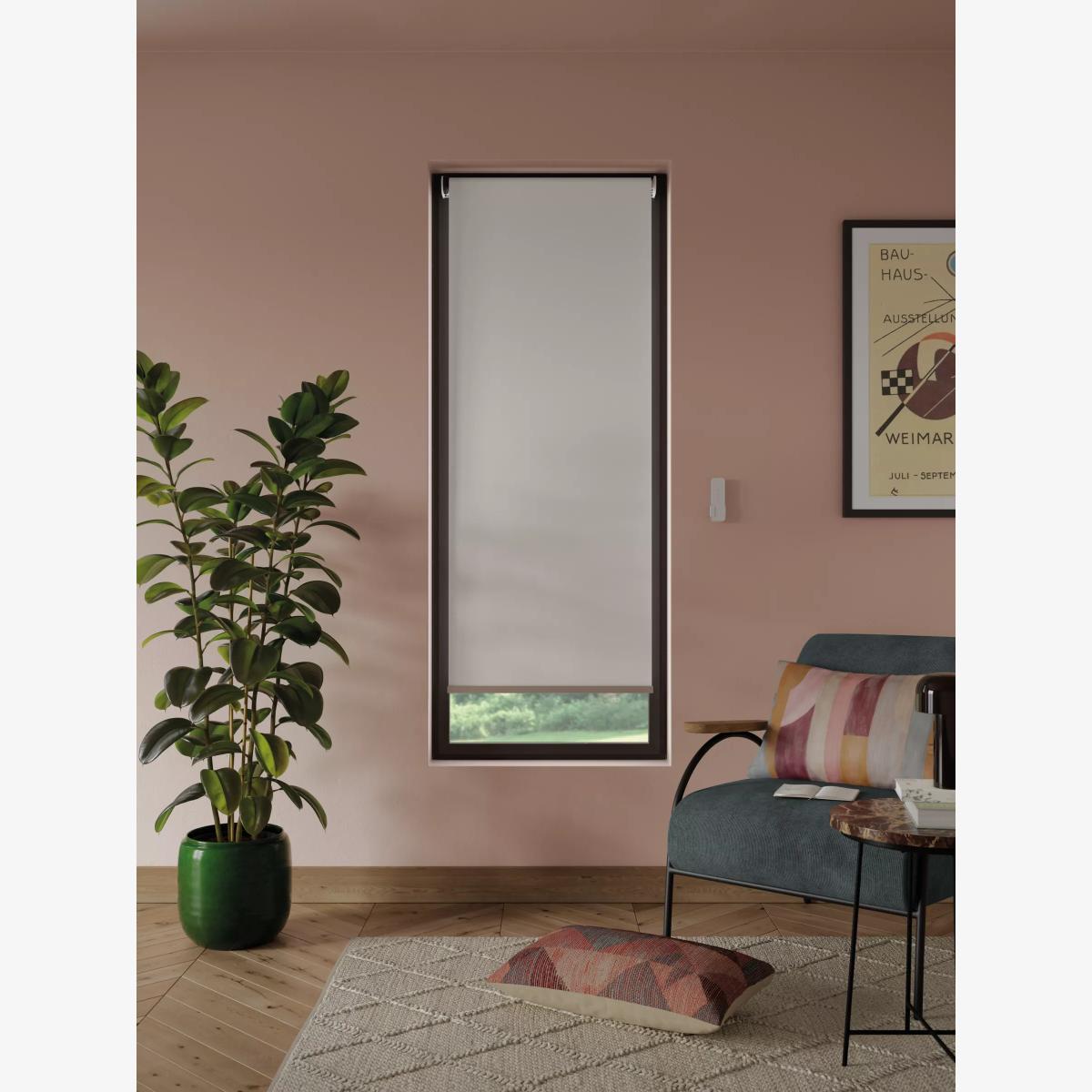 This textured, linen mix blackout blind eliminates light and gives 100% privacy, allowing you to get a sound night’s sleep. Key features: Effortless lifting thanks to our remote controlled motorisation system Easy fit universal brackets Eliminates the need for pull cords, chains and tapes Blackout for complete privacy Warm in winter, cool in summer As the blackout lining on this blind blocks out sunlight it helps keep your room cool as well as dark. This 3 layer blackout coating also adds an extra layer of insulation, giving the blind thermal properties which aren’t found on non-blackout blinds. It protects against both heat loss and heat gain, regulating the temperature of your room so you’re kept warm in winter and cool in summer. Just be aware, we wouldn't recommend installing this blind in your kitchen or bathroom. The mix of cotton and linen fibres don't withstand humidity well so it may start to curl. It's best for bedrooms, lounges, studies, or any other room that doesn't get steamy. Worth knowing... The width stated in our product specifications is the total width of the blind including mechanisms and brackets. The width of the fabric alone will be a few centimetres less than this. Safety warning Young children can be strangled by loops in pull cords, chains, tapes and inner cords that operate the product. To avoid strangulation and entanglement, keep cords out of the reach of young children - cords may become wrapped around a child's neck Move beds, cots and furniture away from window covering cords Do not tie cords together. Make sure cords do not twist and create a loop More information on child safety can be found on our Child Safety Hub