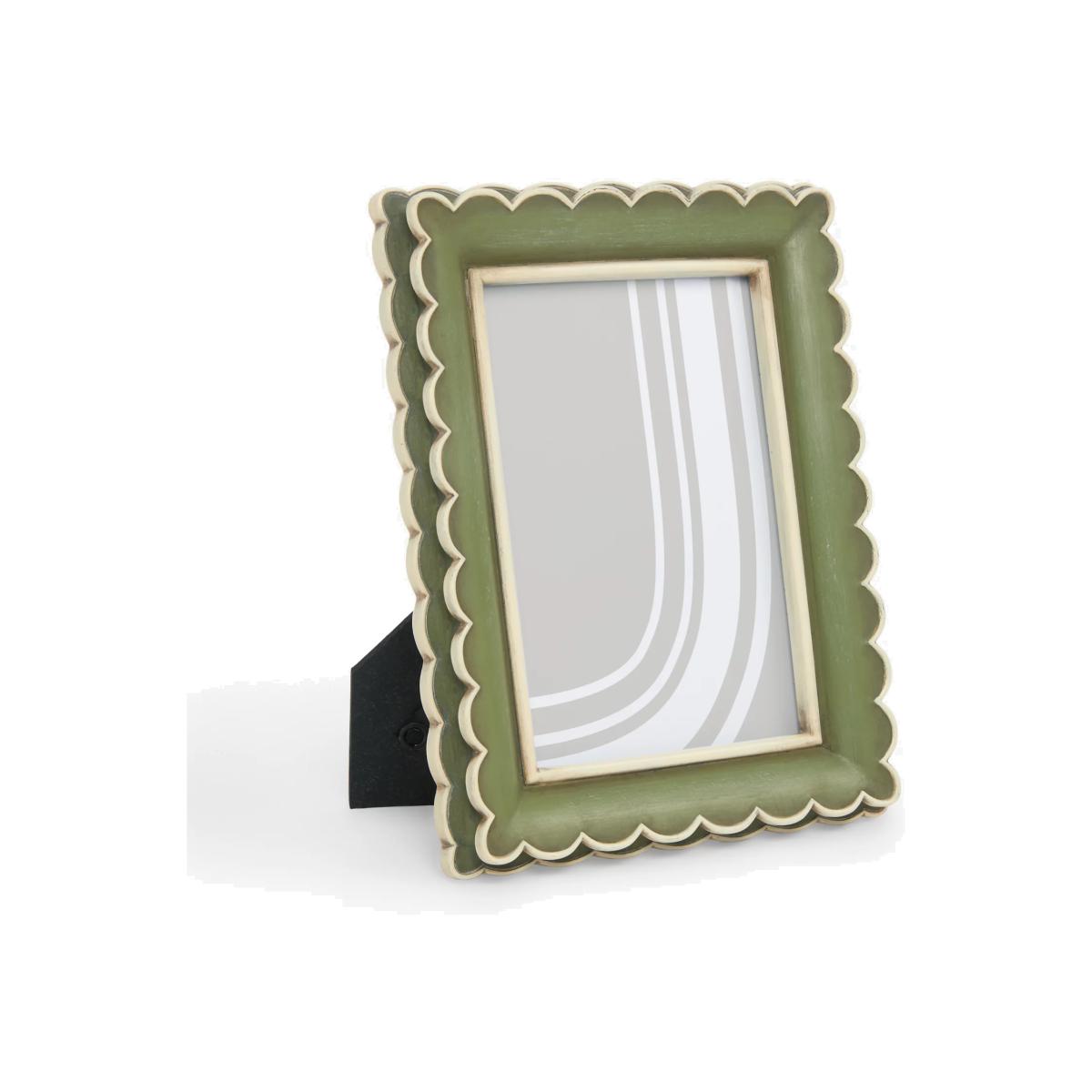 I love the playful scalloped edge of this green photo frame-it adds a touch of charm without feeling overly busy. It works particularly well in cosy, eclectic interiors or spaces with vintage-inspired accents, where it can become a fun focal point. For styling, I suggest placing it on a side table or shelf alongside other personalised items or stacks of books to create a warm, inviting vignette. Its size and colour make it versatile-pair it with neutral backgrounds to make the green pop, or combine with other soft pastel accessories for a cohesive look. Keeping the surroundings simple allows the frame to stand out as a lively yet tasteful piece.
