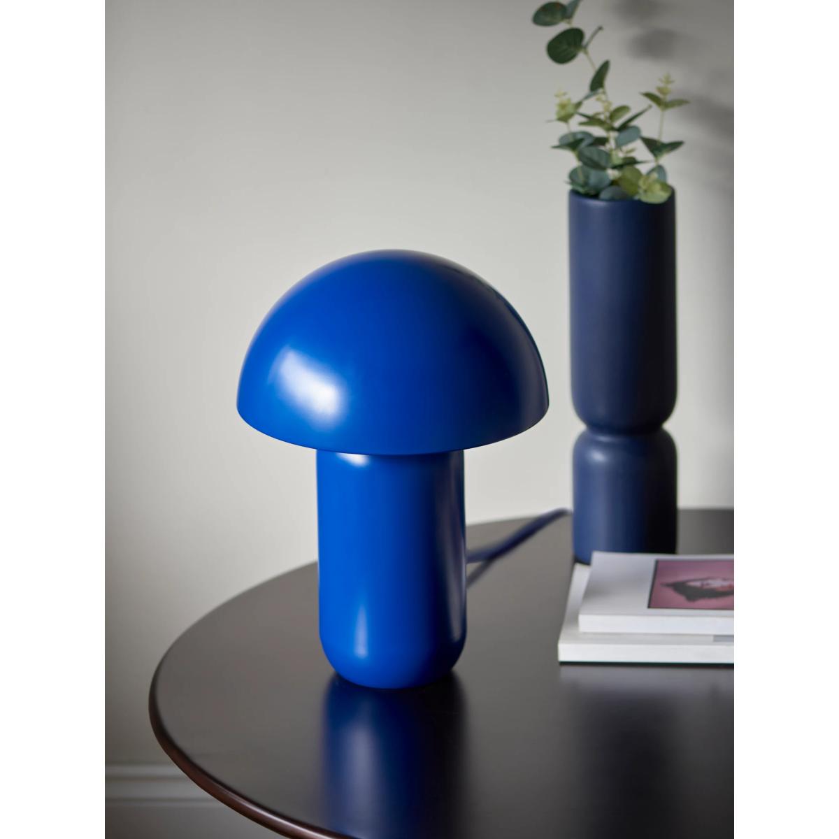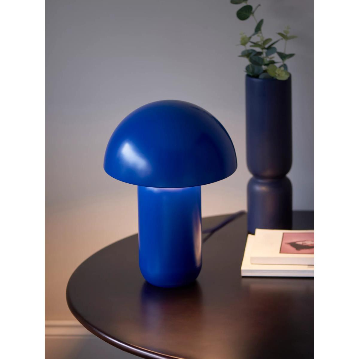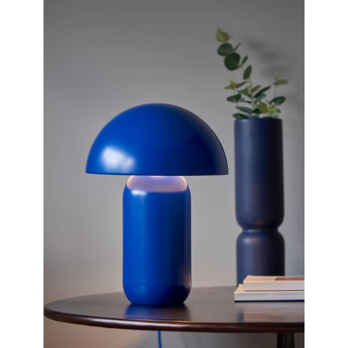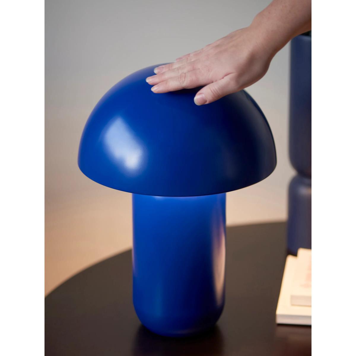 I love this lamp for its blend of modern shape and subtle colour, making it a versatile addition to both contemporary and transitional interiors. The mushroom design offers a soft, diffused glow when dimmed, creating a cosy atmosphere without overwhelming the space. It works particularly well in living rooms or bedrooms where its oversized form can serve as a statement piece or complement minimalist aesthetics. Practical styling tips include pairing it with neutral tones or accents of blue for a cohesive look, and placing it on side tables or sideboards to maximise its sculptural impact while providing functional lighting. Its dimmable feature makes it perfect for adjusting the mood throughout the day.