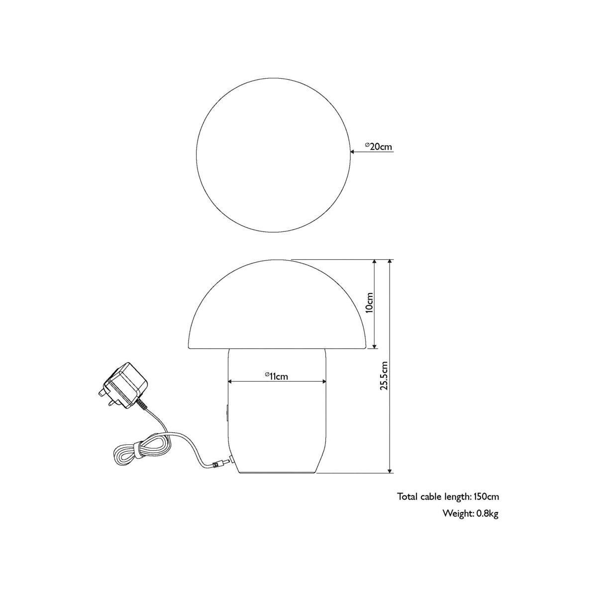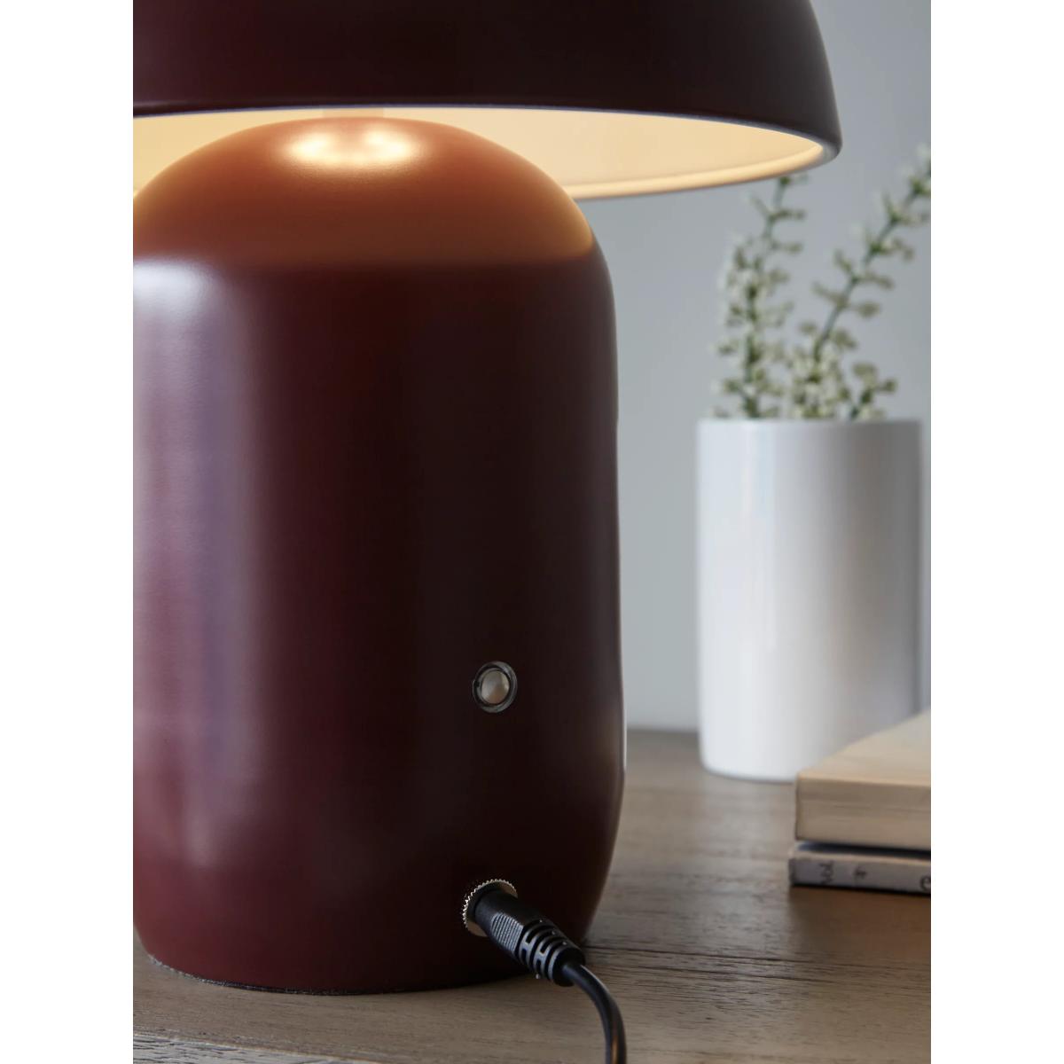 Create a chic sideboard look, a cosy reading corner or intimate lighting for after-dinner cocktails with this portable table lamp. Made from robust steel and an IP20 rating, this mushroom-shaped LED light lamp has three different brightness settings operated by a light touch of a button. The lamp is USB chargeable and will last for up to eight hours on its rechargeable battery - take it wherever you need it.