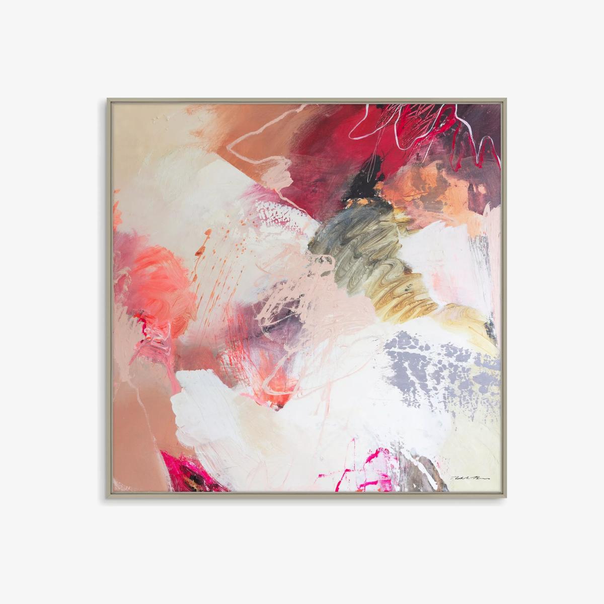 An abstract print, 'All My Love' by artist Natasha Barnes. Made in the UK, this colourful canvas wrap print is mounted in a champagne-coloured frame, a deep frame that creates an elegant shadow gap around the picture. Arrives ready to hang on your wall. Natasha Barnes is a self-taught fine artist from South Africa. Her natural talent and pure passion for painting have led Natasha to develop a profound style reflective of expressionism. The artist’s dynamic marriage of colour and texture, created via sophisticated mark making, evokes a sense of fluidity, movement and a sense of a ‘journey’ in every piece. Natasha paints in water-based mediums and her inspirations often stem from her travels. Earthy tones reflect her South African roots and application is thick and sometimes textured. Her subject dictates the flow of the paint and forms take on an element of the unreal, moving into the world of abstraction. Have you thought about wall hooks and fittings?